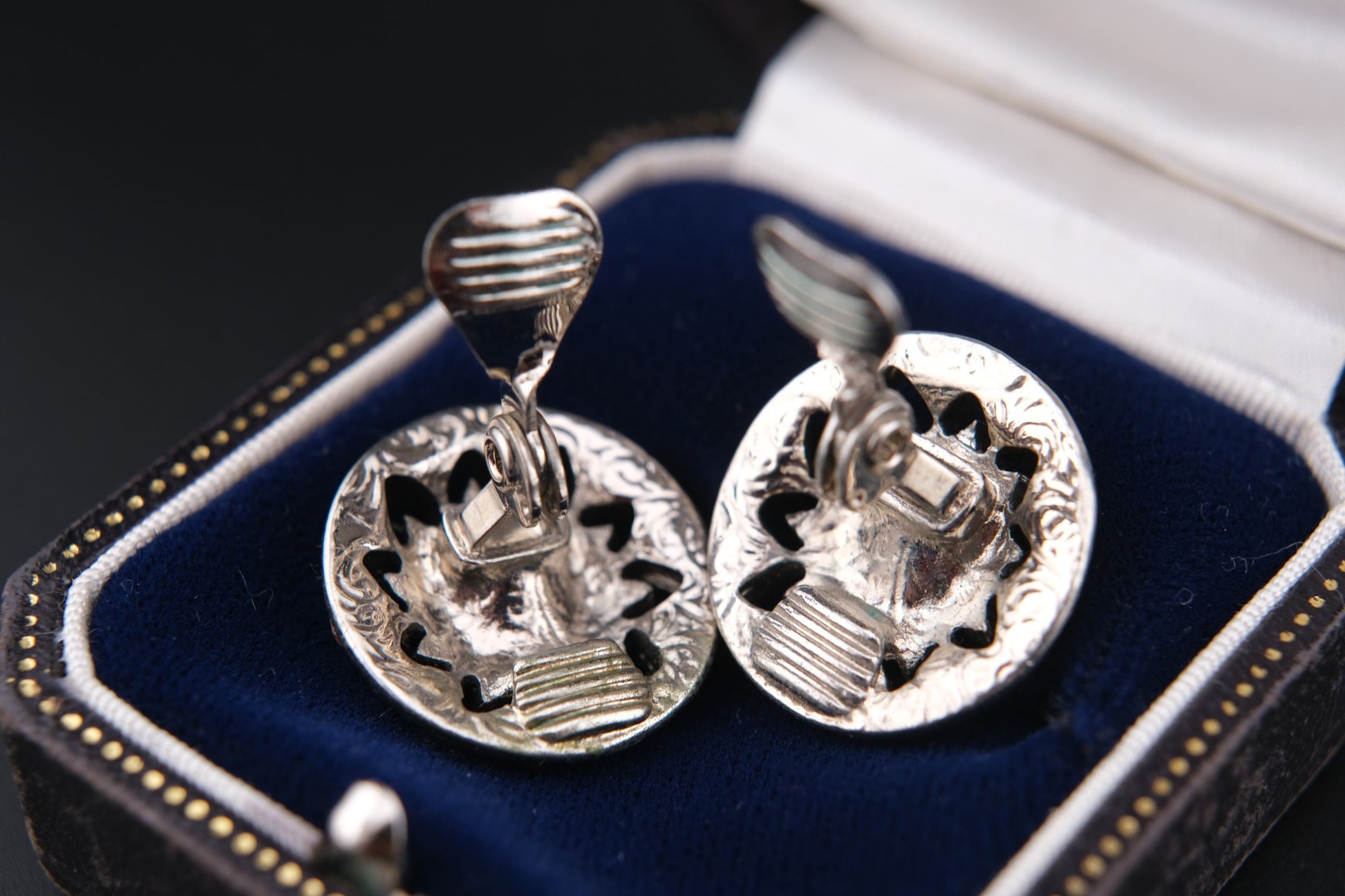 The reverse displays the finely engraved patterning commonly found on 1928 Jewelry pieces, reflecting the brand’s signature old-world aesthetic and attention to decorative detail. Made in the USA, these earrings are a wonderful example of 1928’s collectible vintage costume jewelry style.