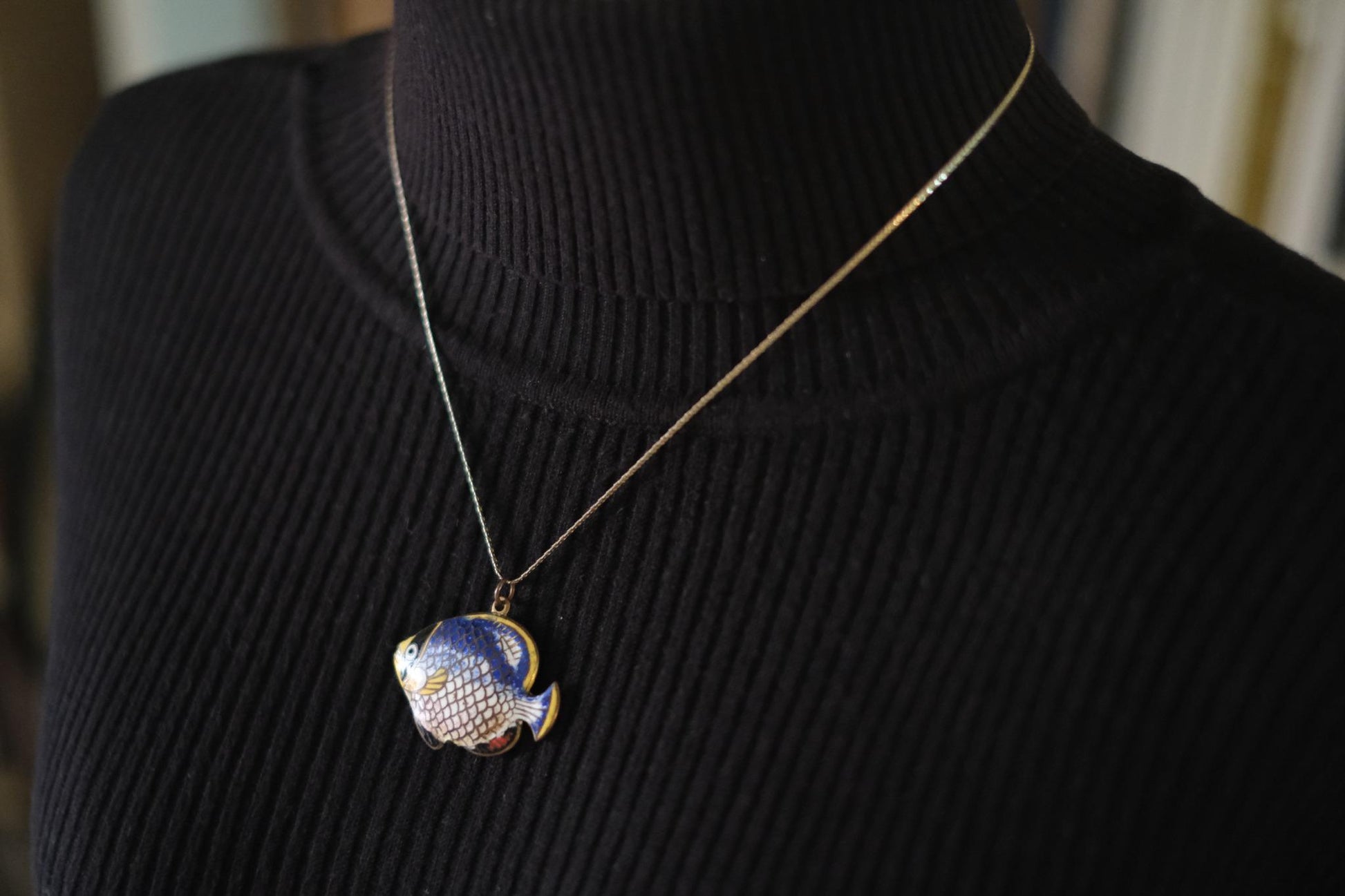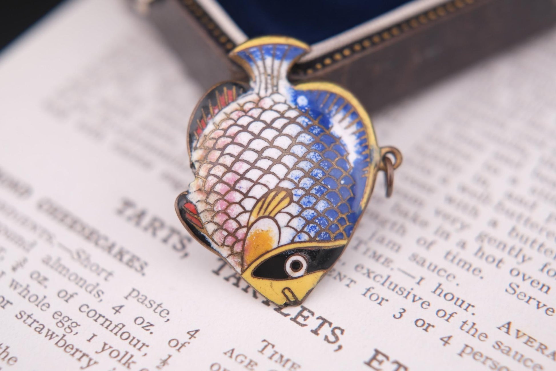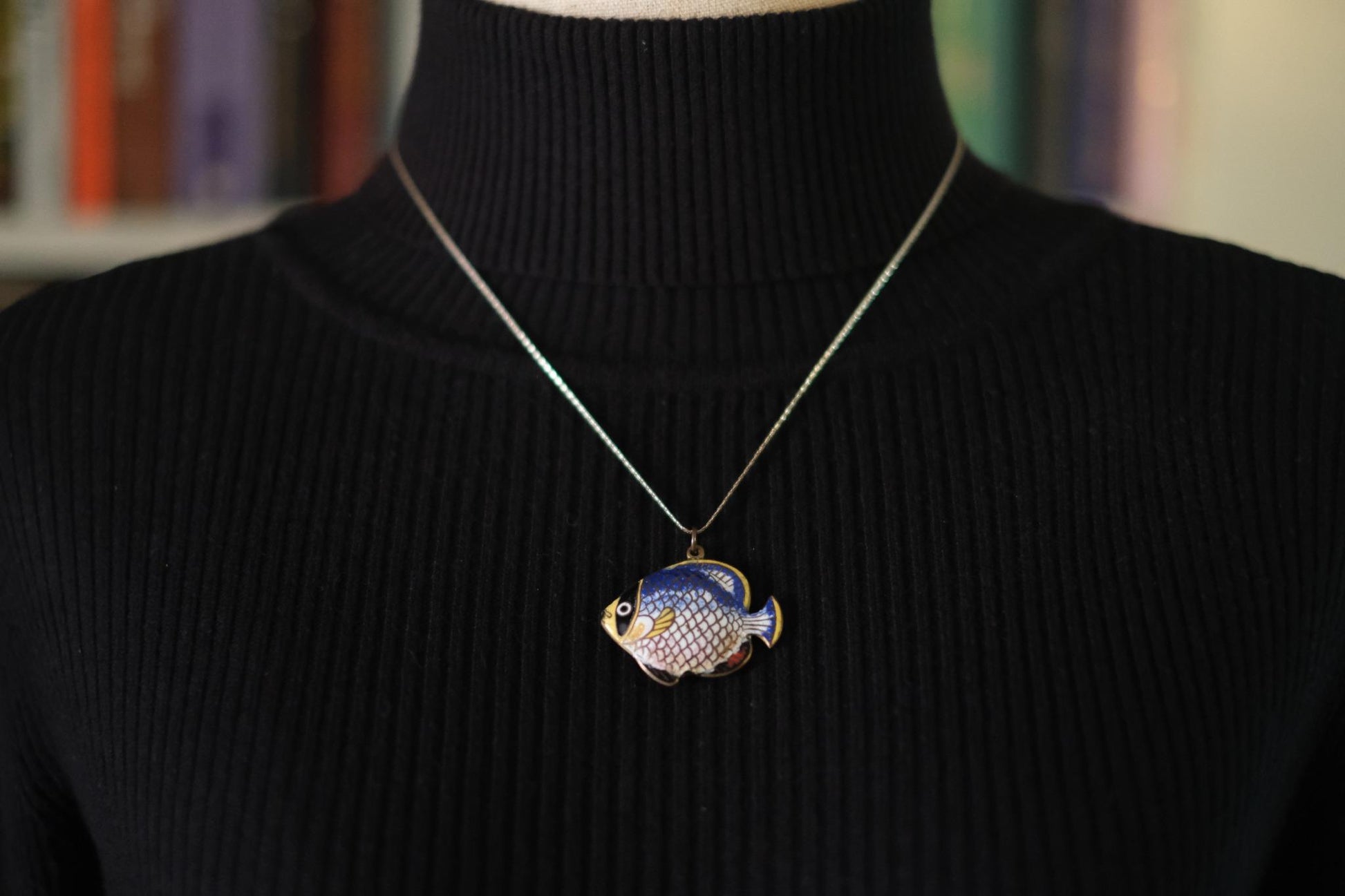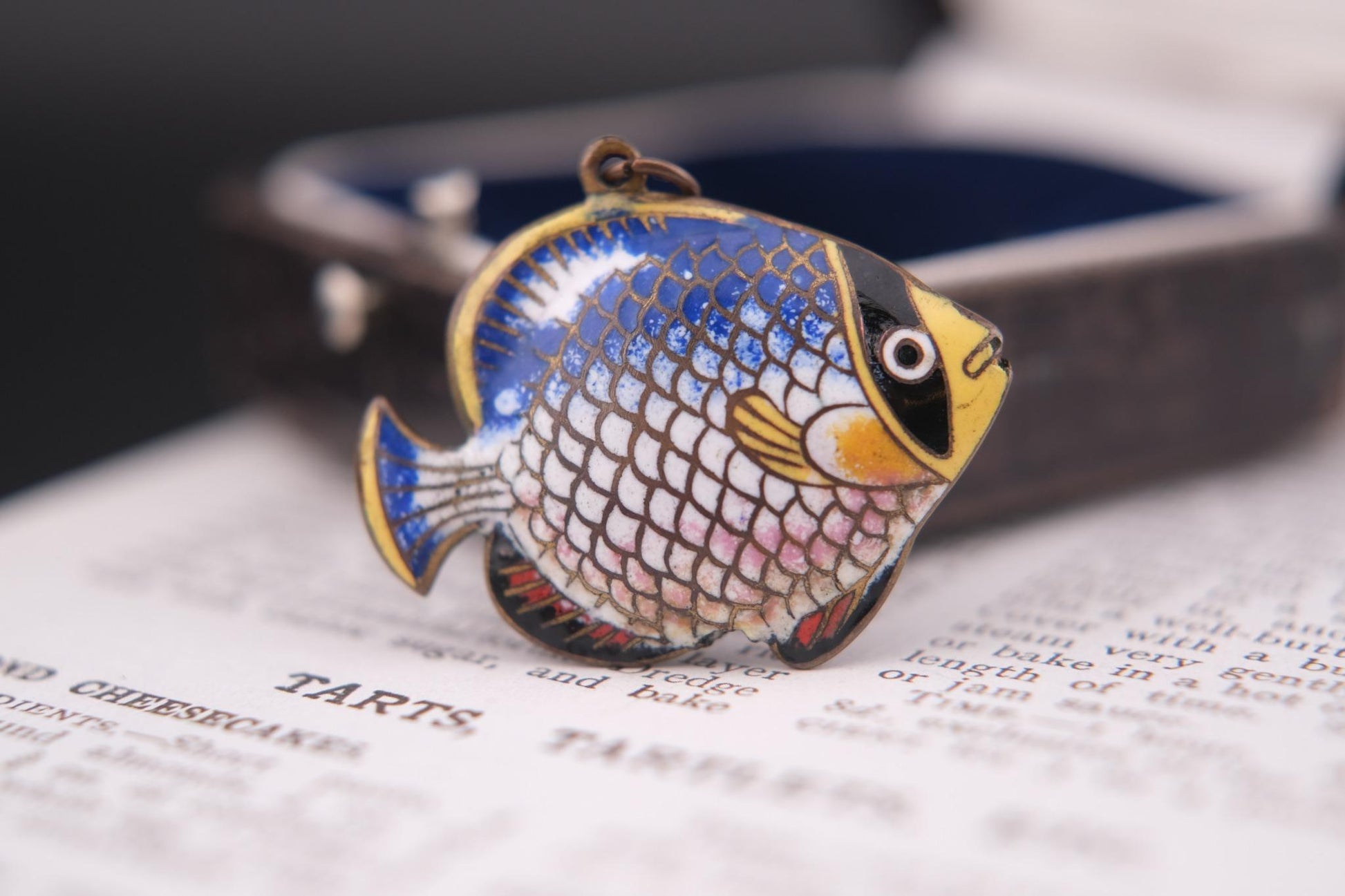 Add a splash of whimsy to your collection with this charming vintage fish pendant, beautifully crafted in cloisonné enamel. Featuring vibrant hand-painted detailing on both sides, the pendant showcases a stylized tropical fish in rich shades of blue, yellow, pink, and black. A delightful piece full of personality, perfect for collectors or anyone looking to add an artistic touch to their accessories.