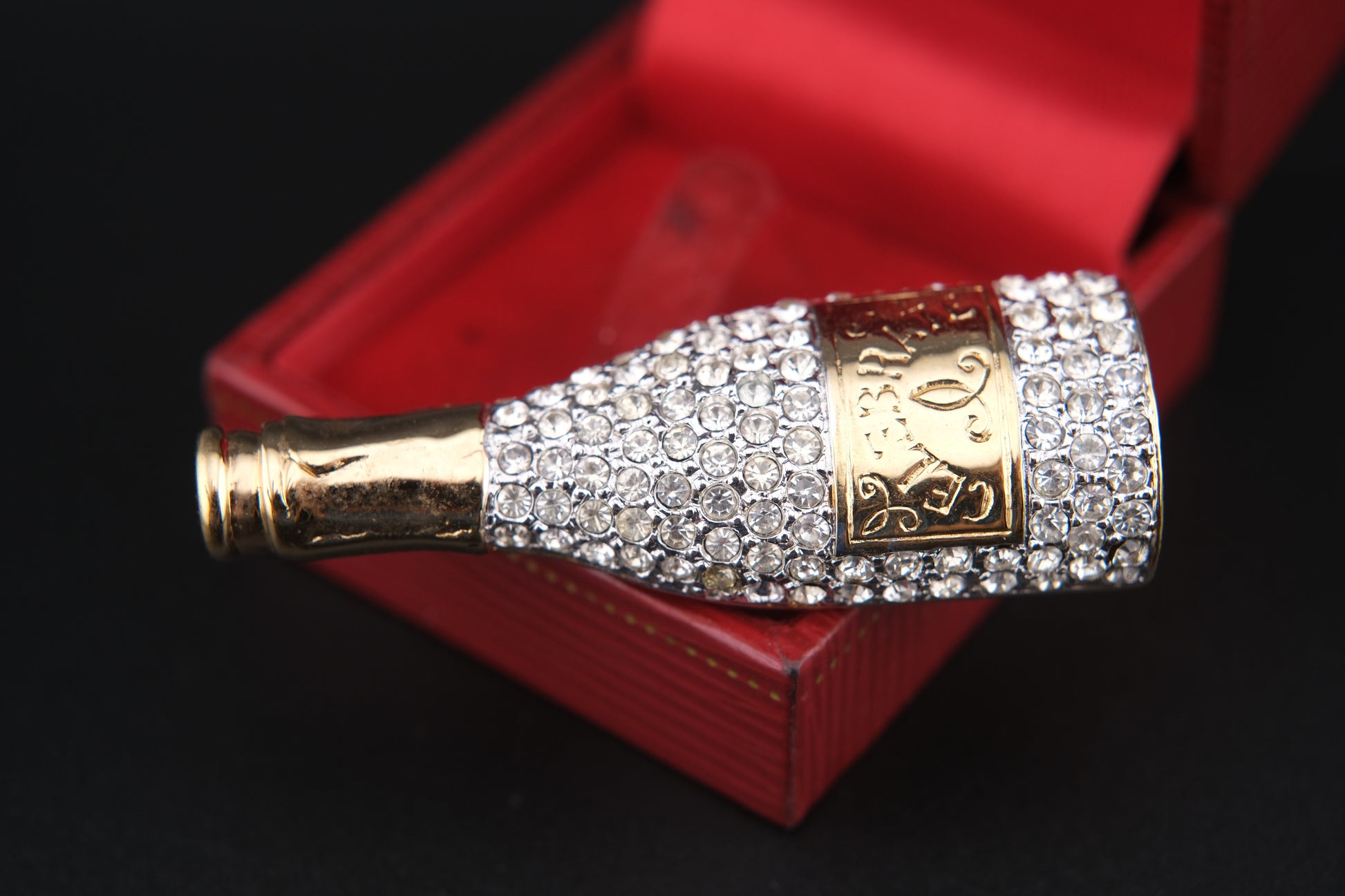 Carolee Crystal Champagne Bottle Limited Edition 2000 Brooch