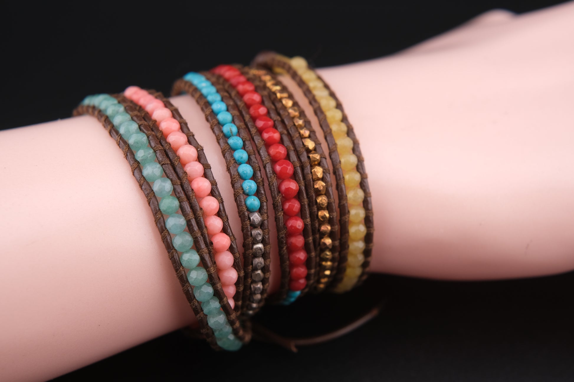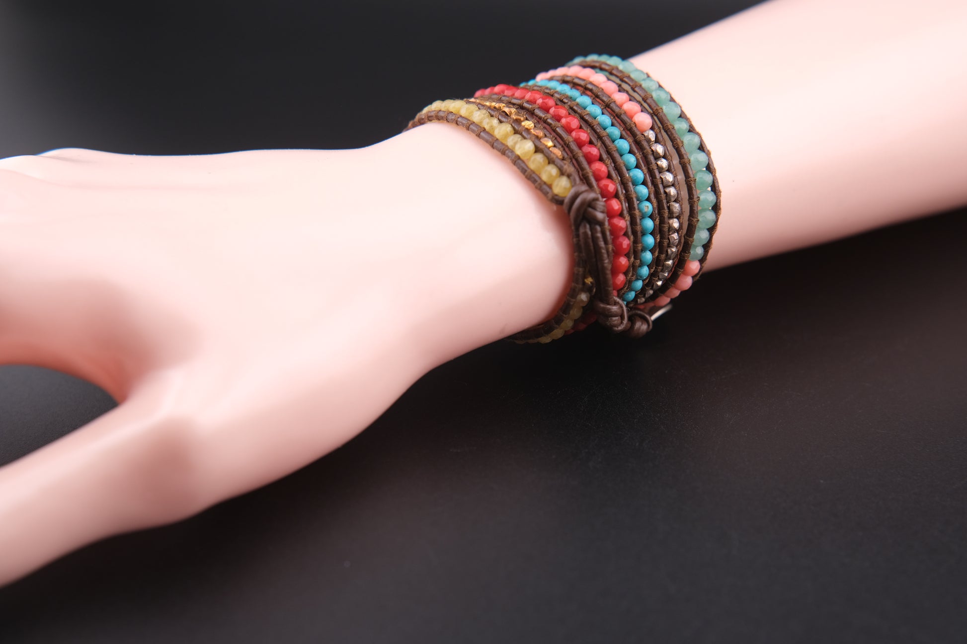 - Design: Multicolor wrap bracelet, handwoven with sterling silver accents