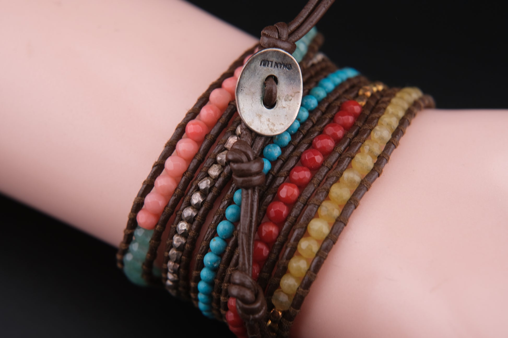 Chan Luu Multicolor Beaded Wrap Bracelet – Sterling Silver Button & Nuggets, Adjustable 32–34"