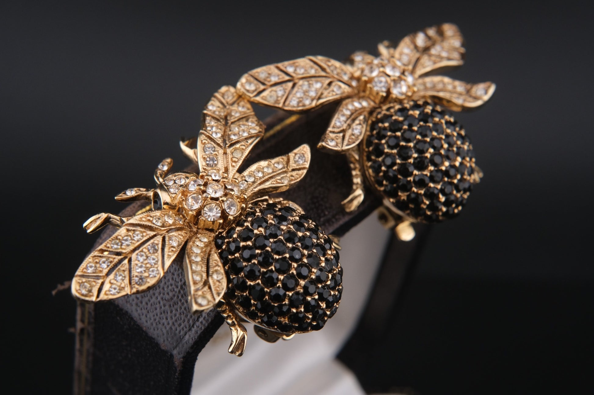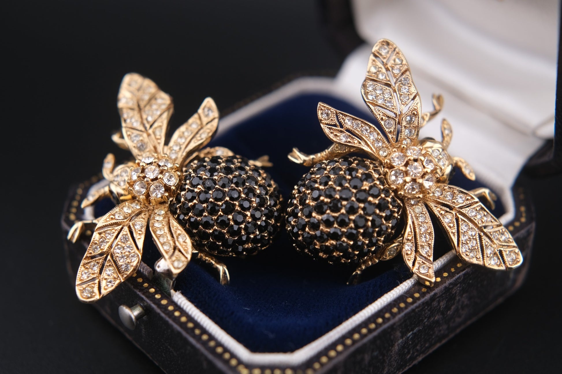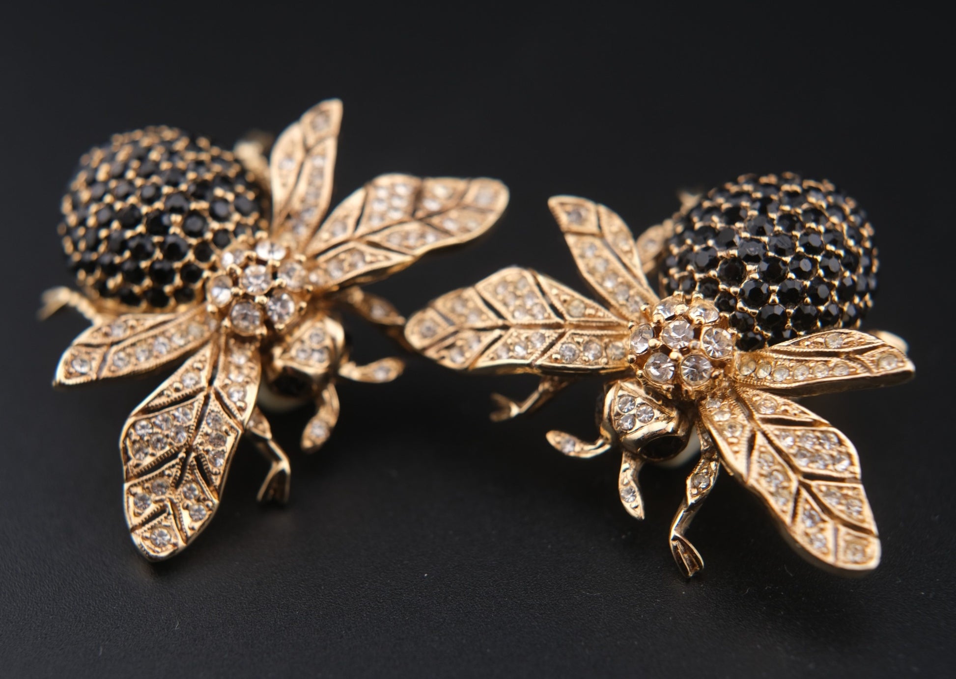 Celebrate the artistry and craftsmanship of Ciner with these magnificent 100th Anniversary Bee Earrings, a testament to the brand’s legacy in luxury costume jewelry. These clip-on earrings showcase Ciner’s exceptional attention to detail and impeccable design, making them a perfect addition for collectors or those seeking a statement accessory.
