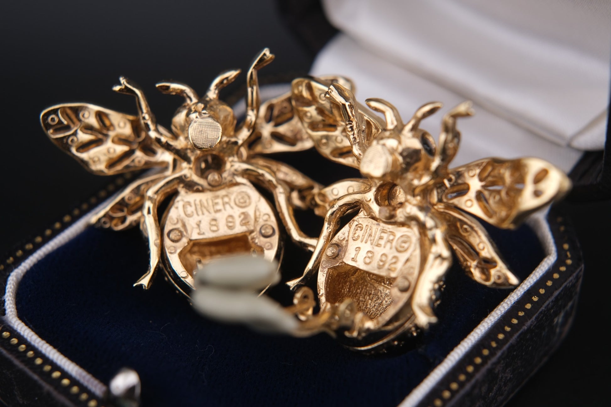 Ciner New York Gold Plated 100th Anniversary Bee Clip-on Earrings