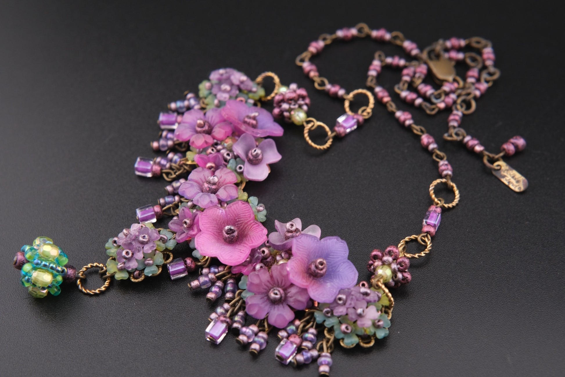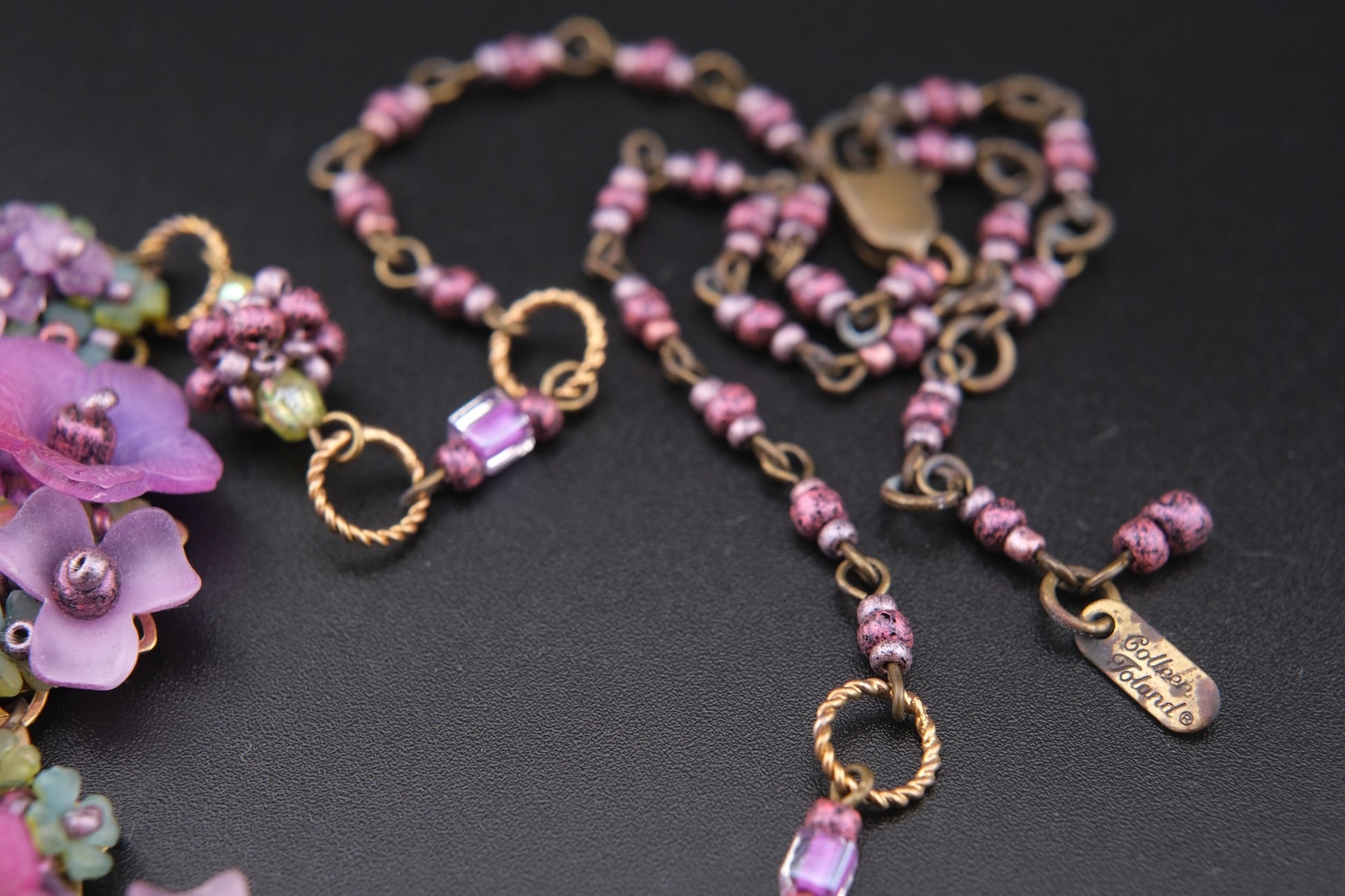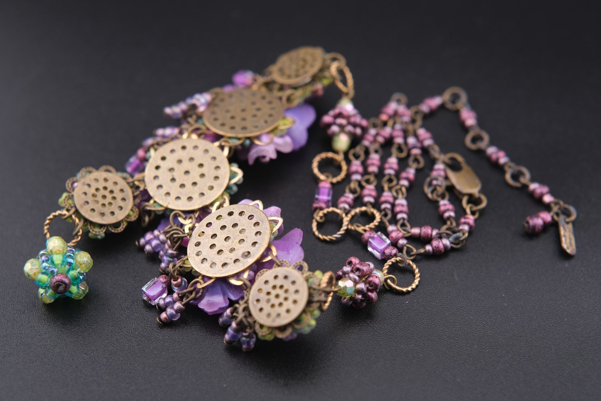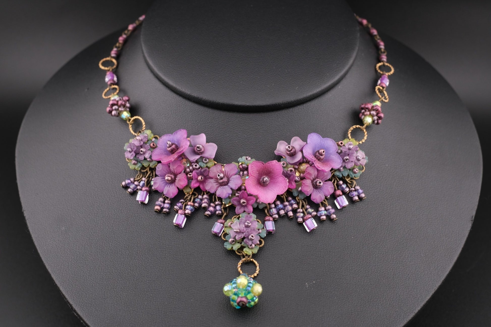 Colleen Toland Vintage Floral Necklace – Purple Pink Garden Statement