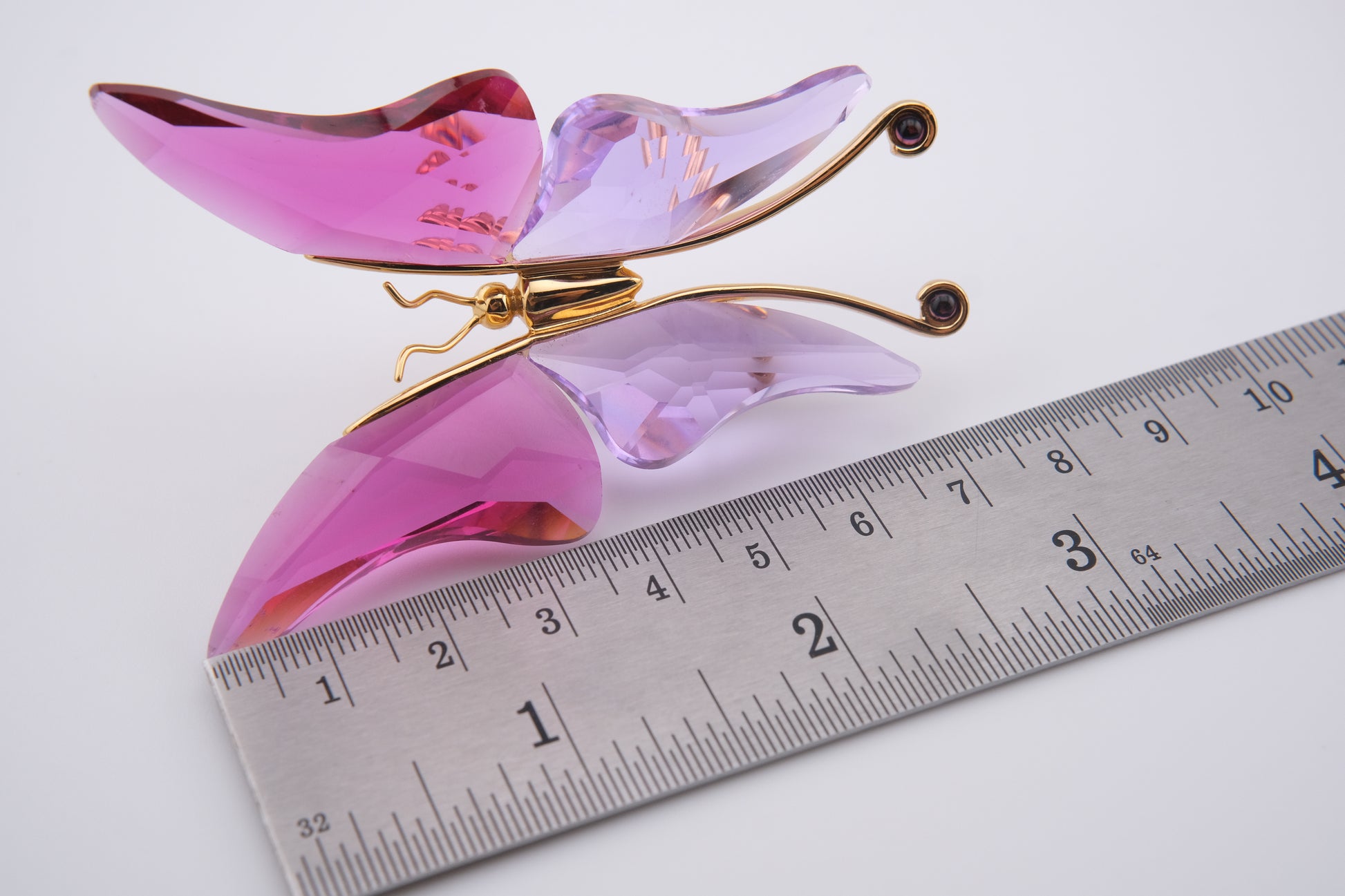 - Design: Insect/Bug form with faceted fuchsia and lavender crystal wings