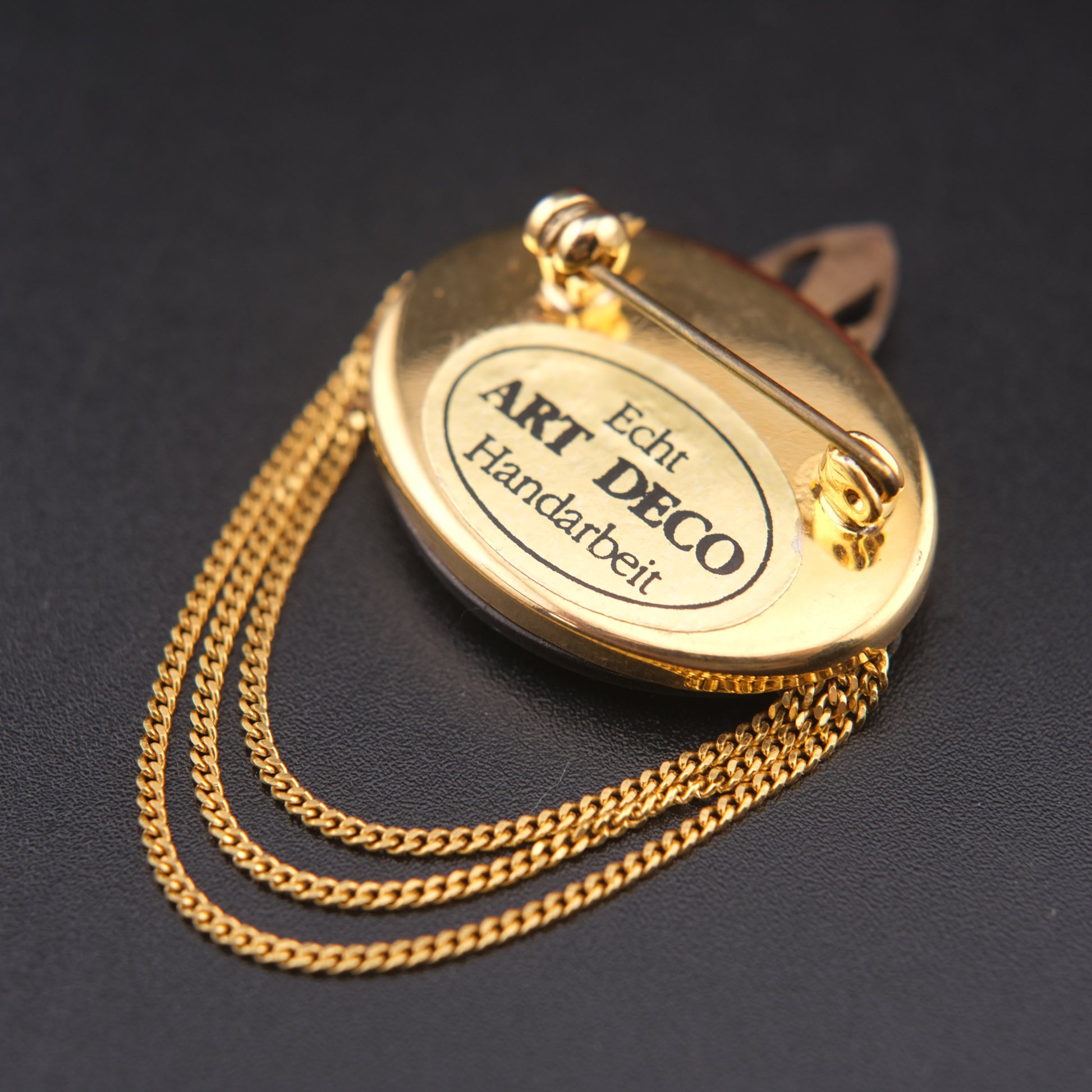 Hallmarked: “Echt Art Deco Handarbeit” label on reverse