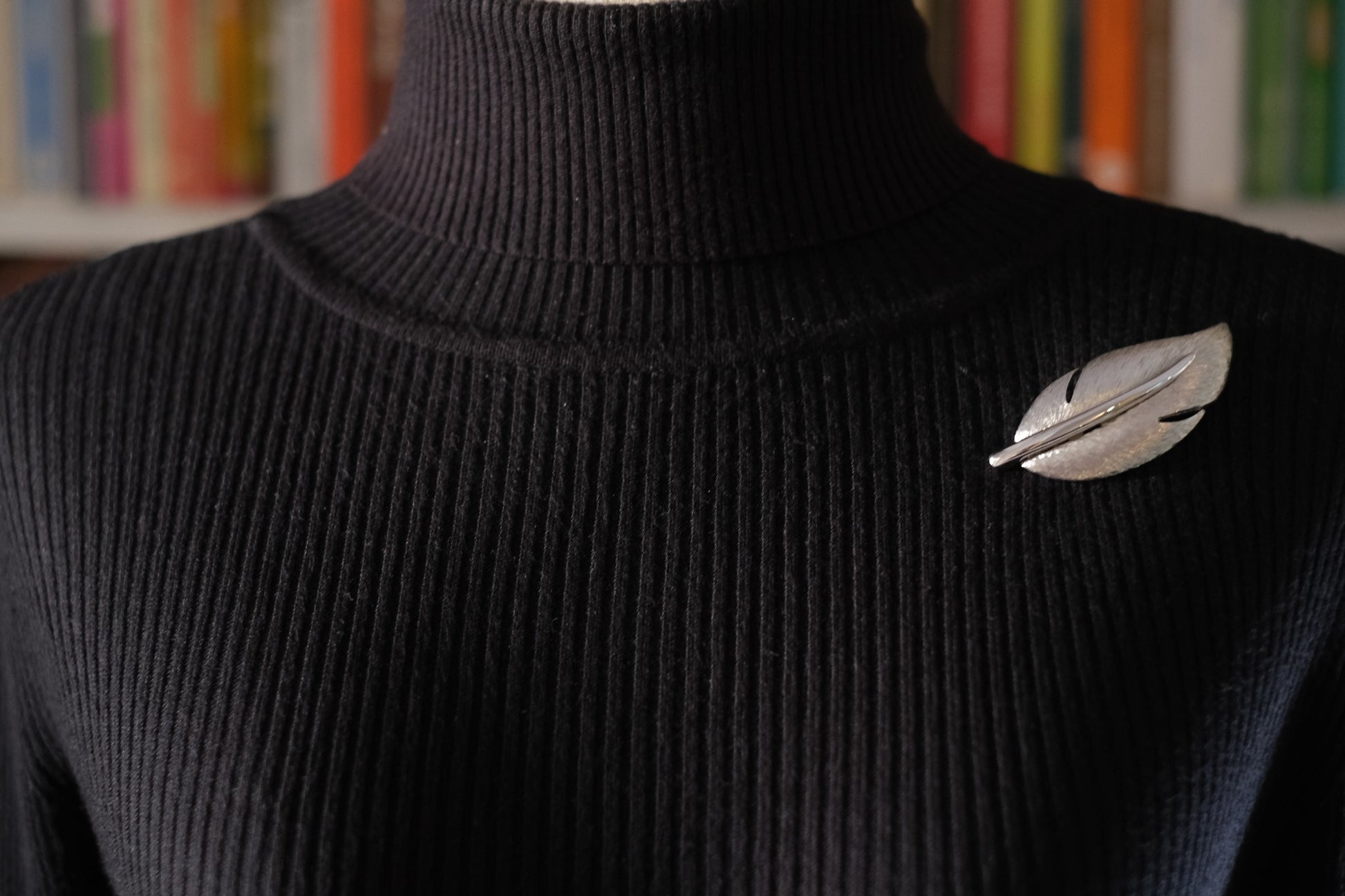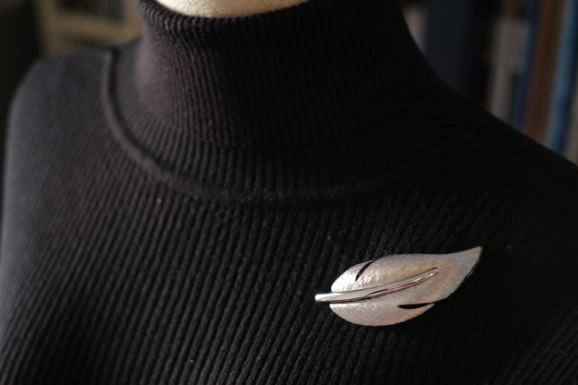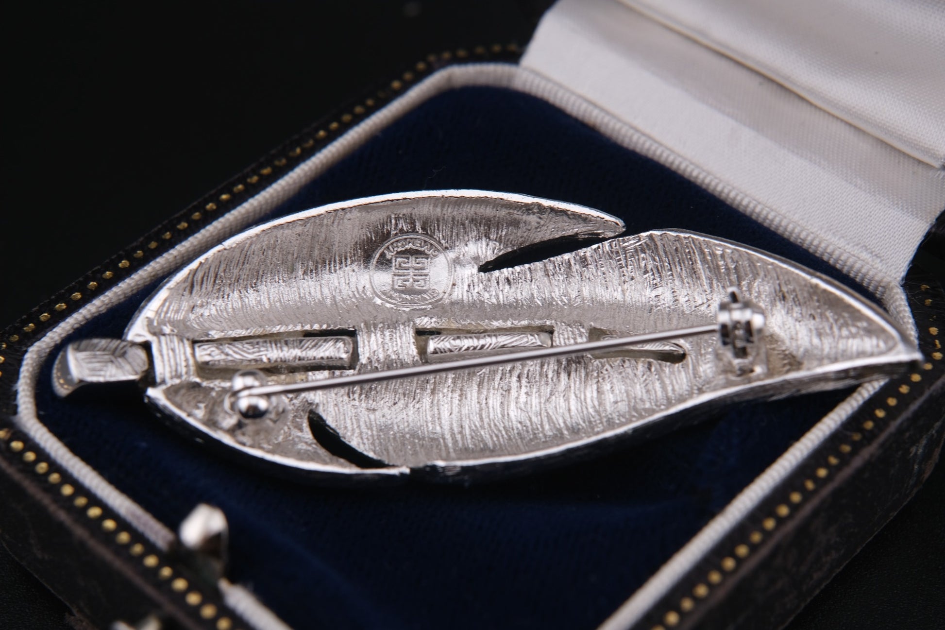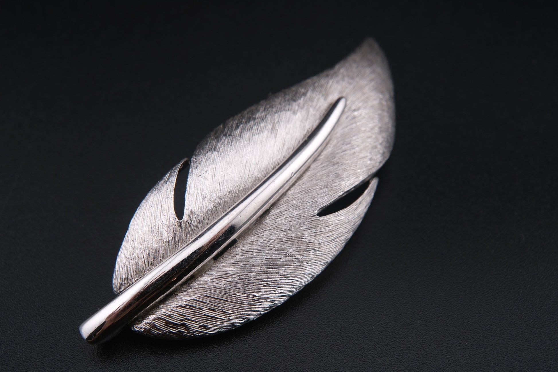 Givenchy Leaf Brooch – Silver-Tone with Brushed & Polished Finish