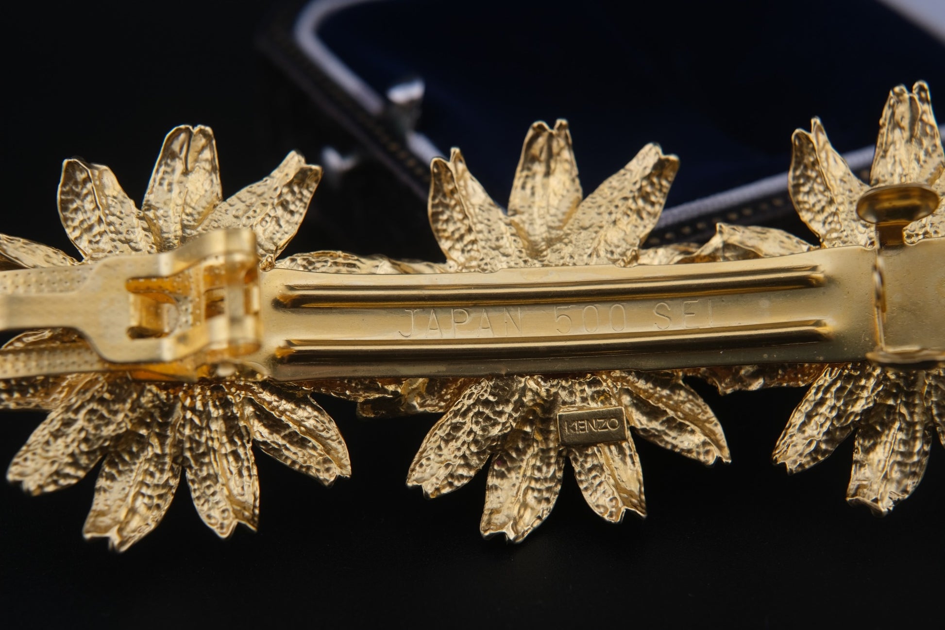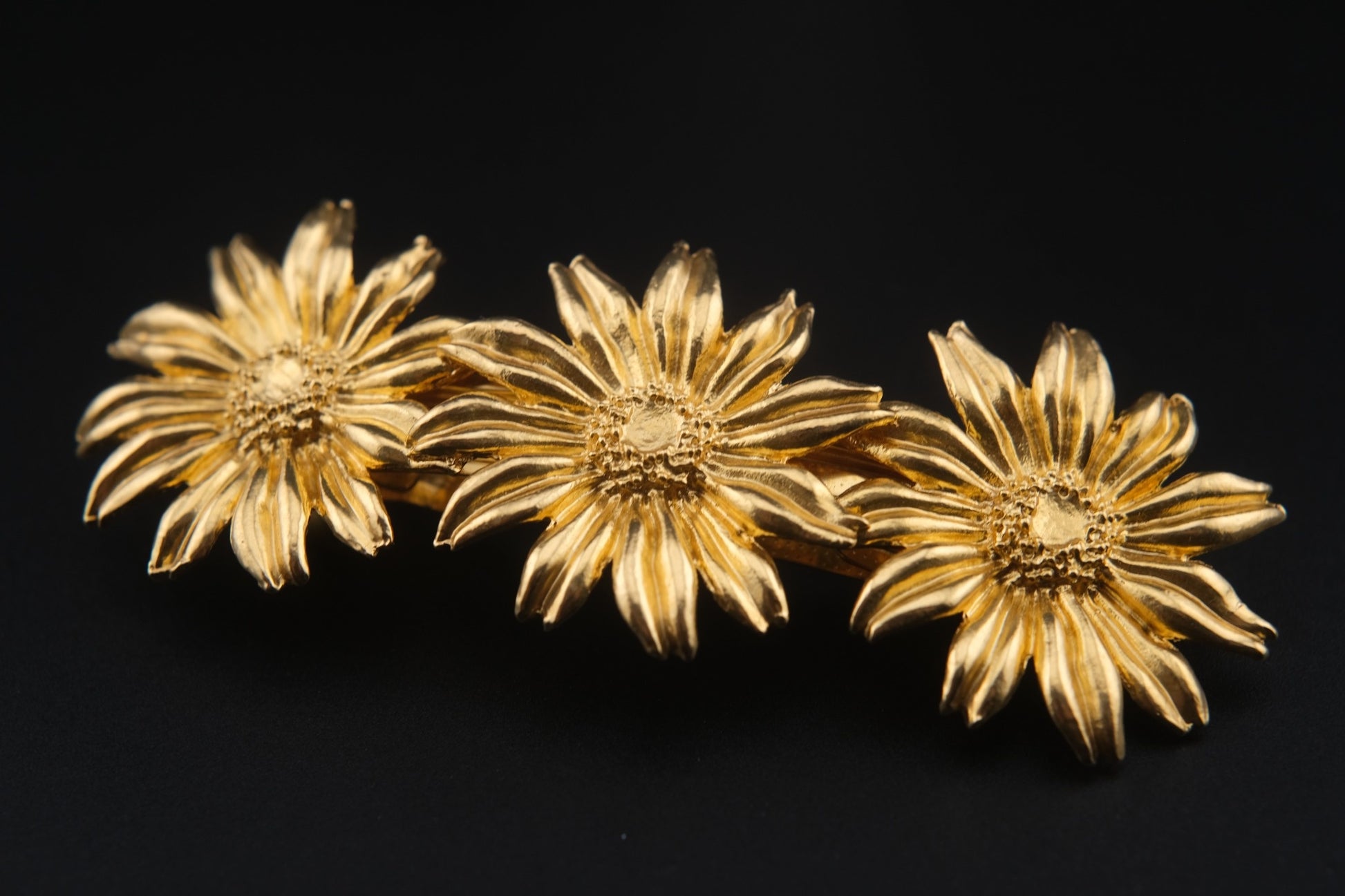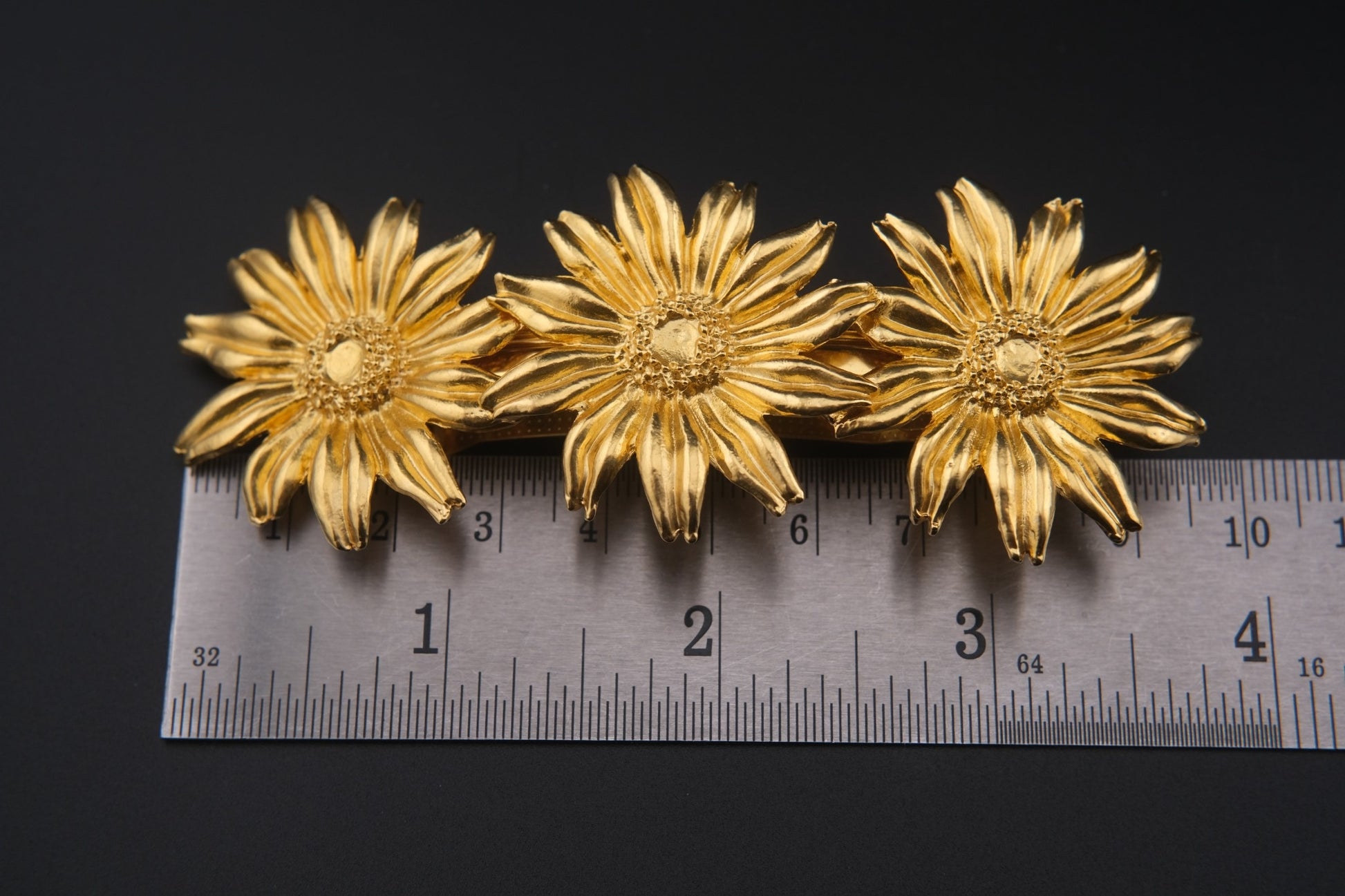 Kenzo Gold-Tone Floral Hair Clip – Triple Bloom Design, Made in Japan