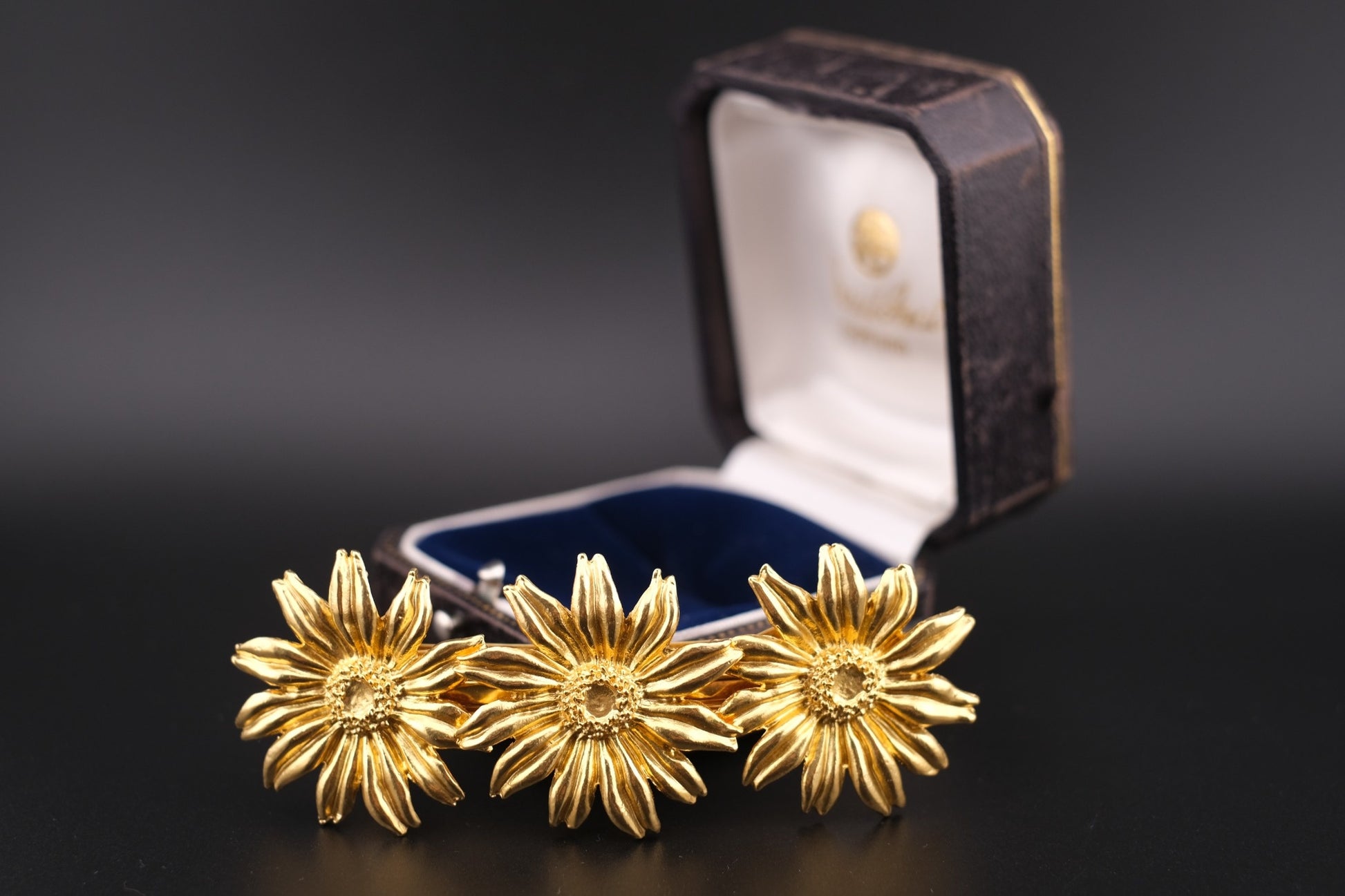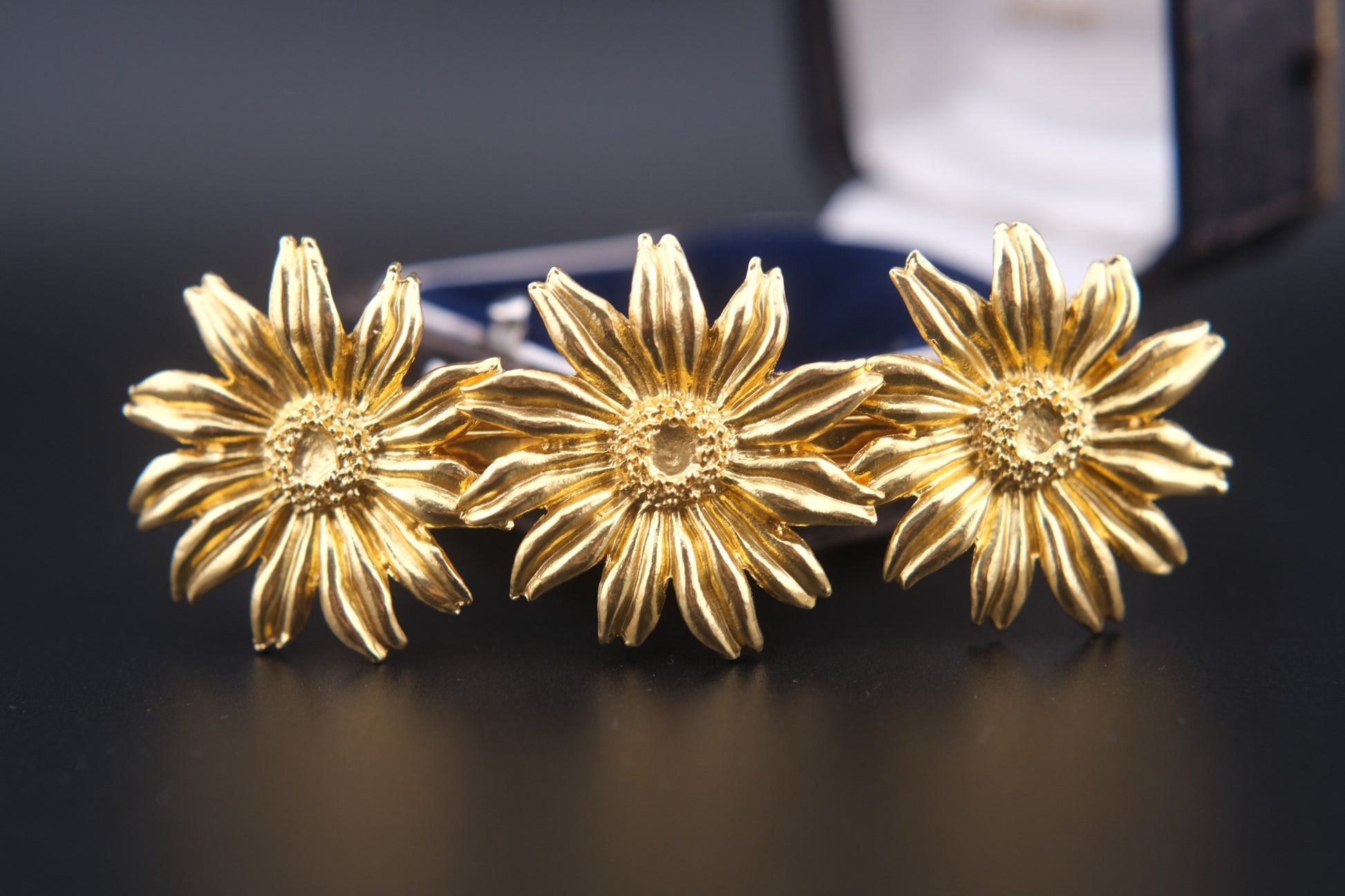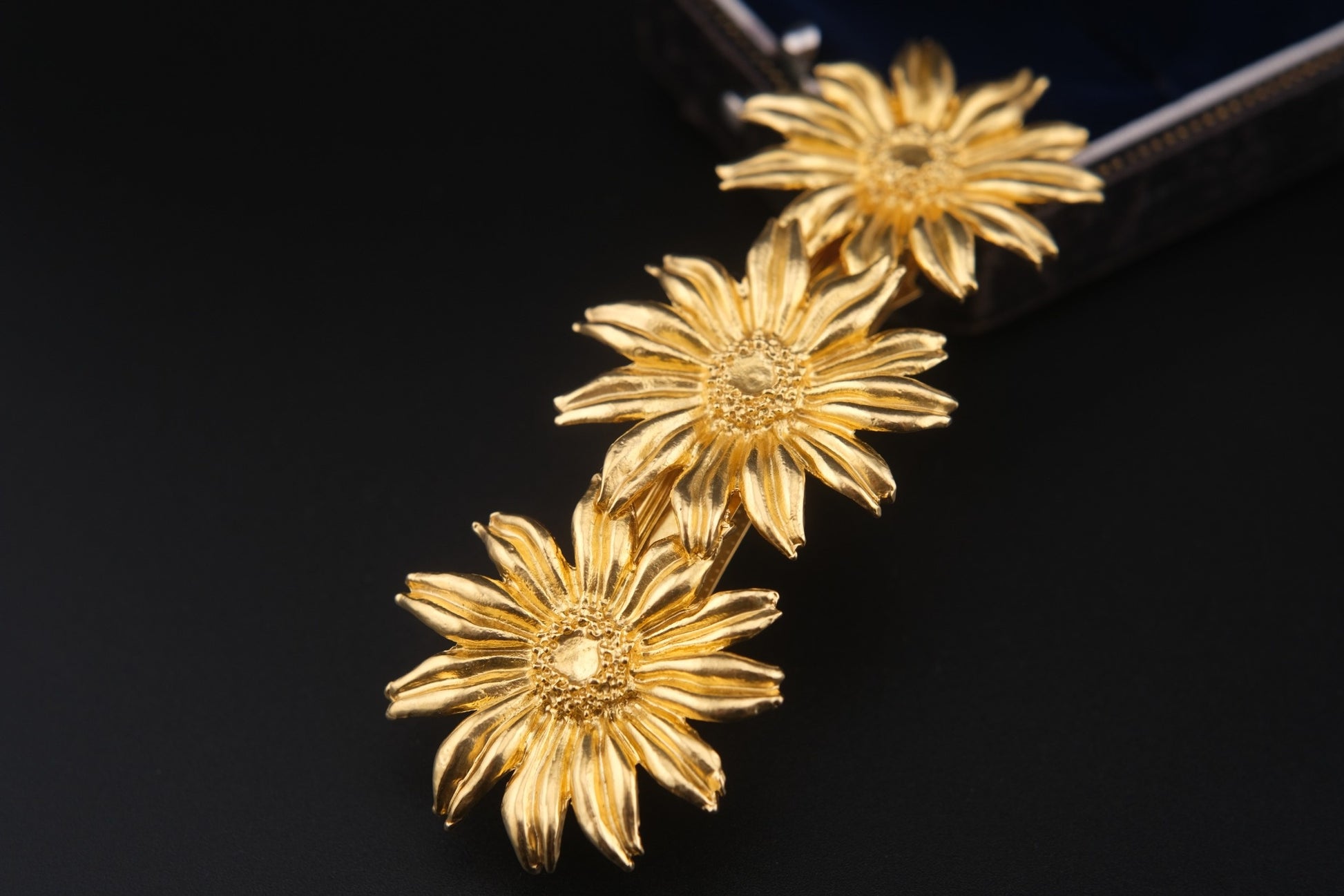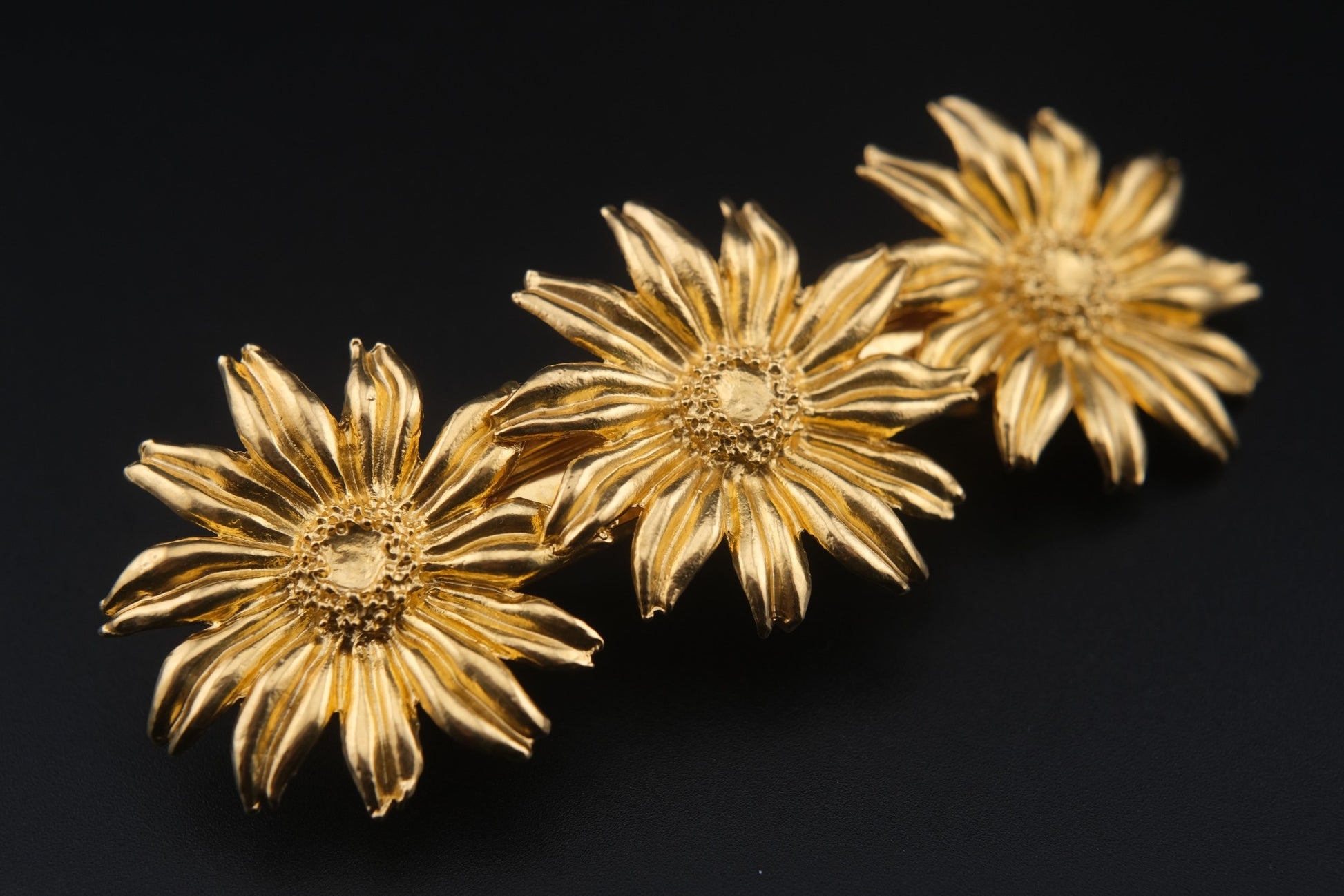 Kenzo Gold-Tone Floral Hair Clip – Triple Bloom Design, Made in Japan