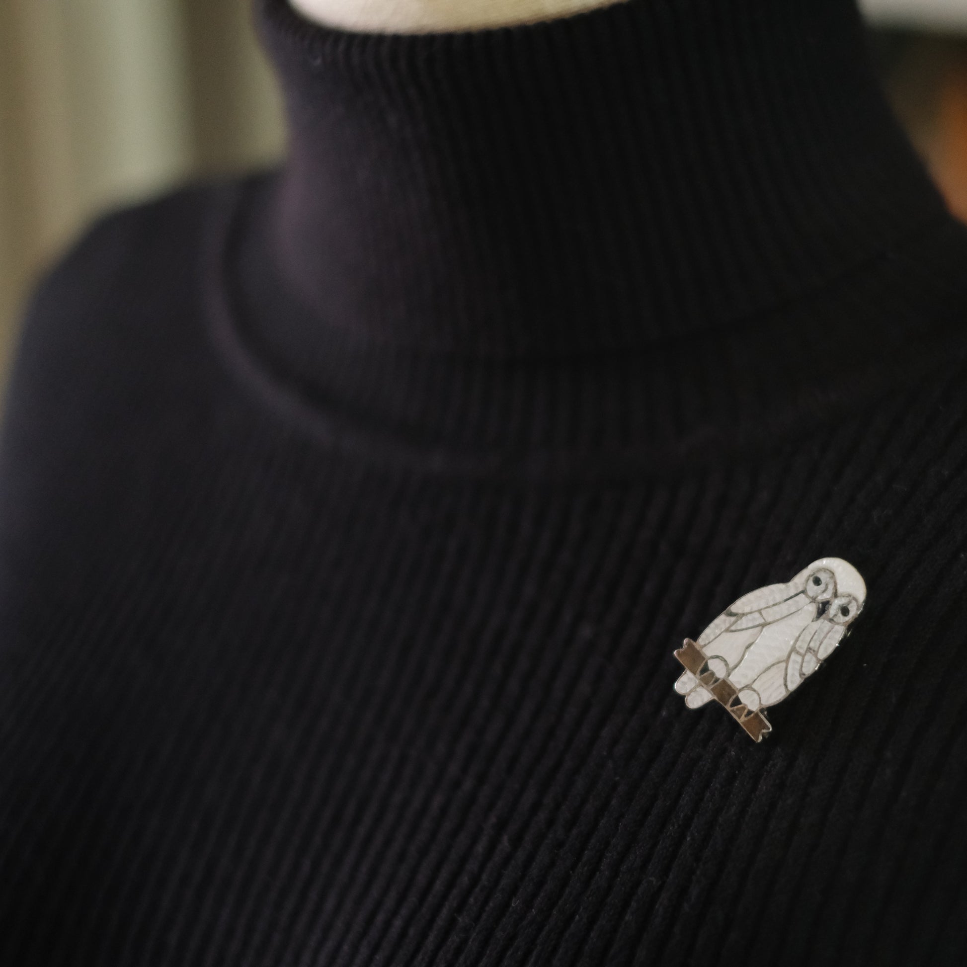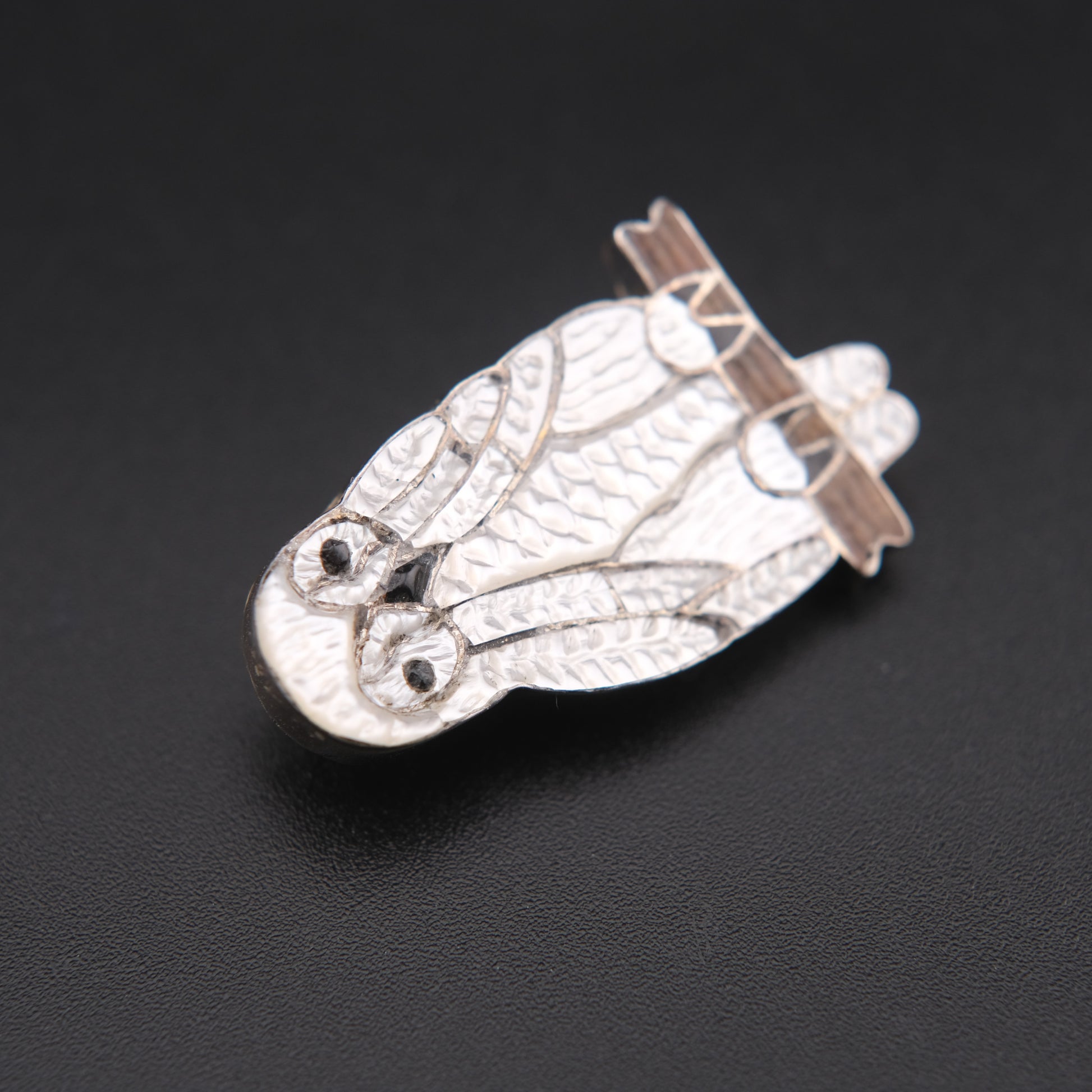 Native American White Pearl Owl Brooch & Pendant – Sterling Silver Cloisonné Enamel