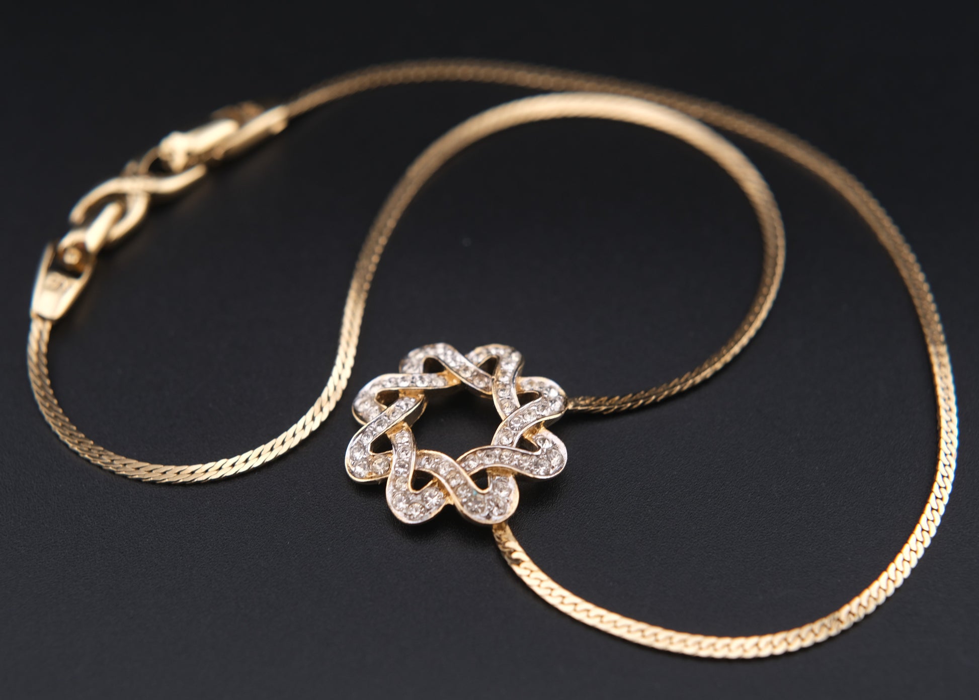 Nina Ricci Star Knot Crystal Necklace – Gold-Tone Choker Style