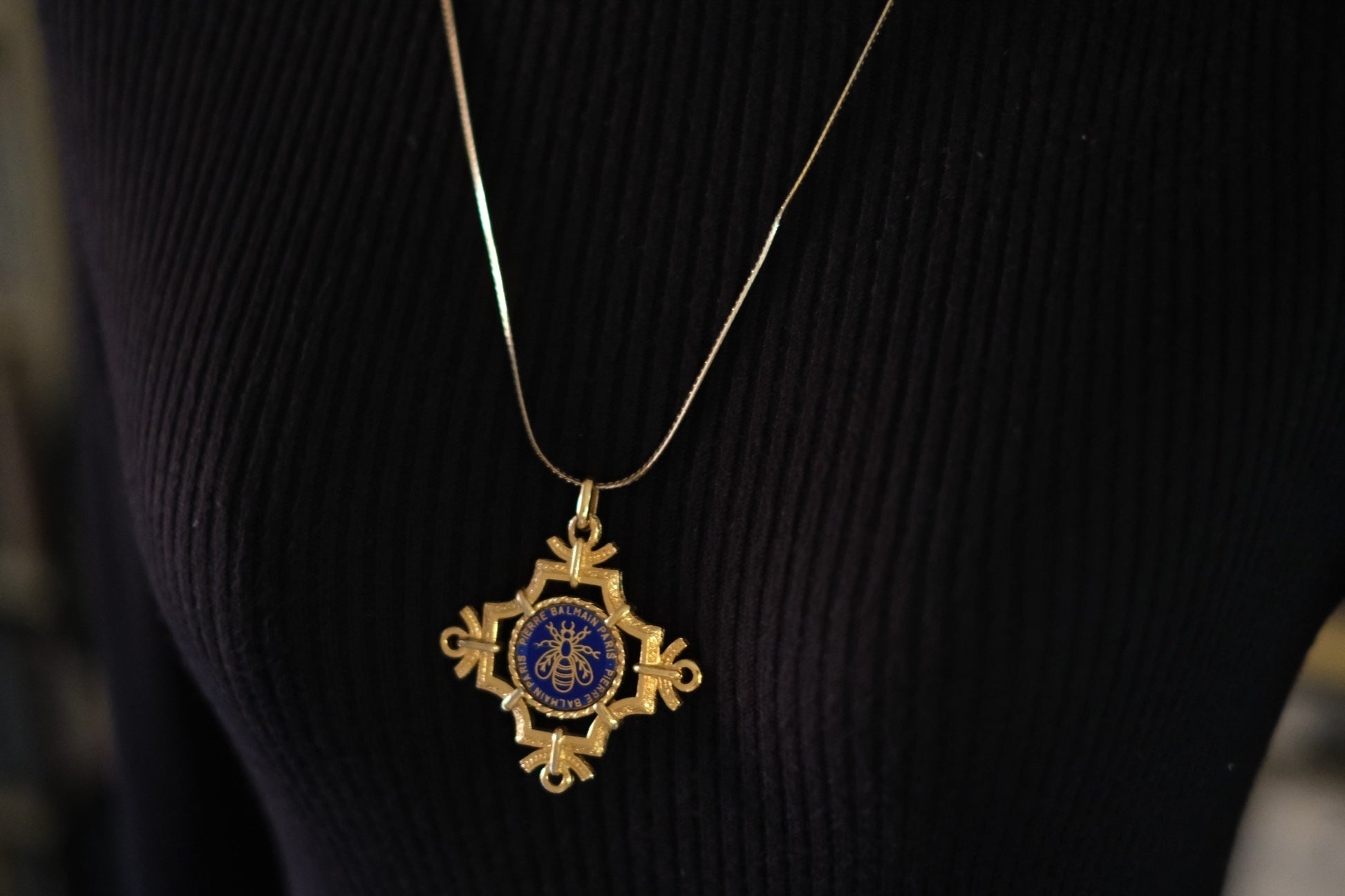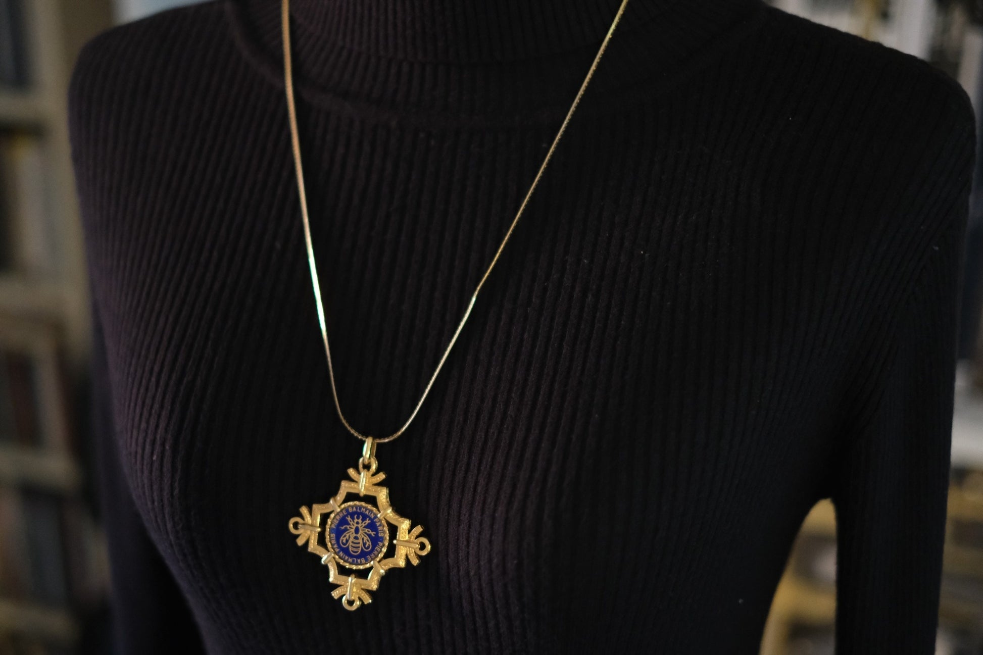 Pierre Balmain Paris Vintage Pendant – Gold-Tone with Royal Blue Enamel Bee Motif