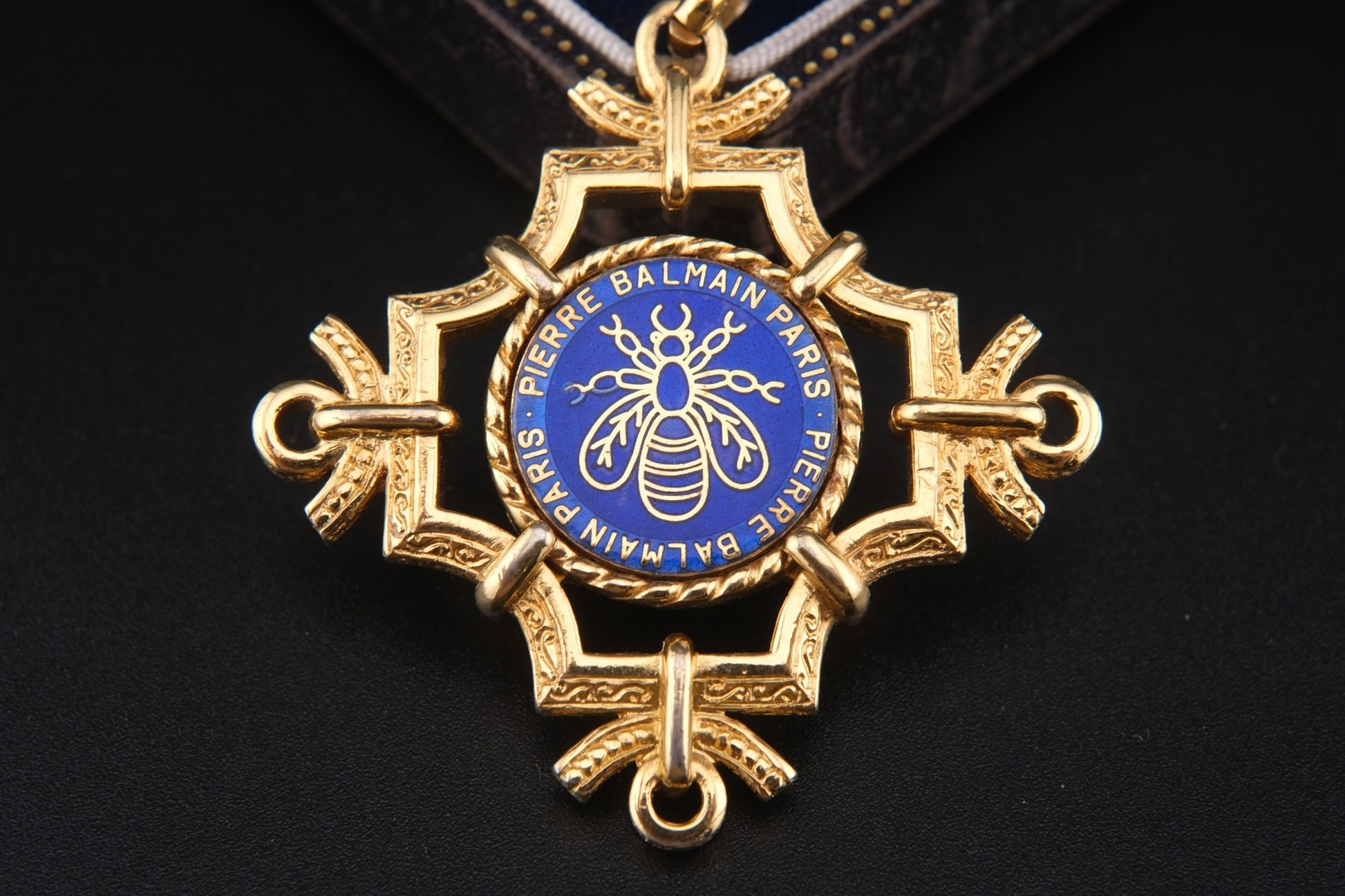 - Design: Regal bee emblem with “Pierre Balmain Paris” lettering, ornate frame