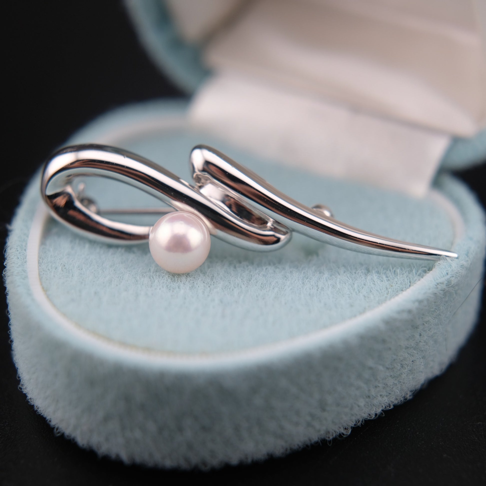 ❤️ Tasaki Akoya Pearl Brooch – Sculptural Silver Ribbon Design