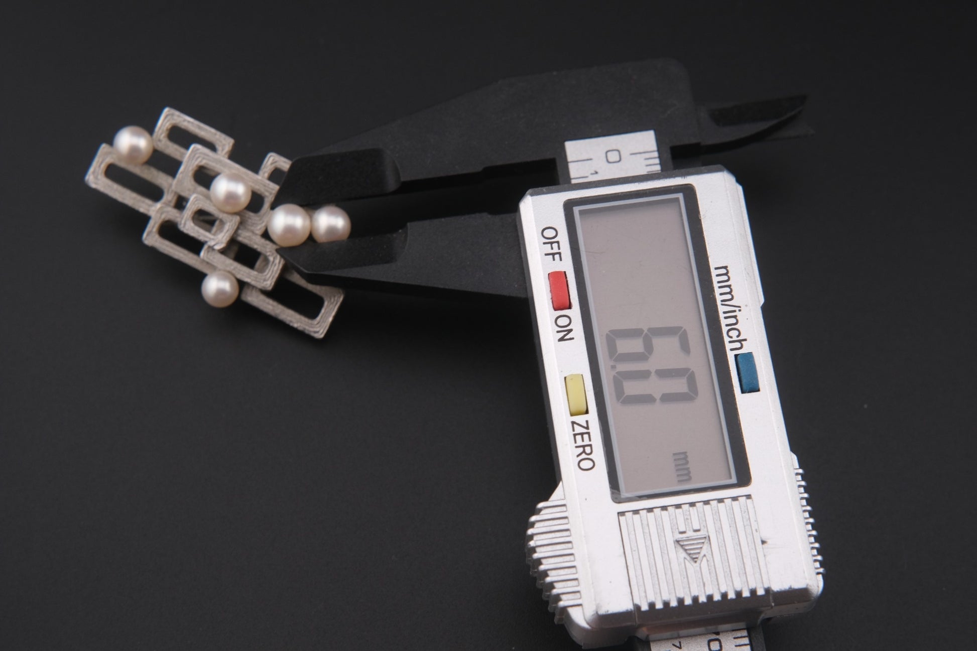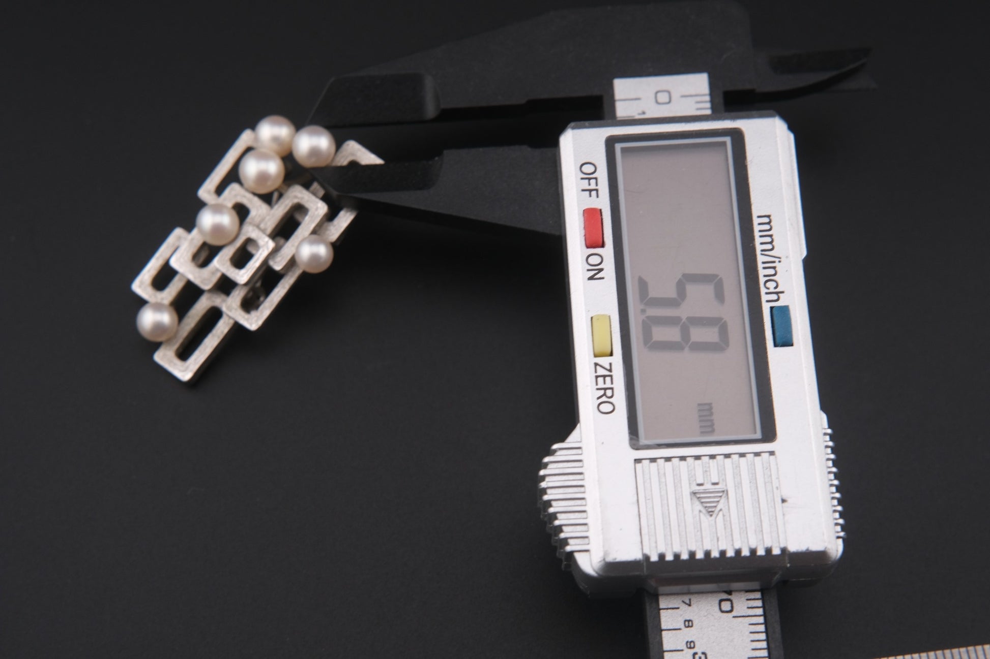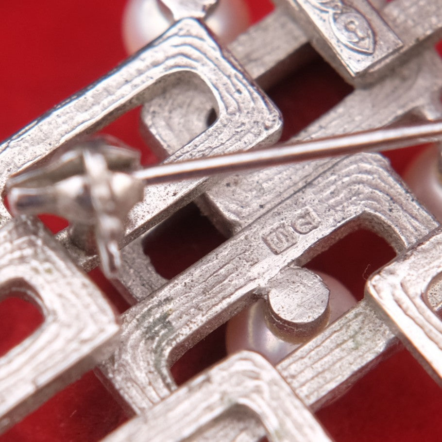 Tasaki Modernist Pearl Brooch – Sterling Silver 925 with Geometric Openwork Design