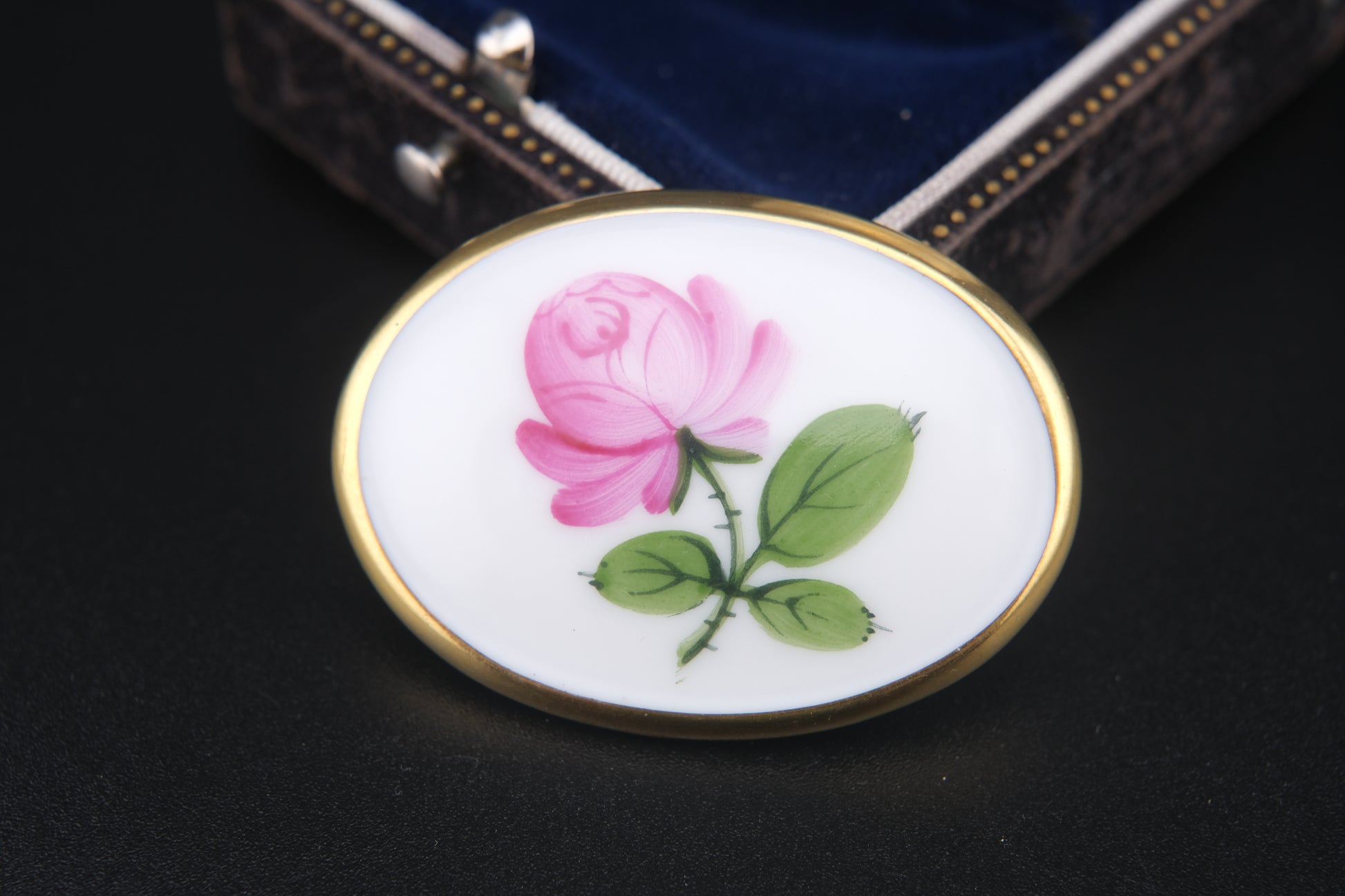 Vintage Augarten Wien Porcelain Rose Brooch – Hand-Painted Floral Oval Pin