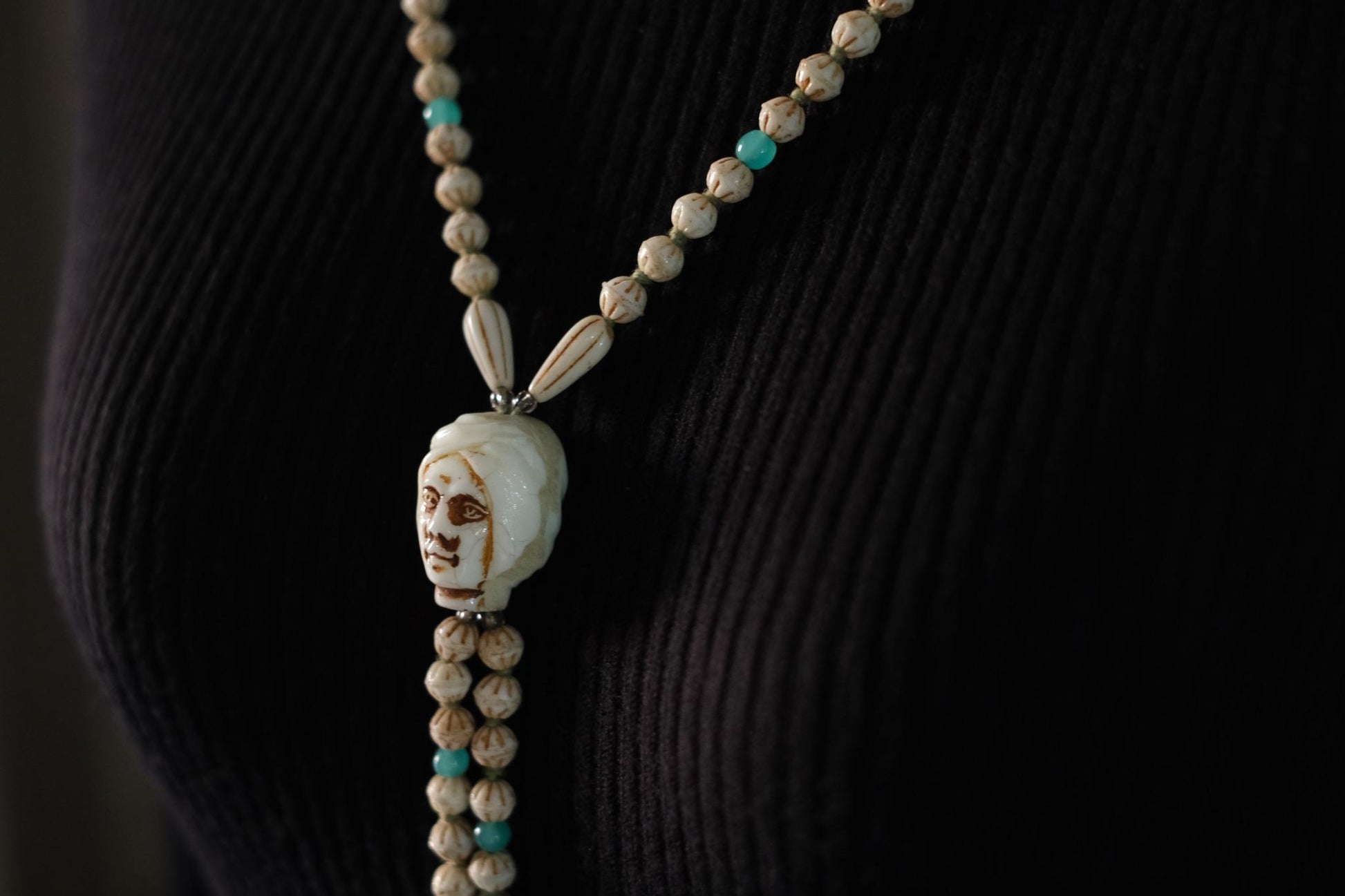 Vintage Carved Face Bead Tribal Necklace – 40" Long