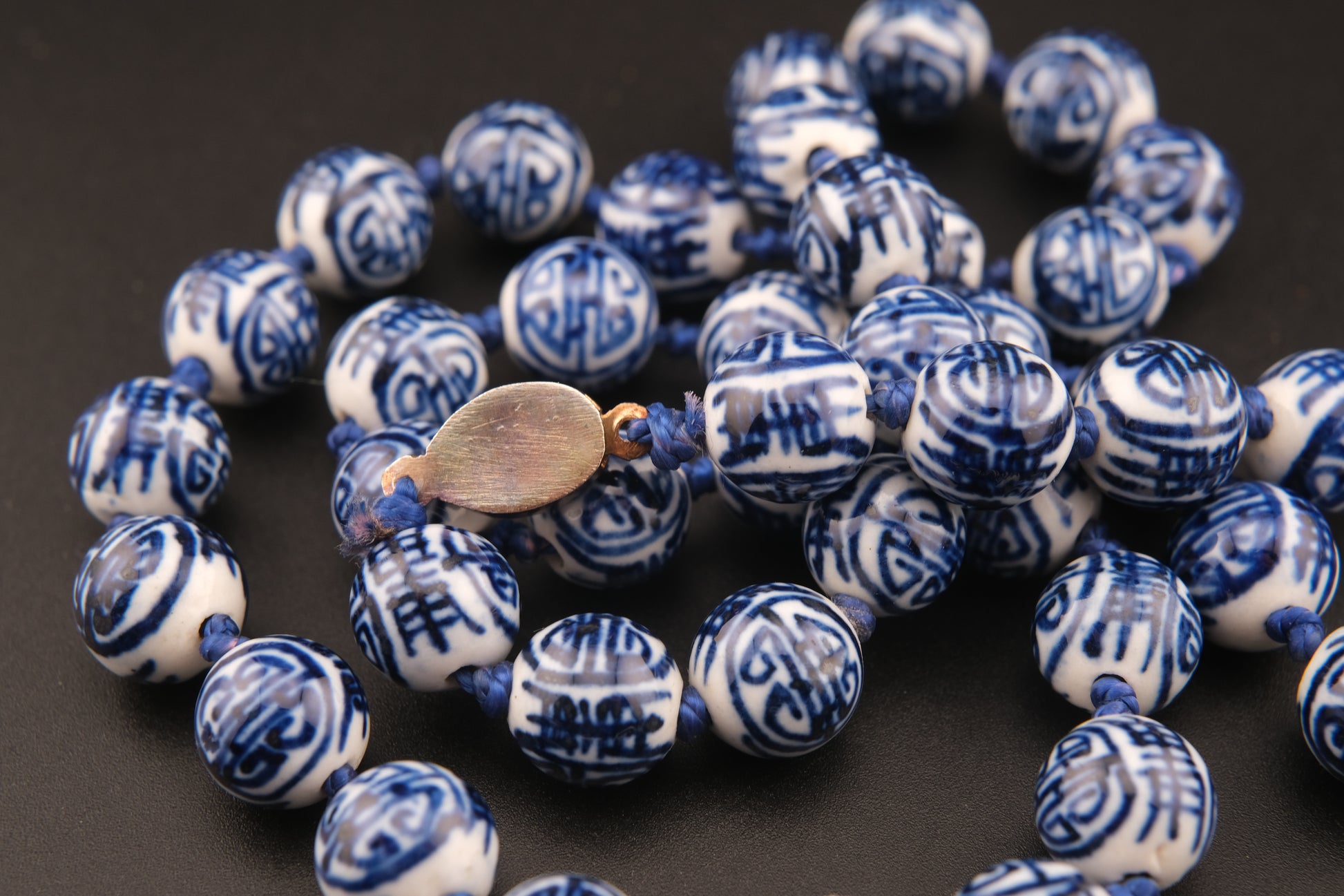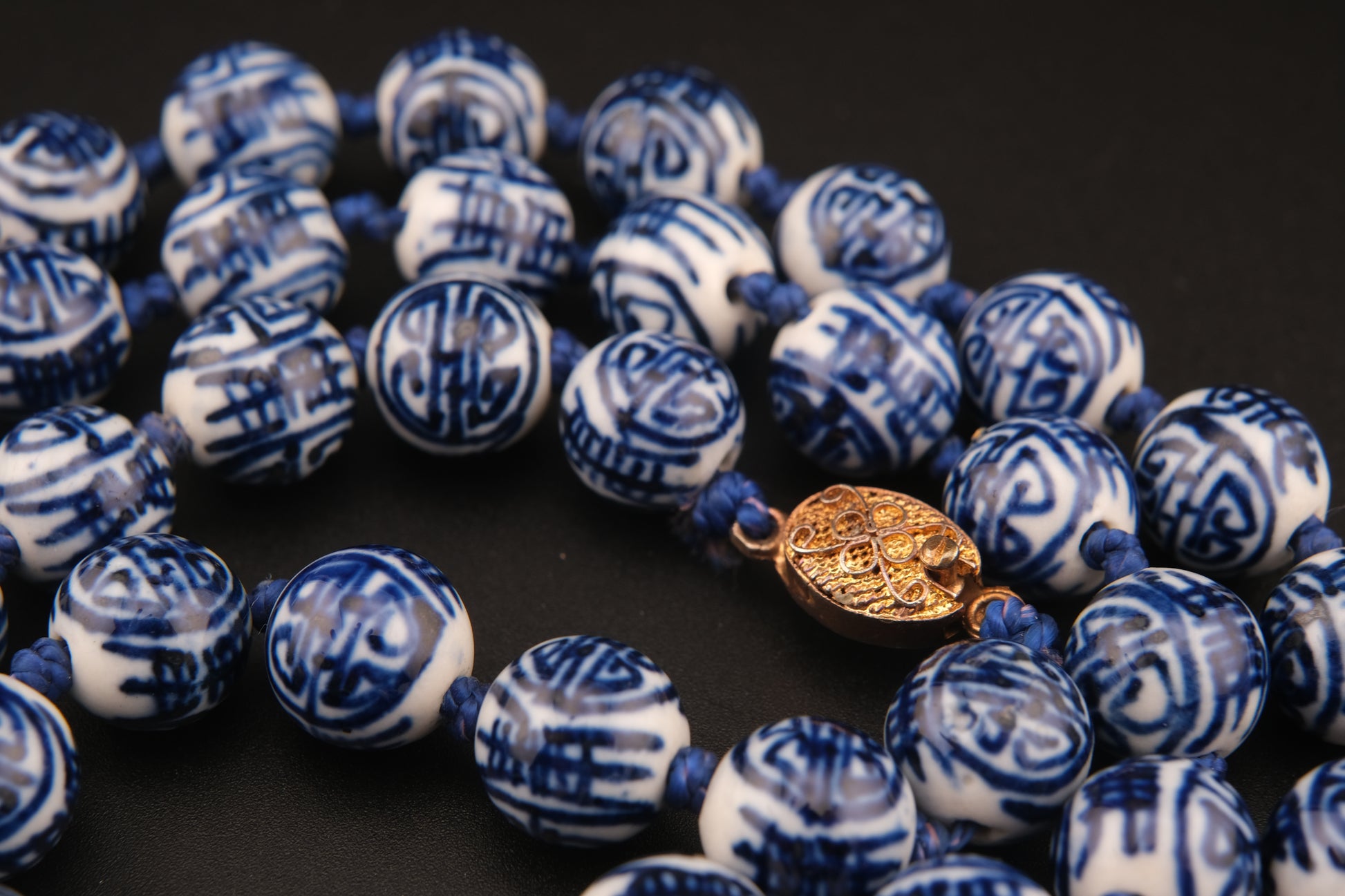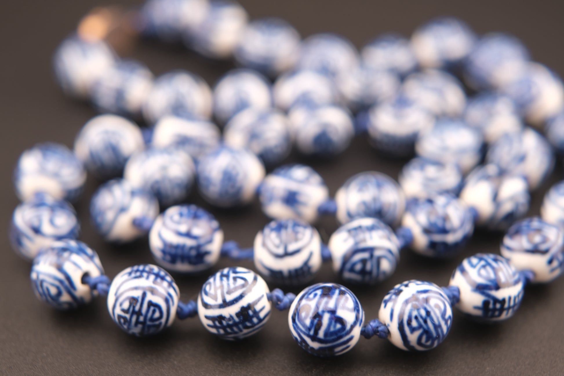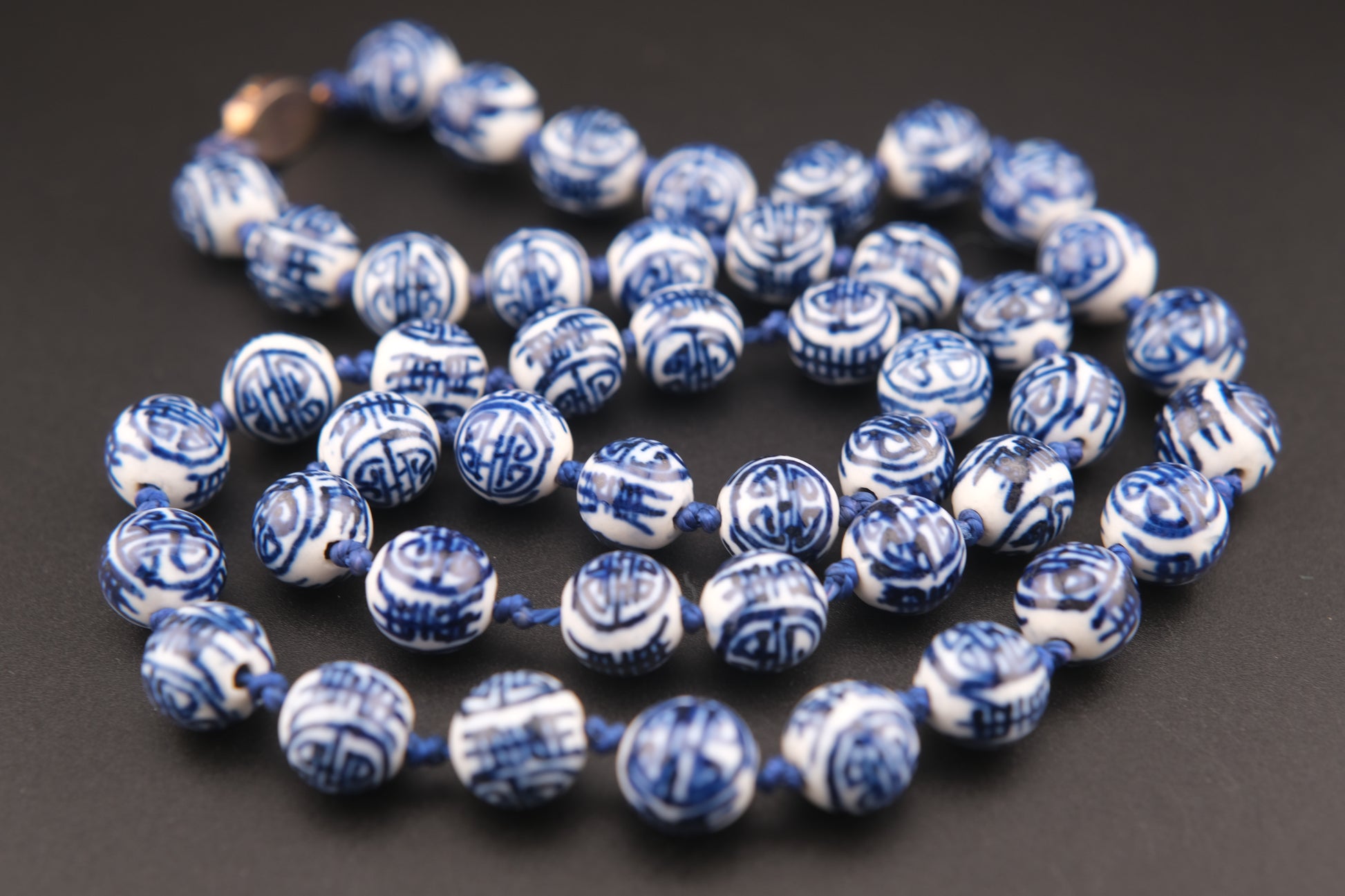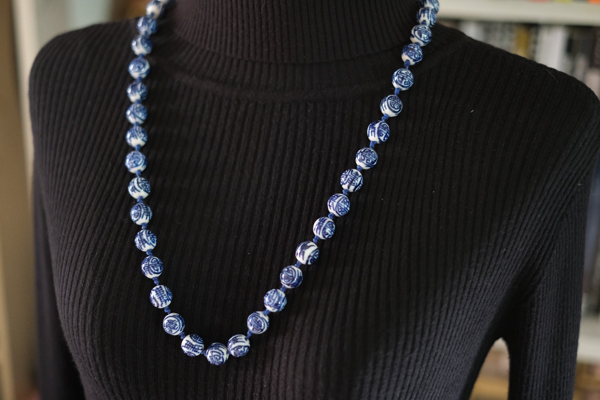 Vintage Chinese Porcelain Bead Necklace – Hand Painted Blue & White