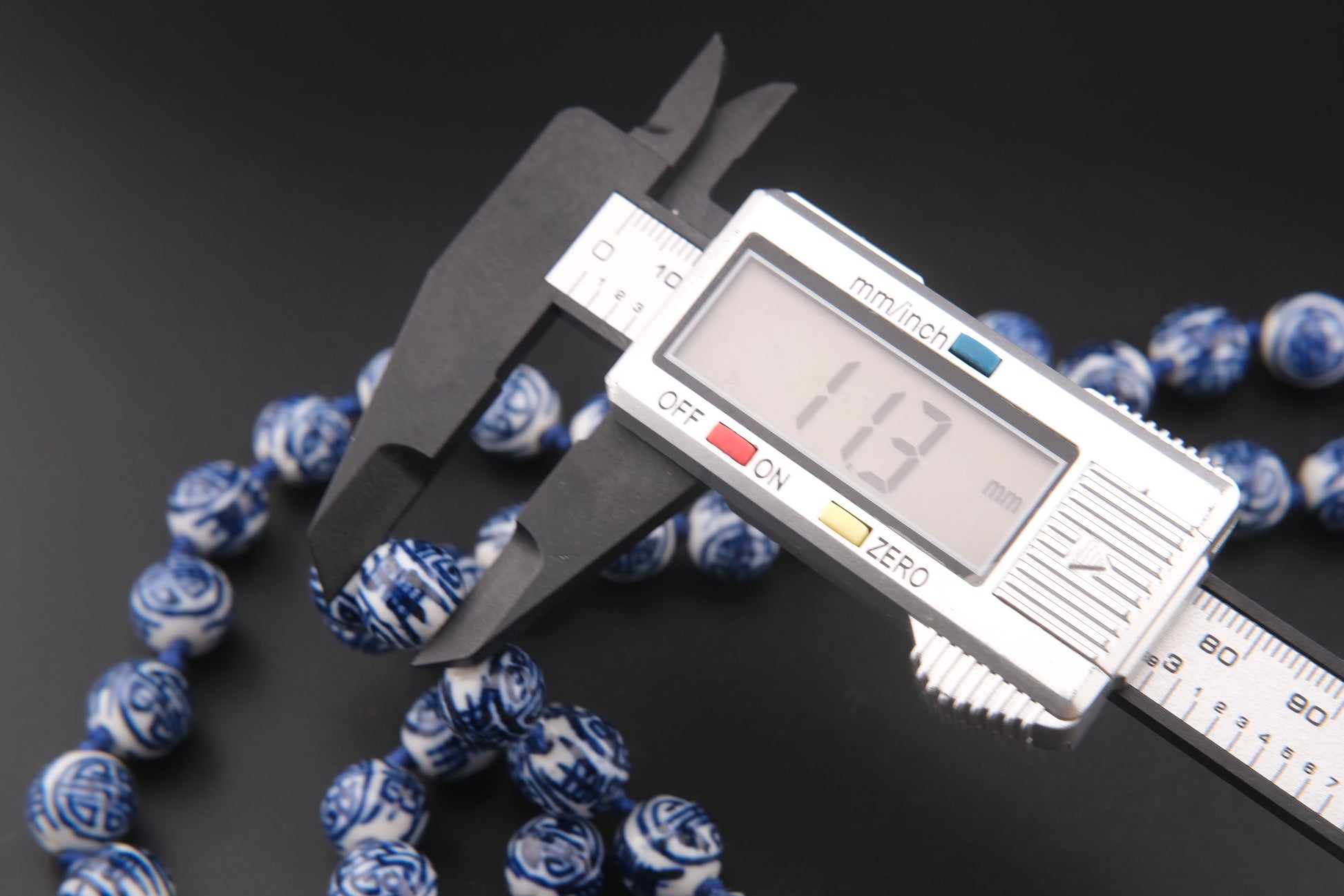 - Design: Blue hand-painted floral and geometric motifs on white porcelain beads