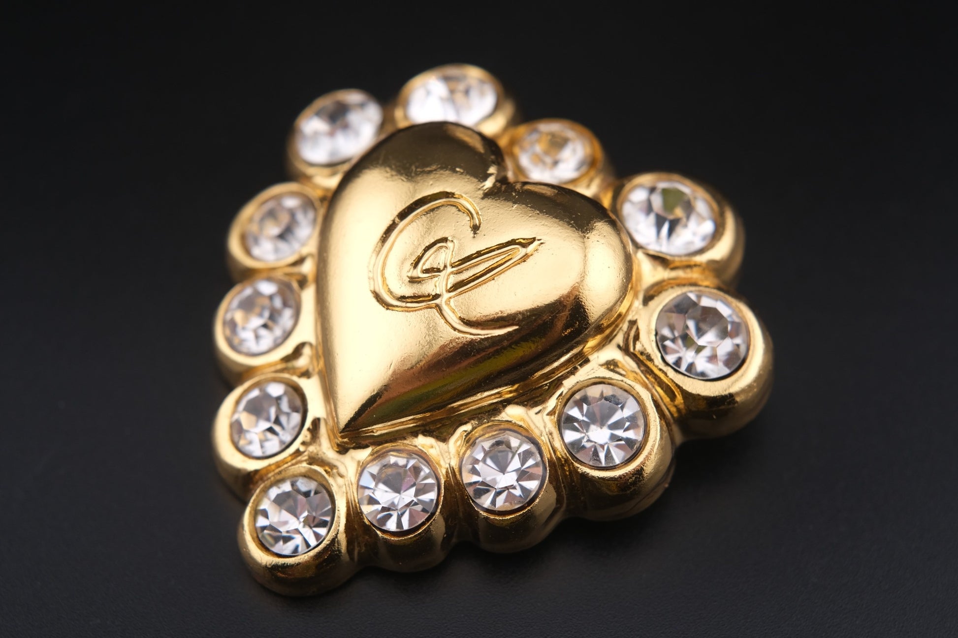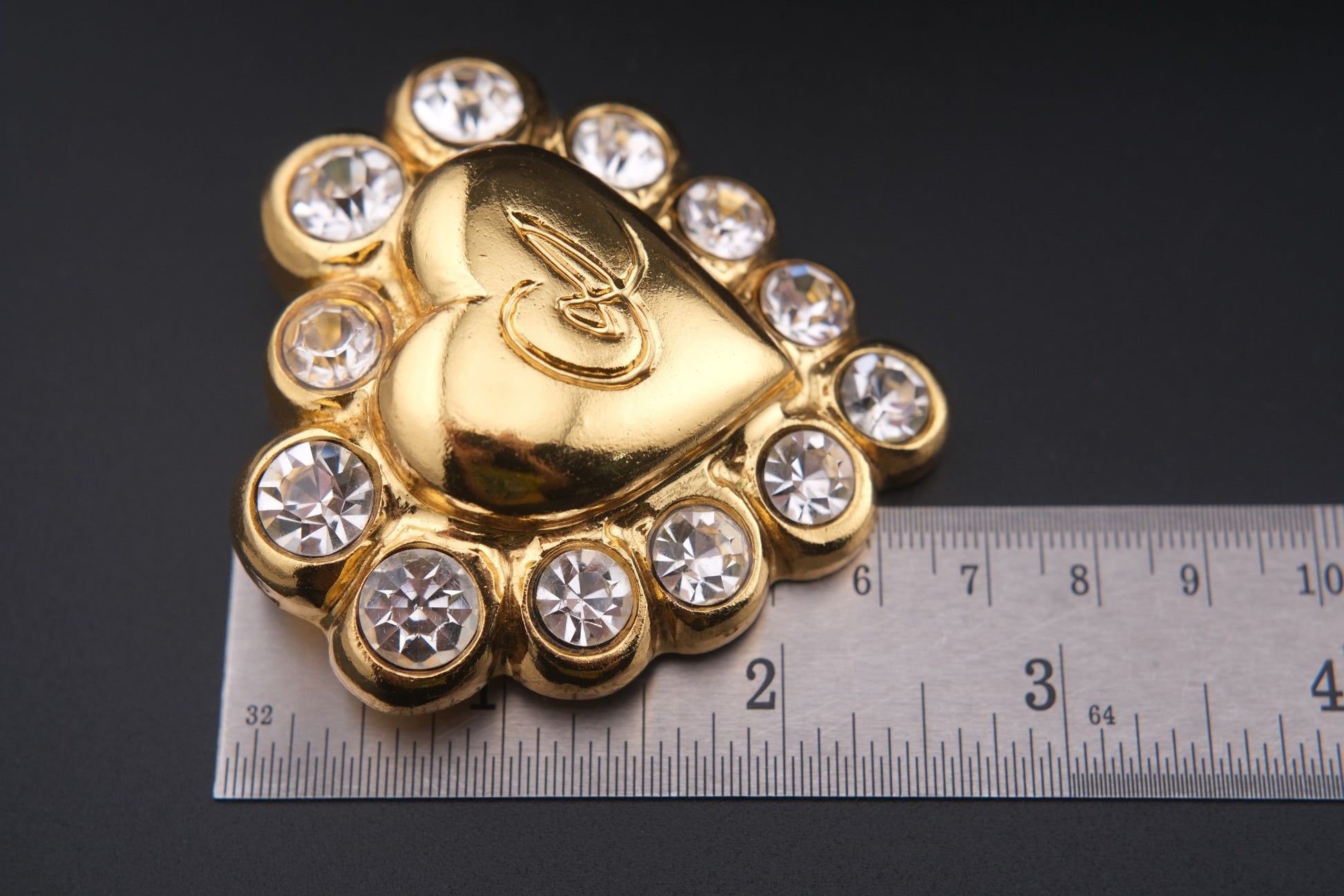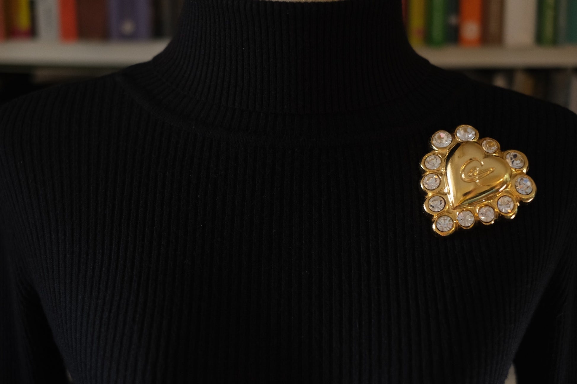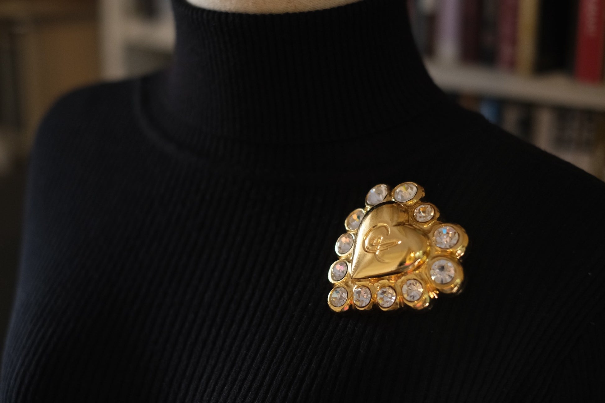Vintage Christian Lacroix Gilt Heart Brooch with Crystal Accents – Made in France