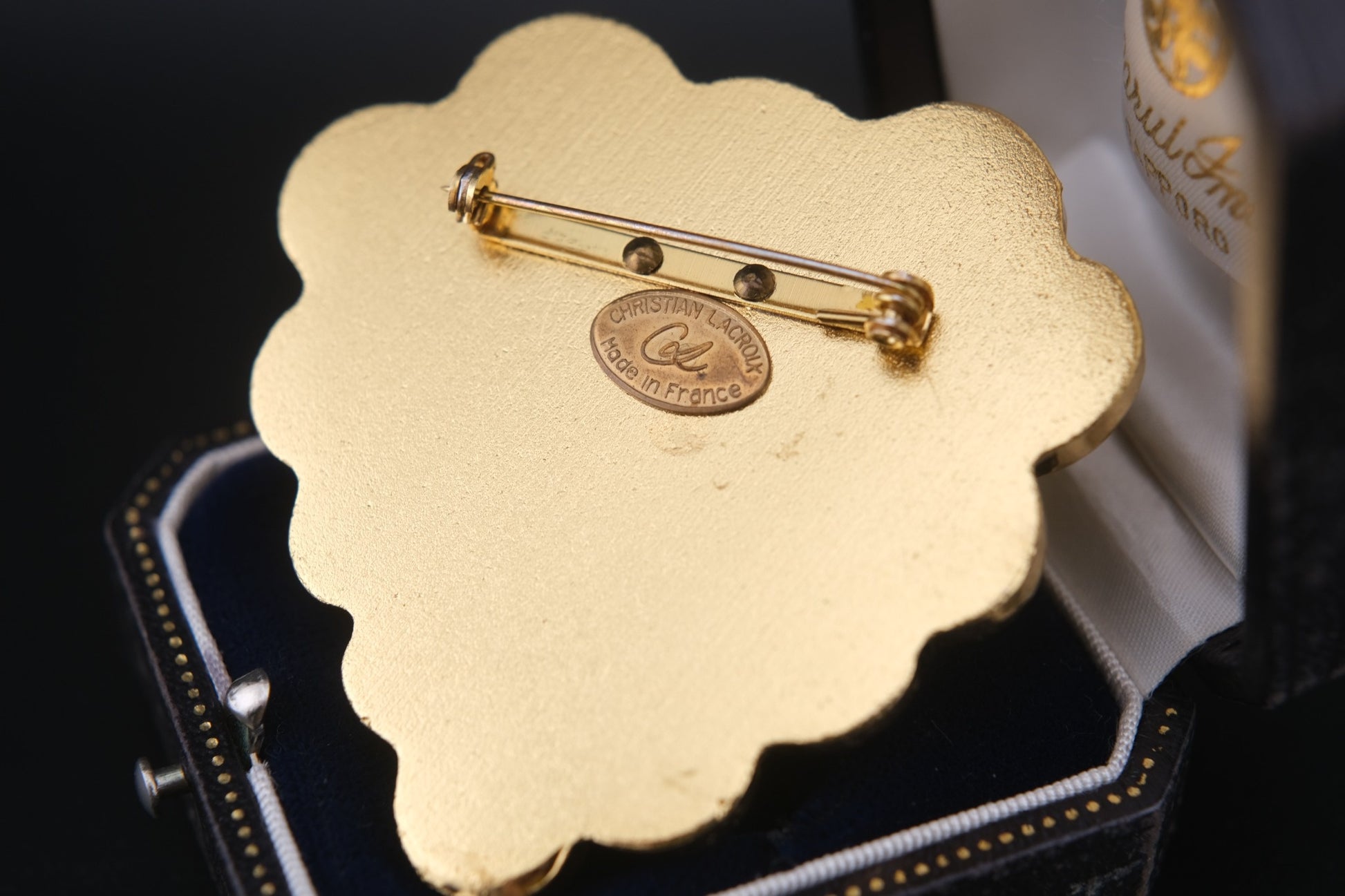 This iconic design embodies the theatrical, romantic style that made Christian Lacroix one of the most collectible couture jewelry designers of the era. Perfect for collectors and fashion enthusiasts alike, this brooch adds a glamorous touch to any outfit.