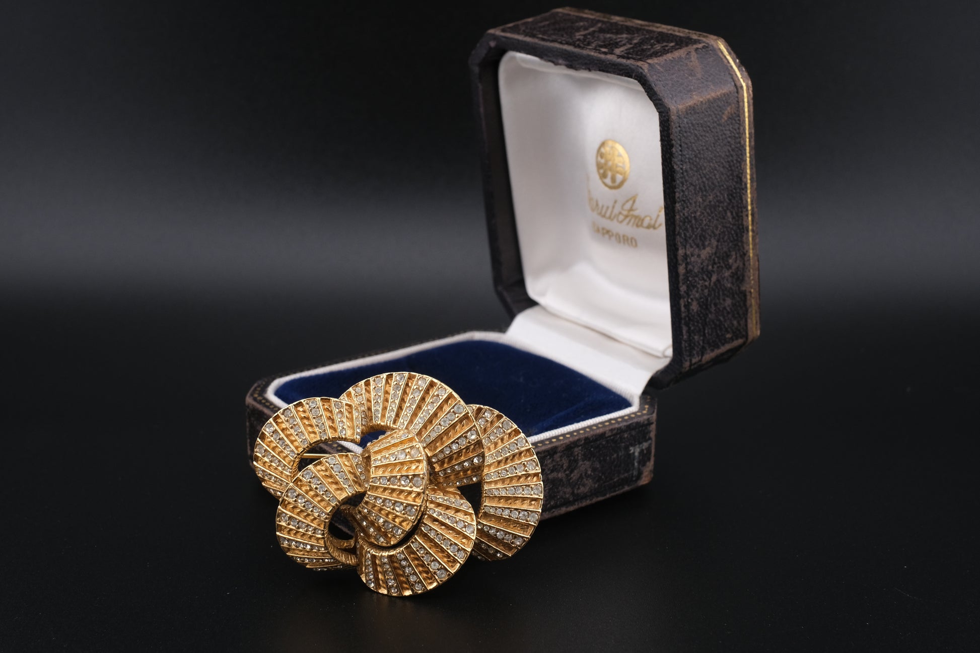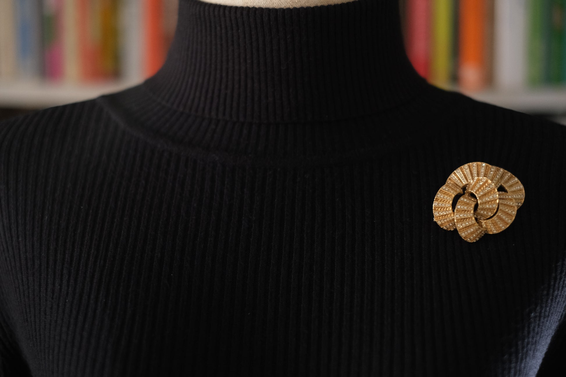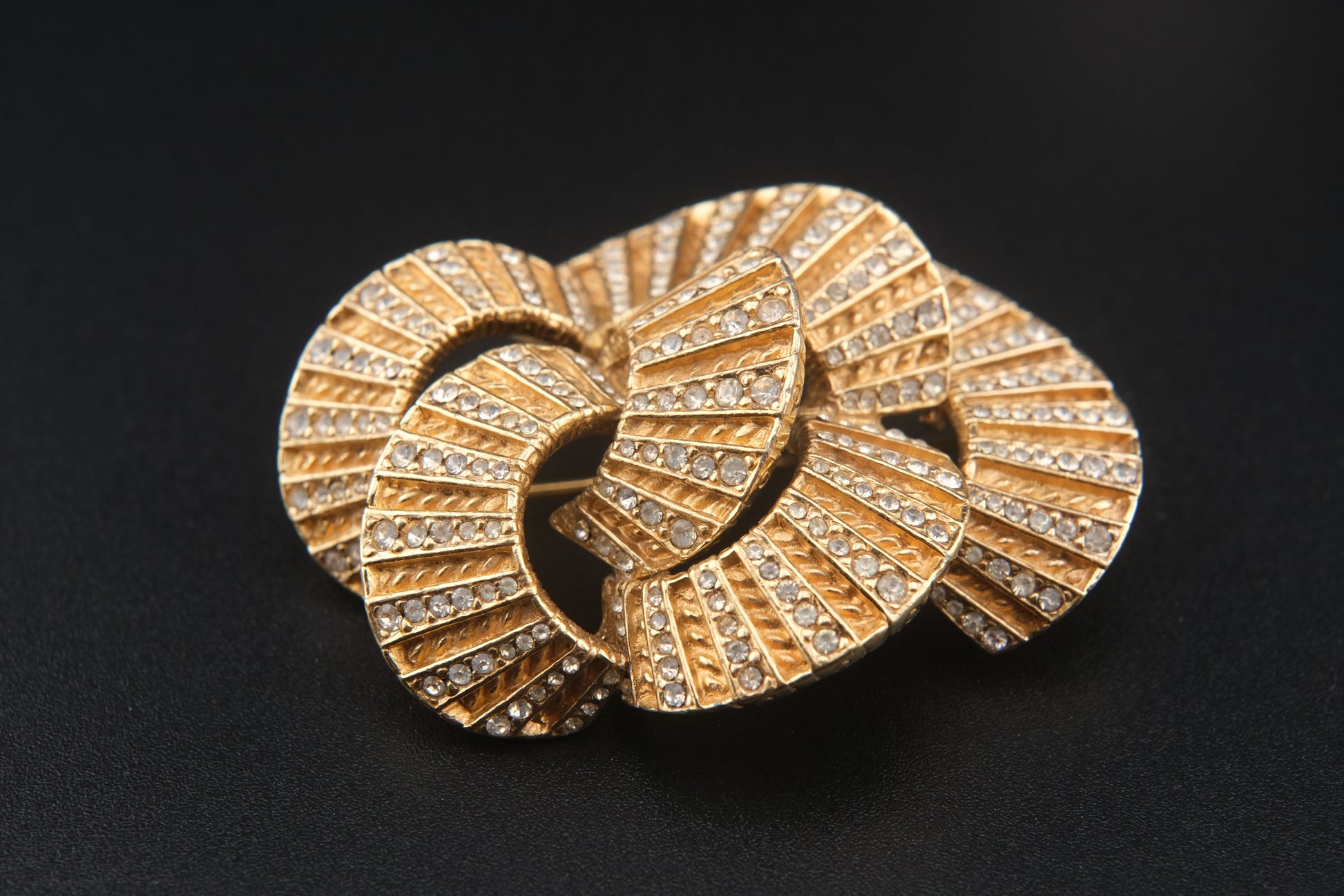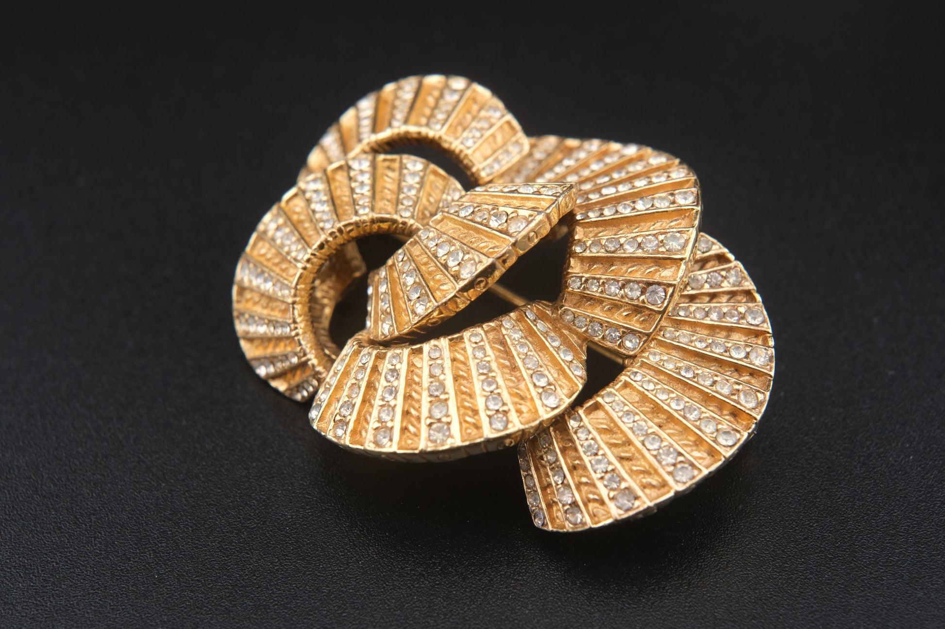 Vintage Ciner Brooch – Gold-Tone Interlocking Loops with Clear Rhinestones