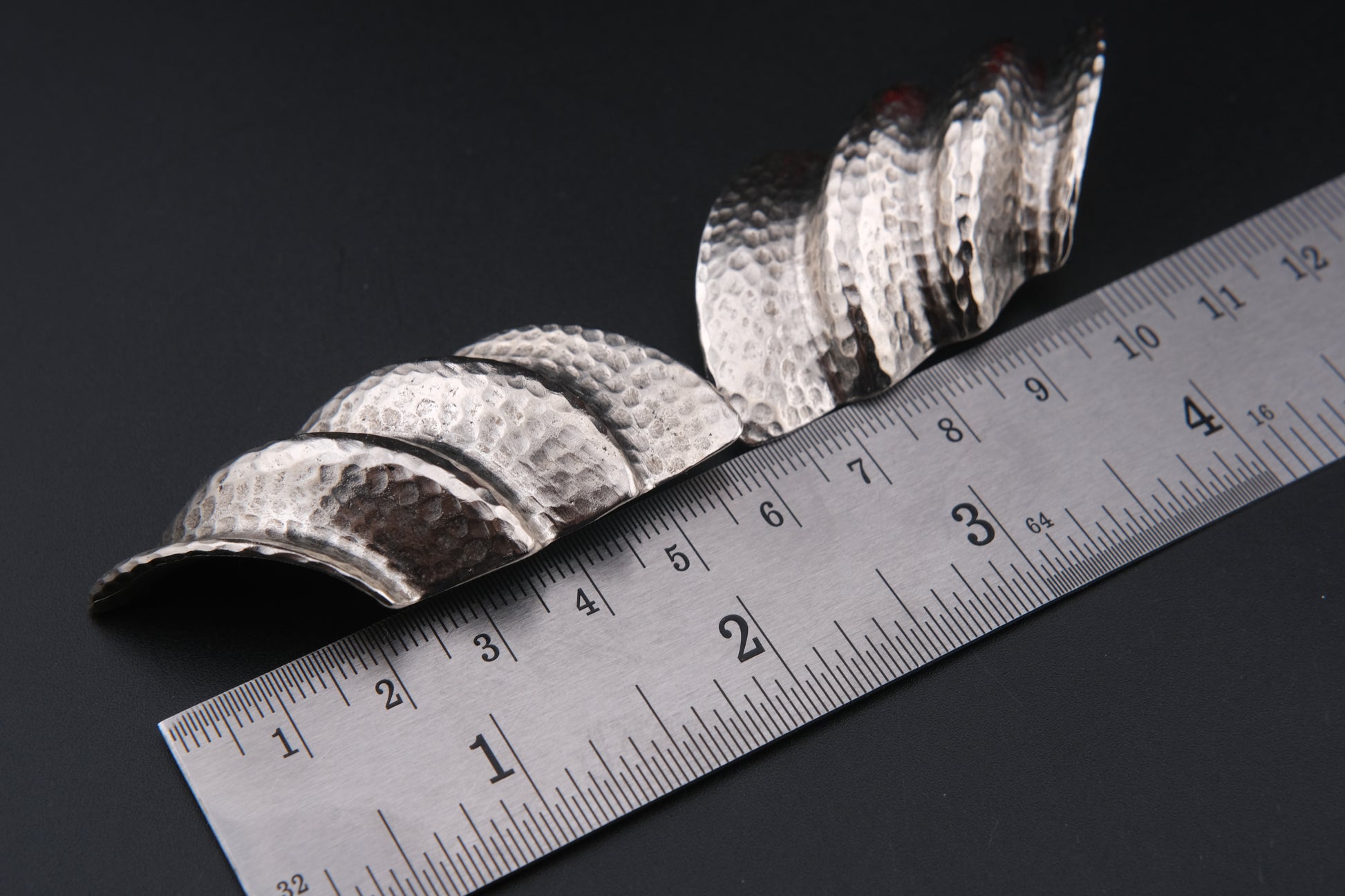 - Material: Hammered finish with sculptural ridges