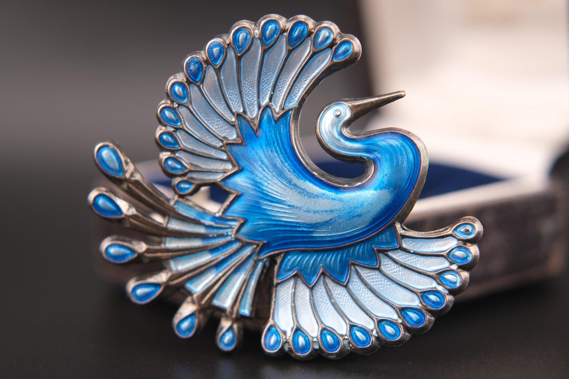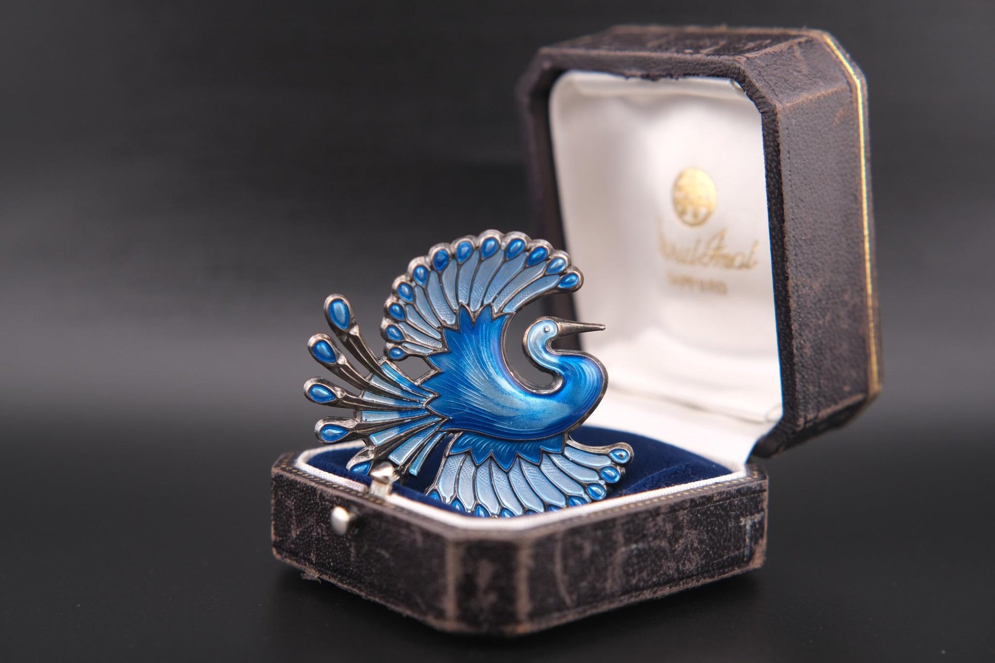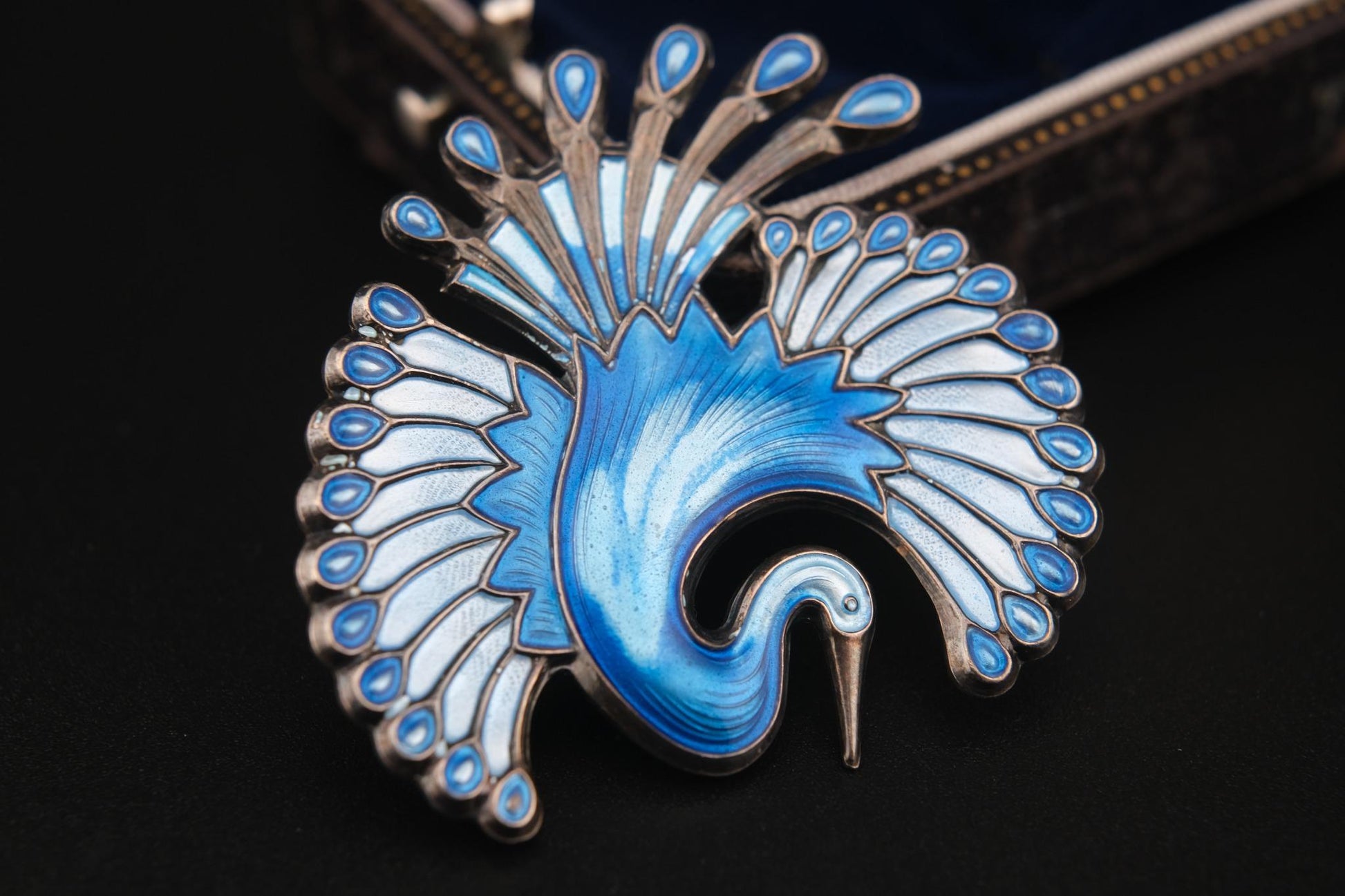 Vintage David-Andersen Sterling Silver & Enamel Bird Brooch – Norway, Blue Guilloché