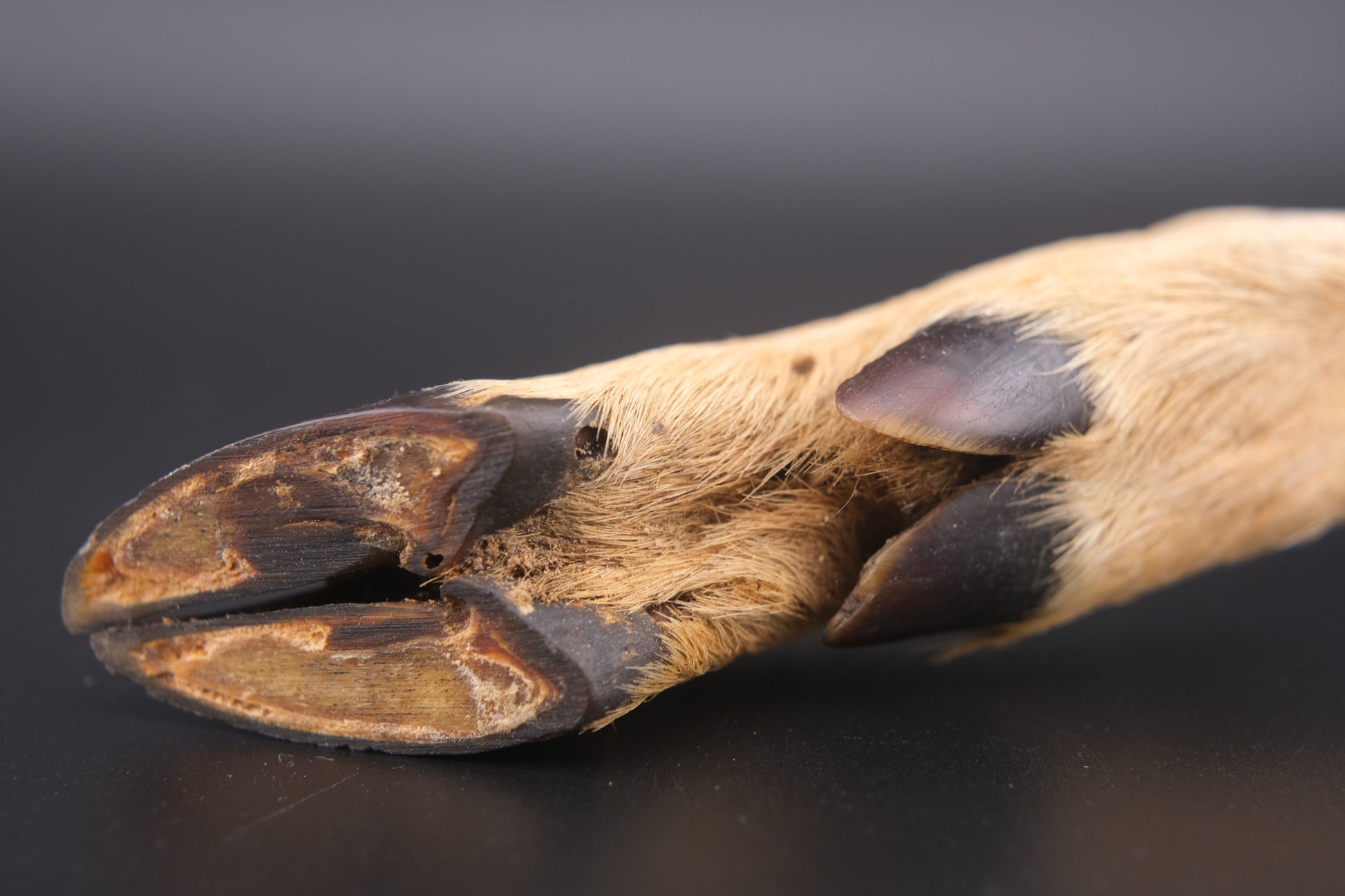 - Condition: Good vintage condition with visible signs of wear and age; natural patina on both hoof and metal parts