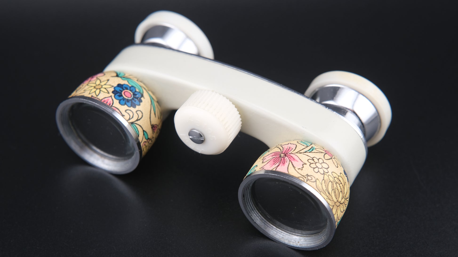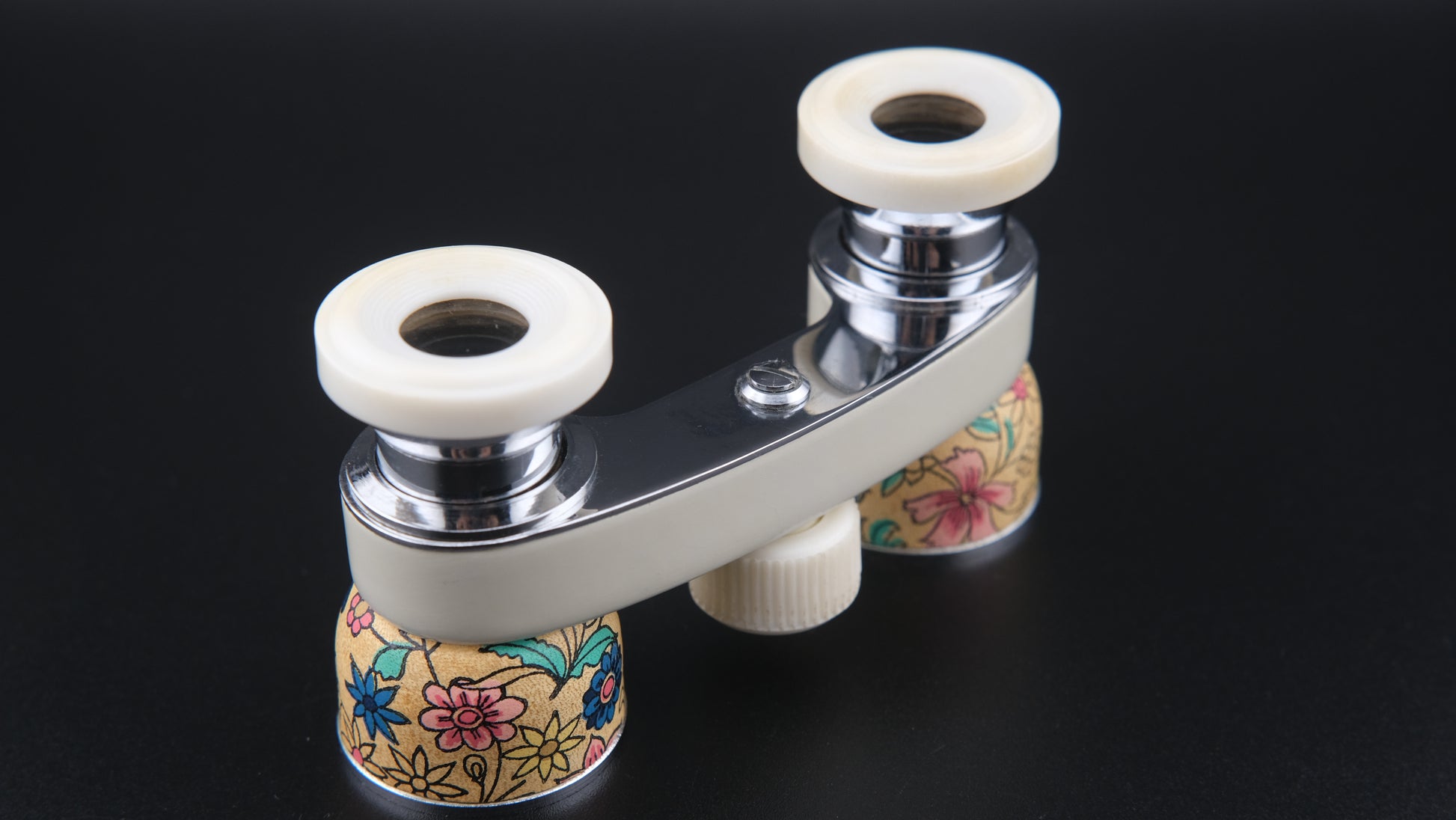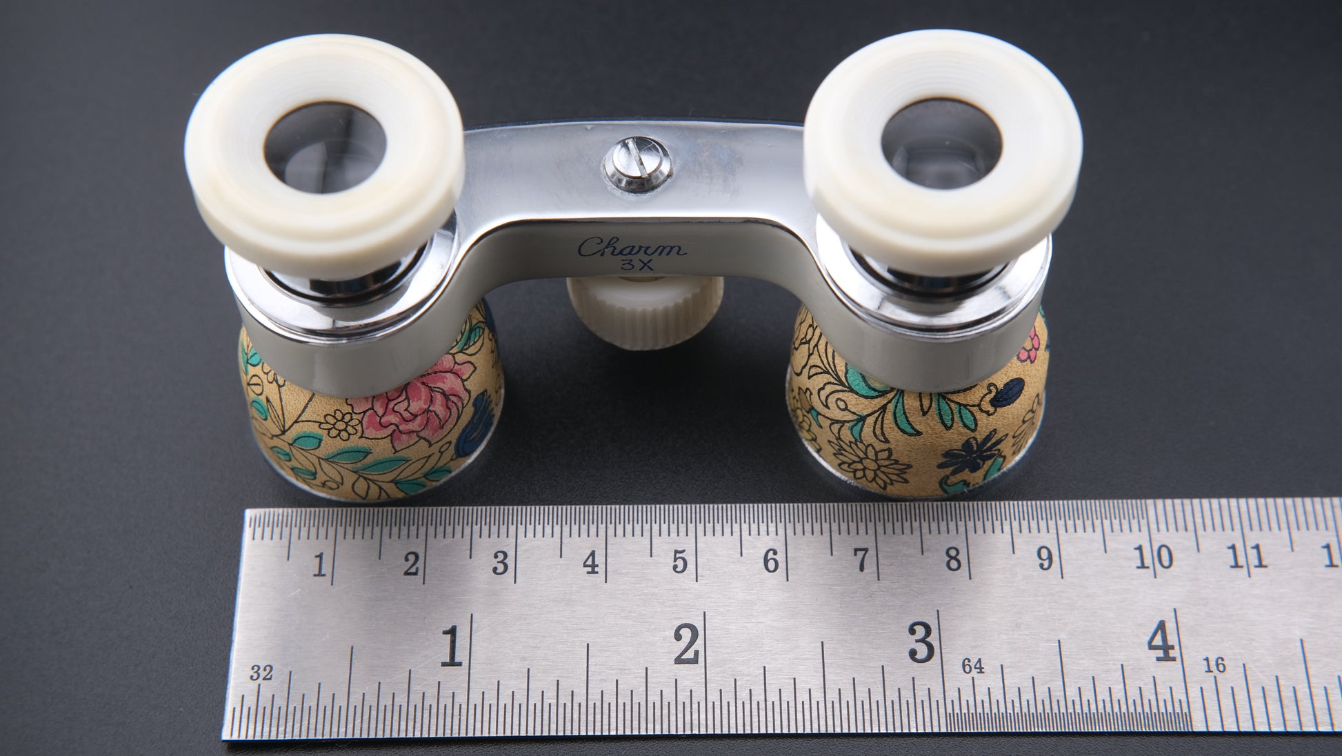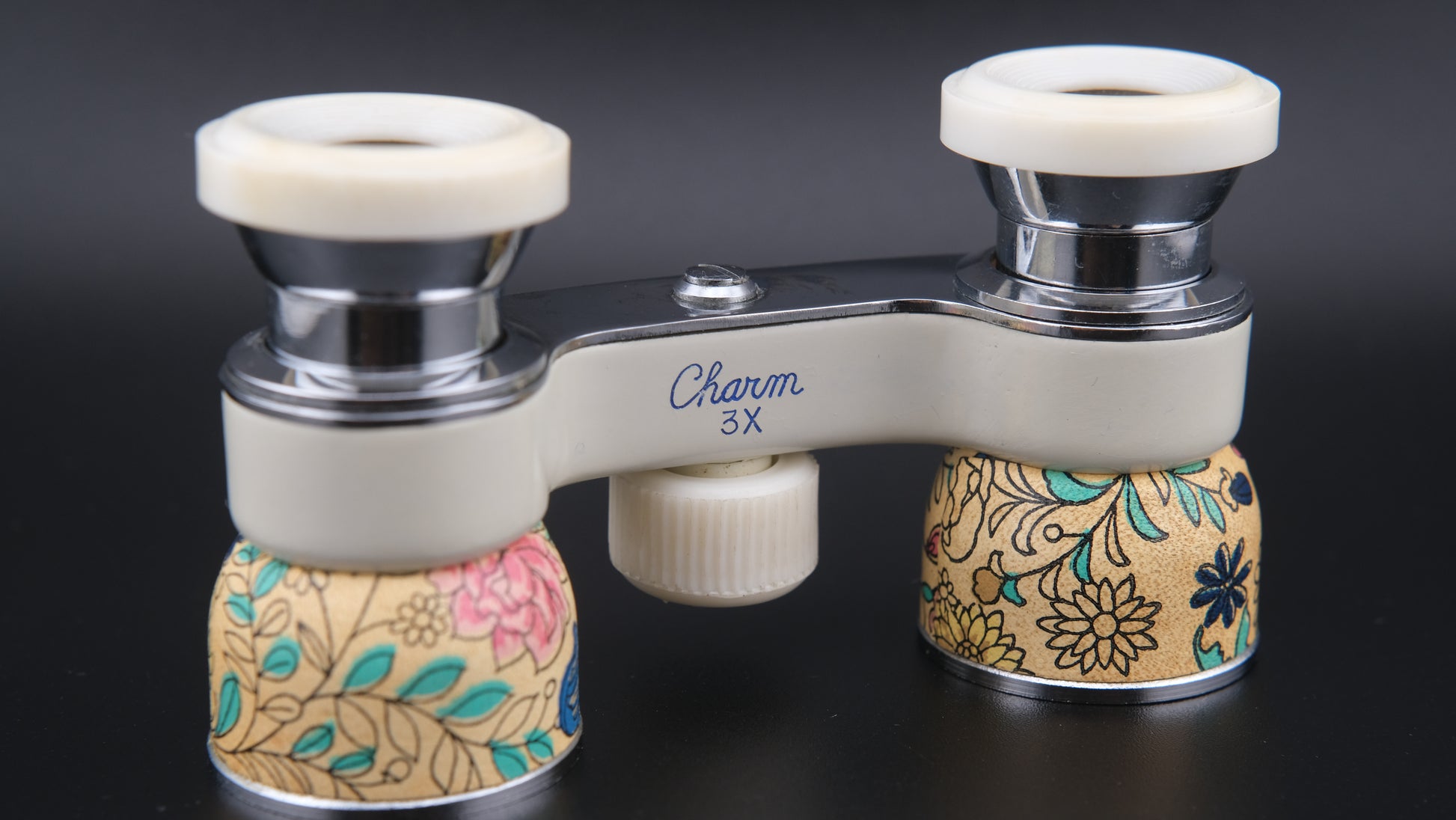 Add a touch of retro elegance to your collection with these vintage "Charm 3X" opera glasses, featuring a charming floral design and classic ivory-toned body. Made in Japan, these compact binoculars are both decorative and functional, perfect for theater use, collectors of vintage optics, or as a nostalgic home decor piece.