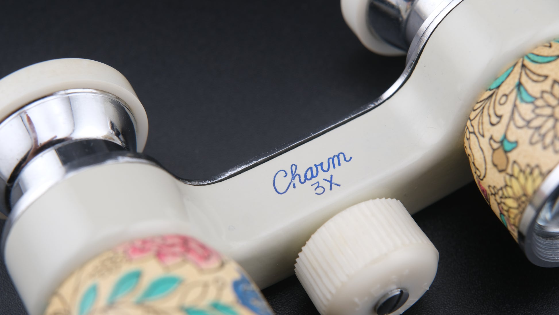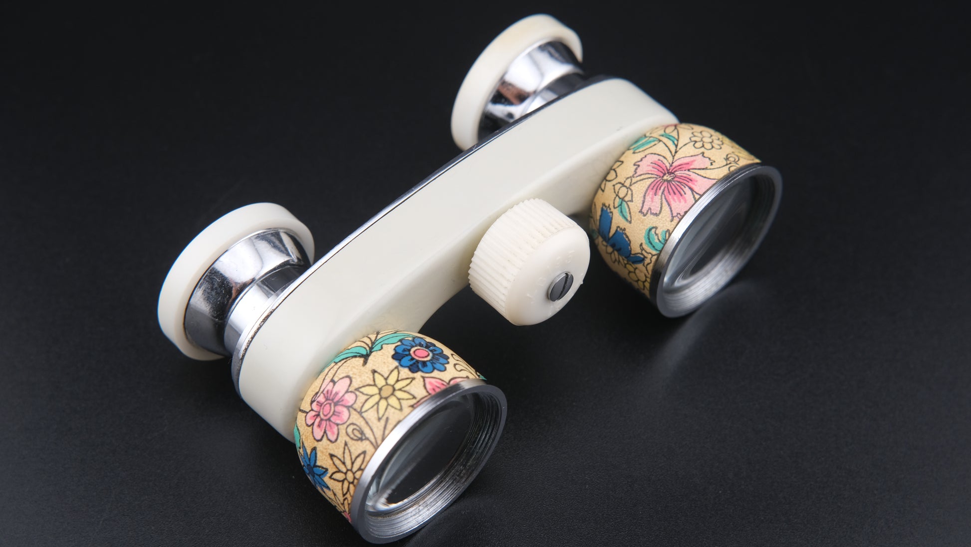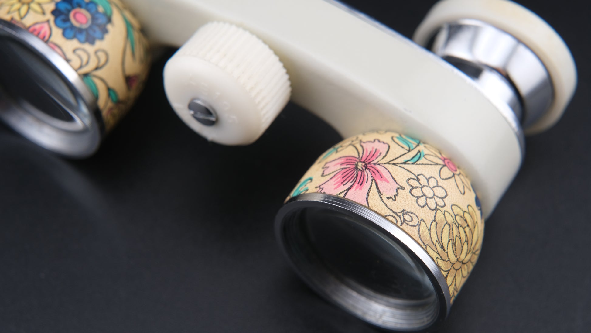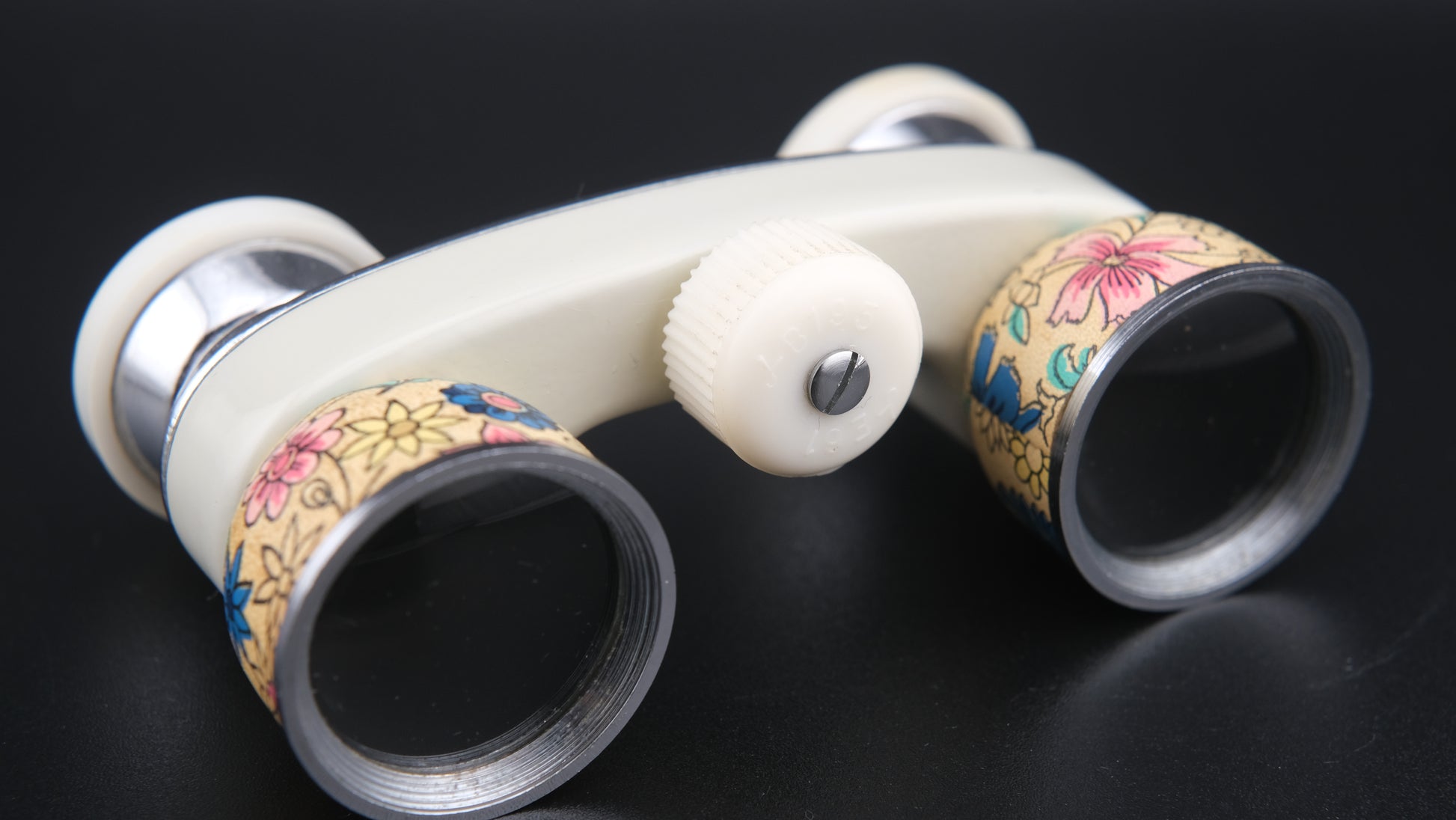 Add a touch of retro elegance to your collection with these vintage "Charm 3X" opera glasses, featuring a charming floral design and classic ivory-toned body. Made in Japan, these compact binoculars are both decorative and functional, perfect for theater use, collectors of vintage optics, or as a nostalgic home decor piece.