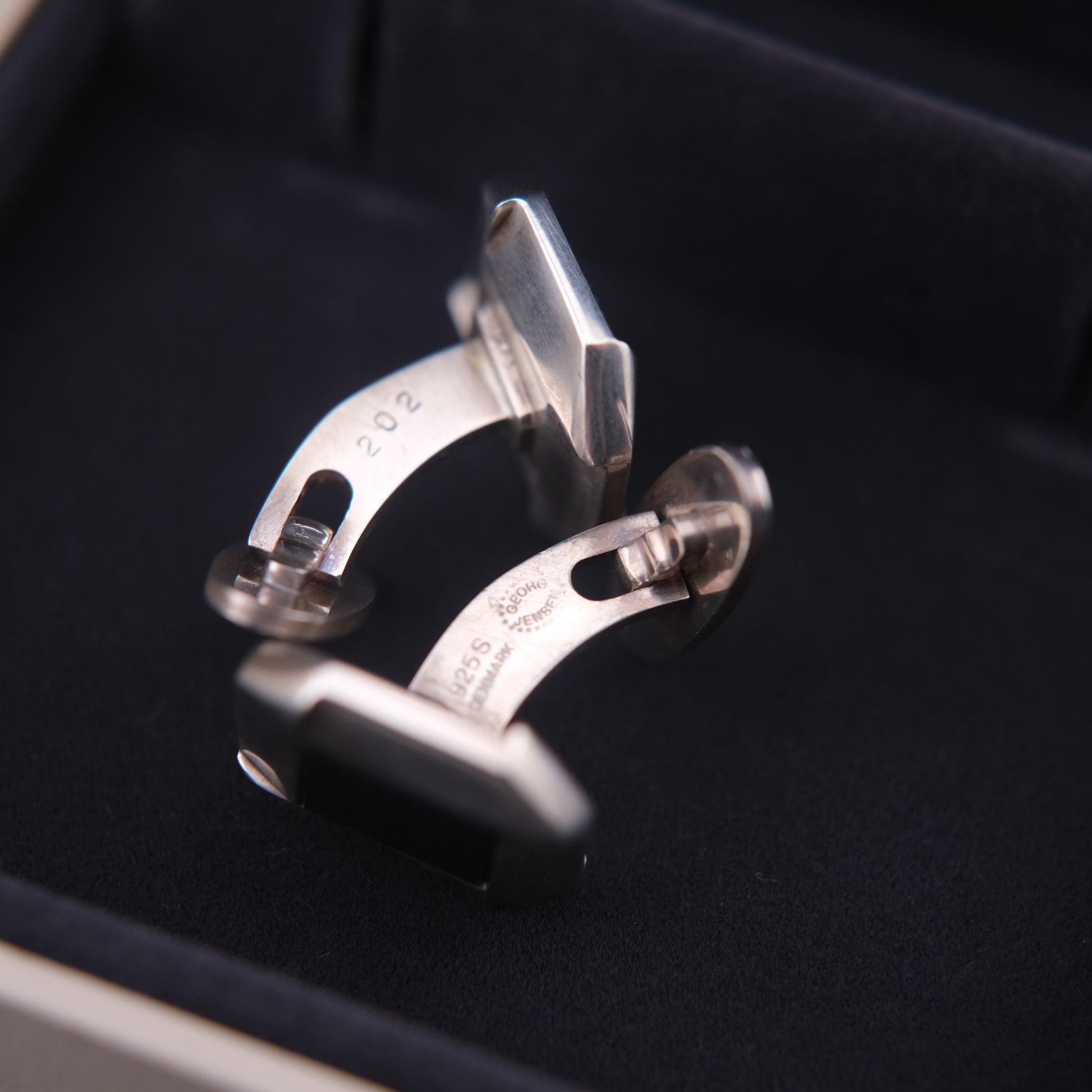Vintage Georg Jensen Sterling Silver & Onyx Cufflinks No. 202 – With Original Box