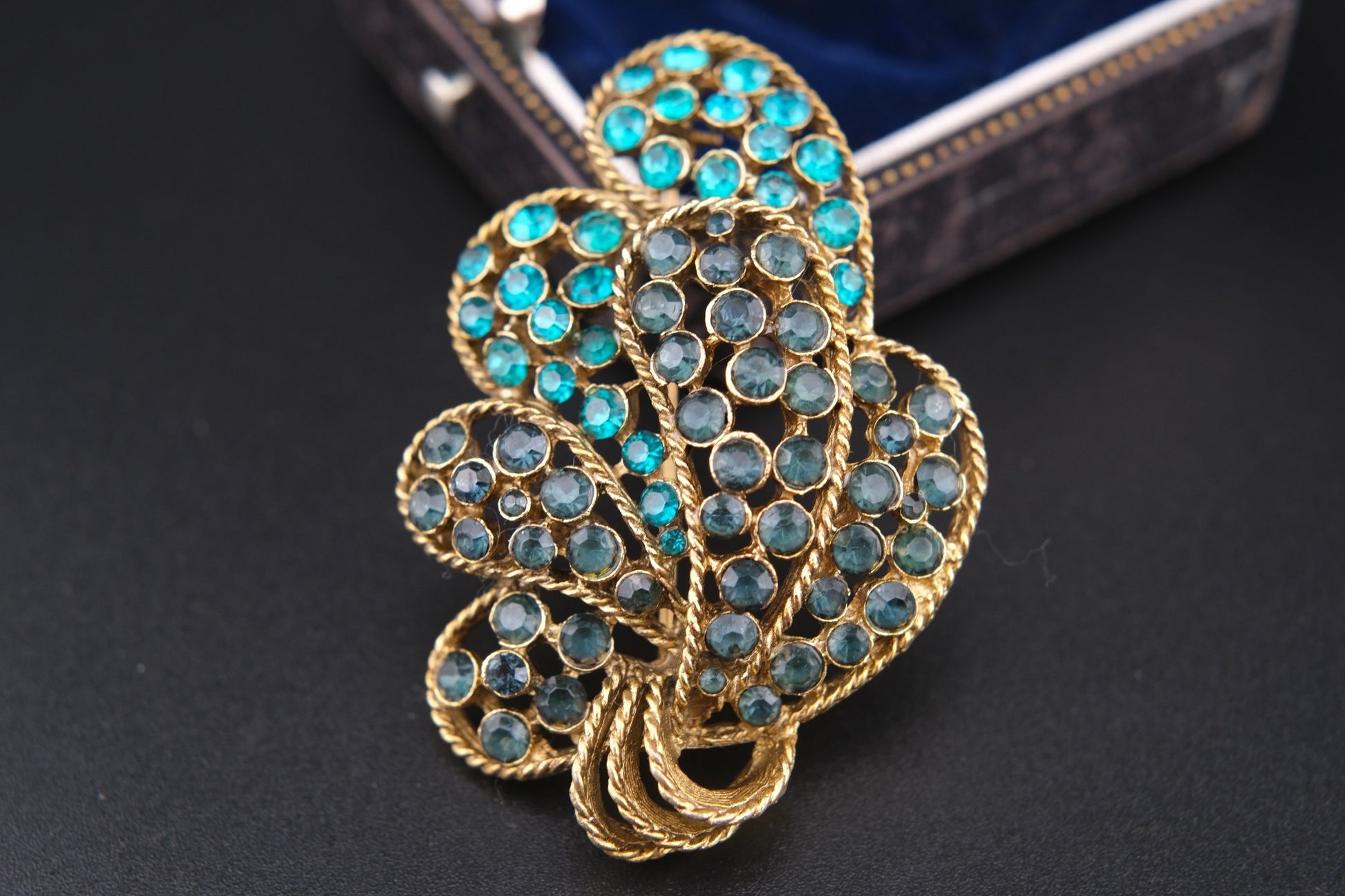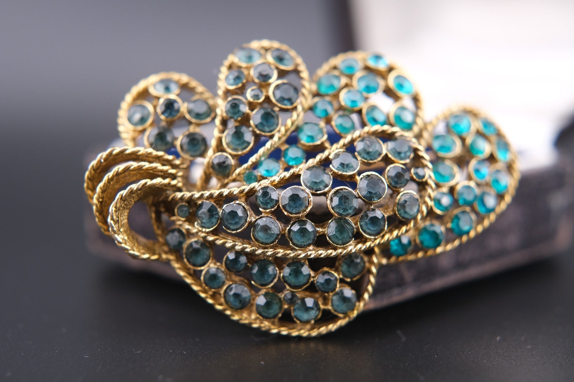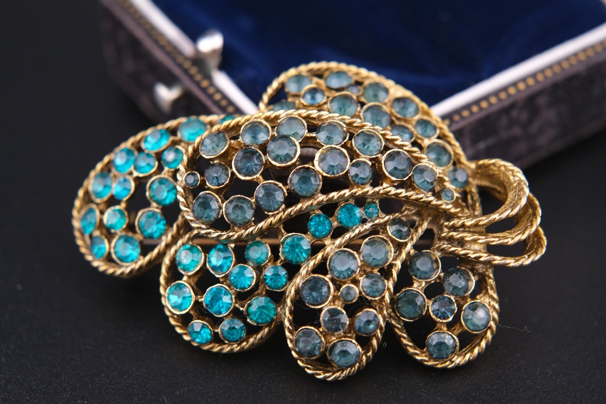 A statement collectible brooch, perfect for adding vintage glamour to a coat lapel, evening dress, or turtleneck sweater.