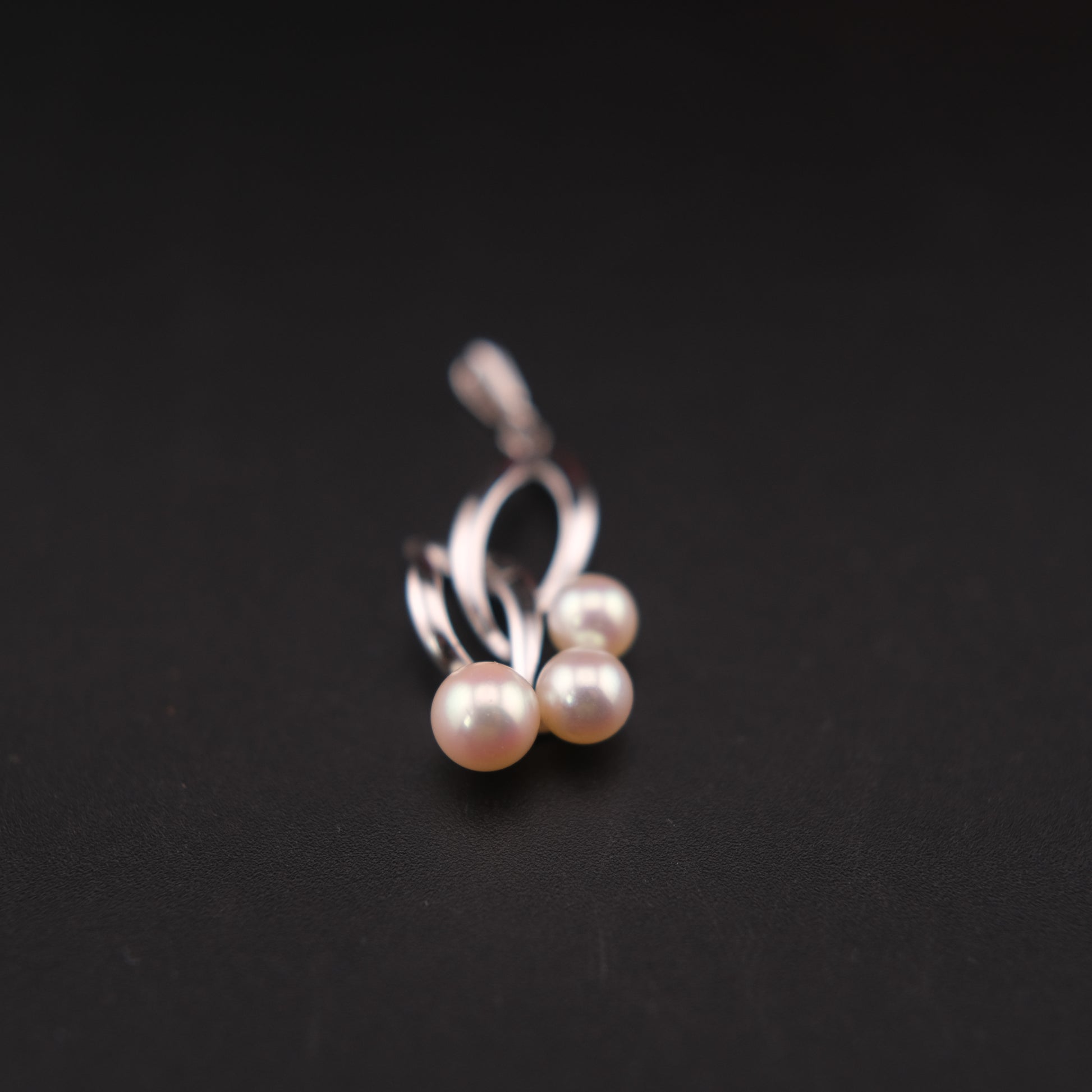Crafted in silver with a natural, organic silhouette, the pendant beautifully frames the pearls, creating a refined piece that captures both nature and sophistication. Ideal for collectors of fine Japanese jewelry or anyone seeking a classic pearl accent.