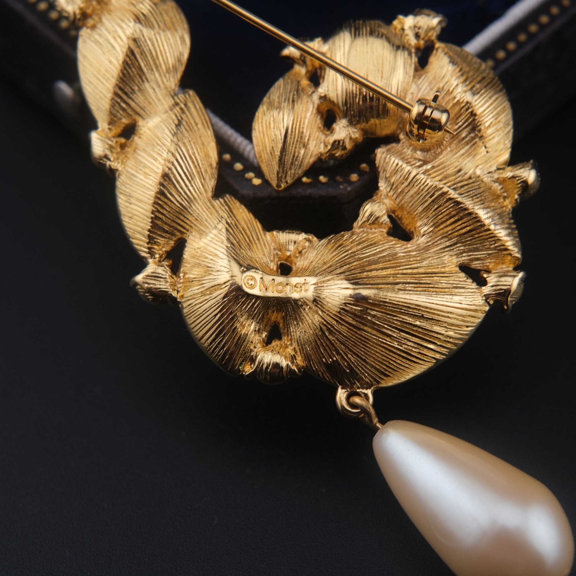 An unmistakable statement of vintage elegance, this brooch is signed "Monet" on the back and is a perfect collector’s item or a bold accessory for formal occasions.