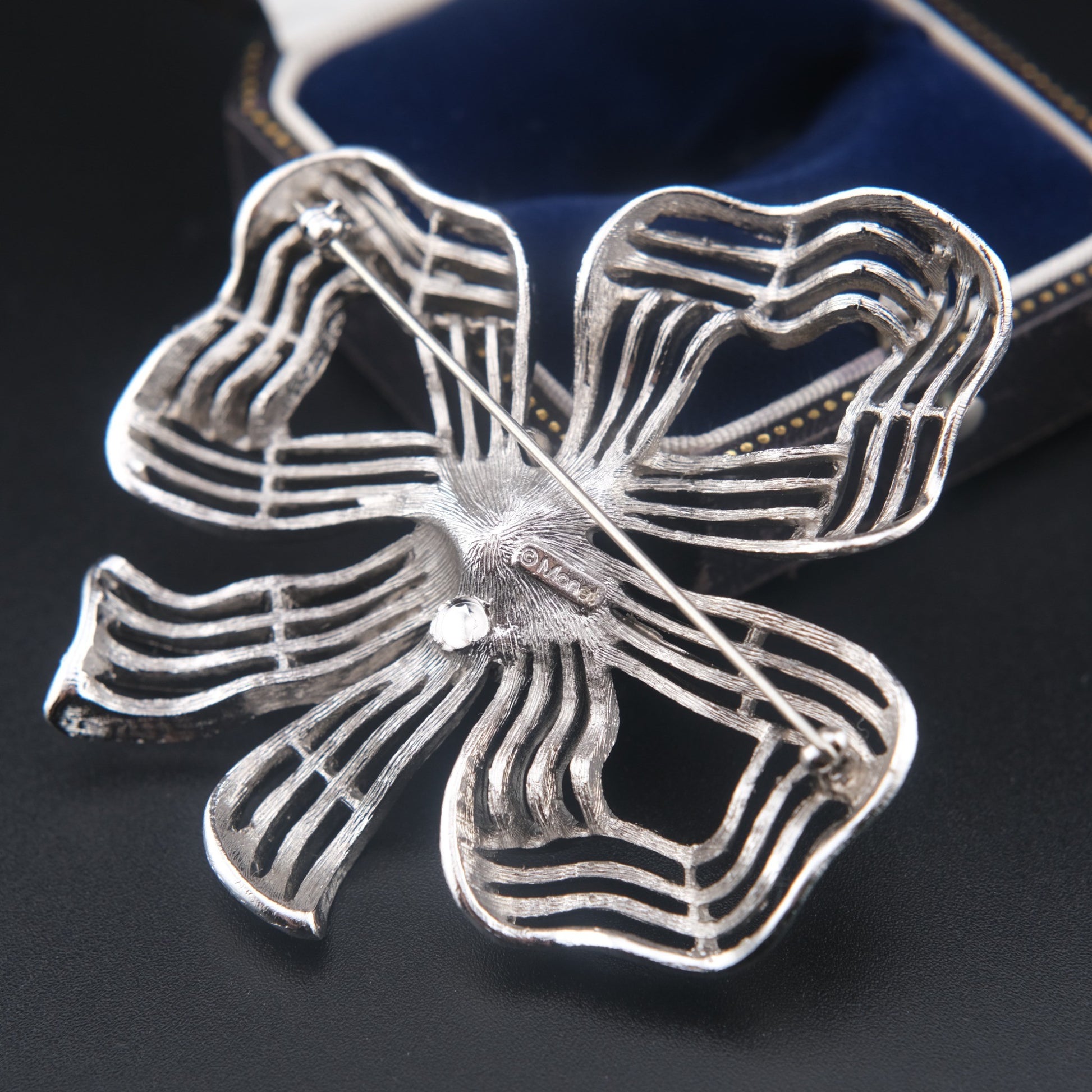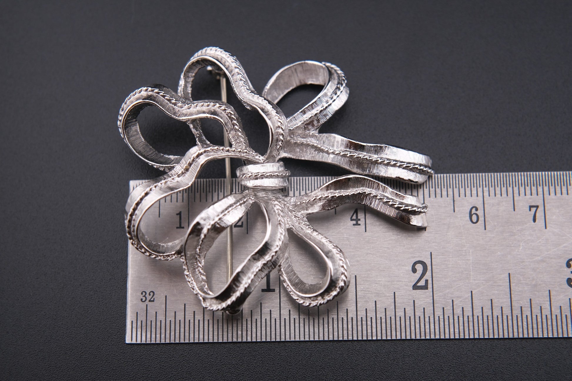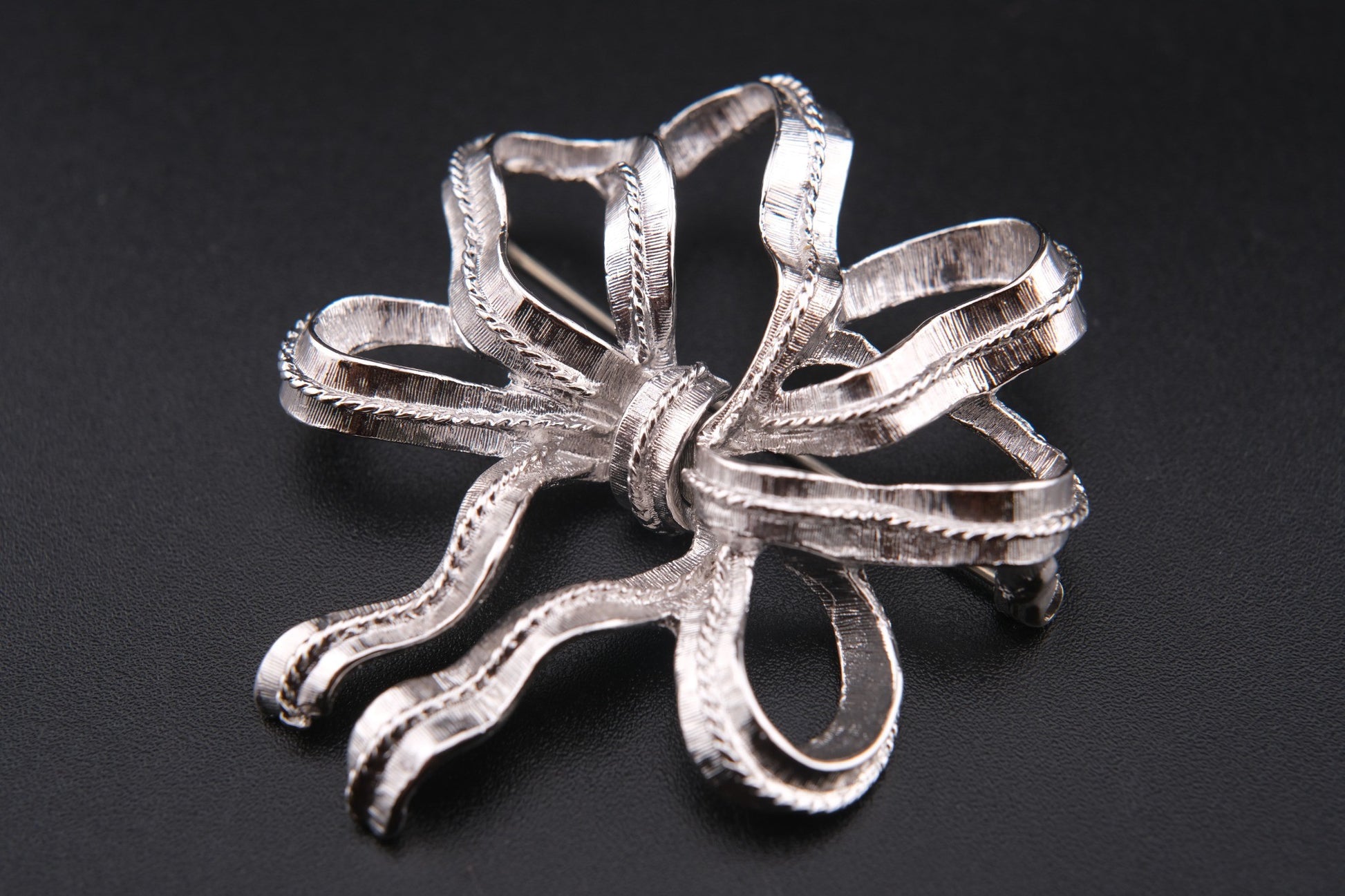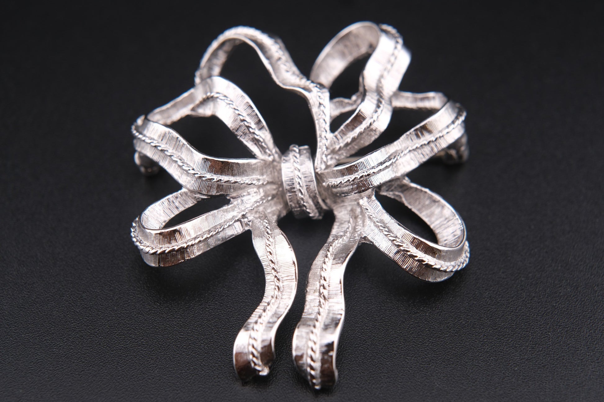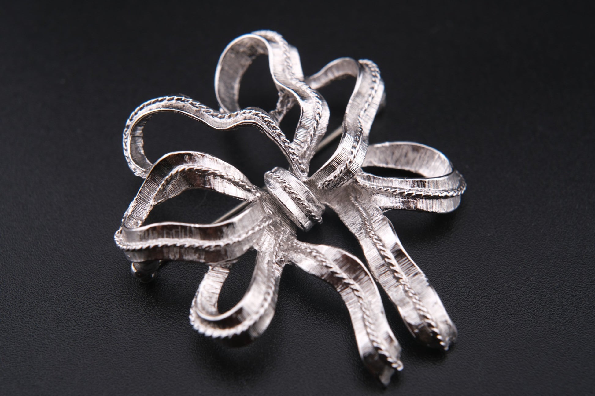 Vintage Monet Ribbon Bow Brooch – Silver-Tone Textured Finish