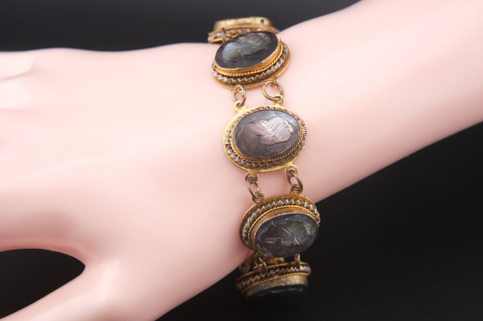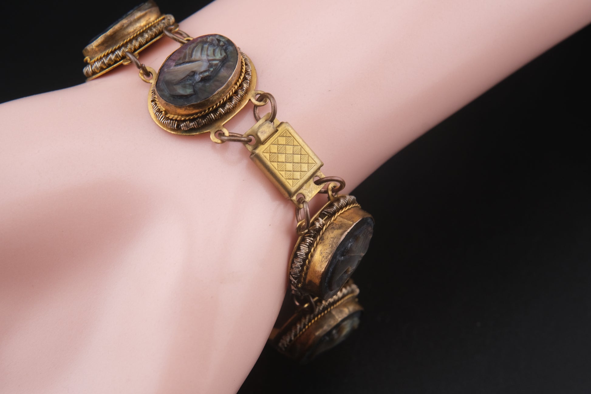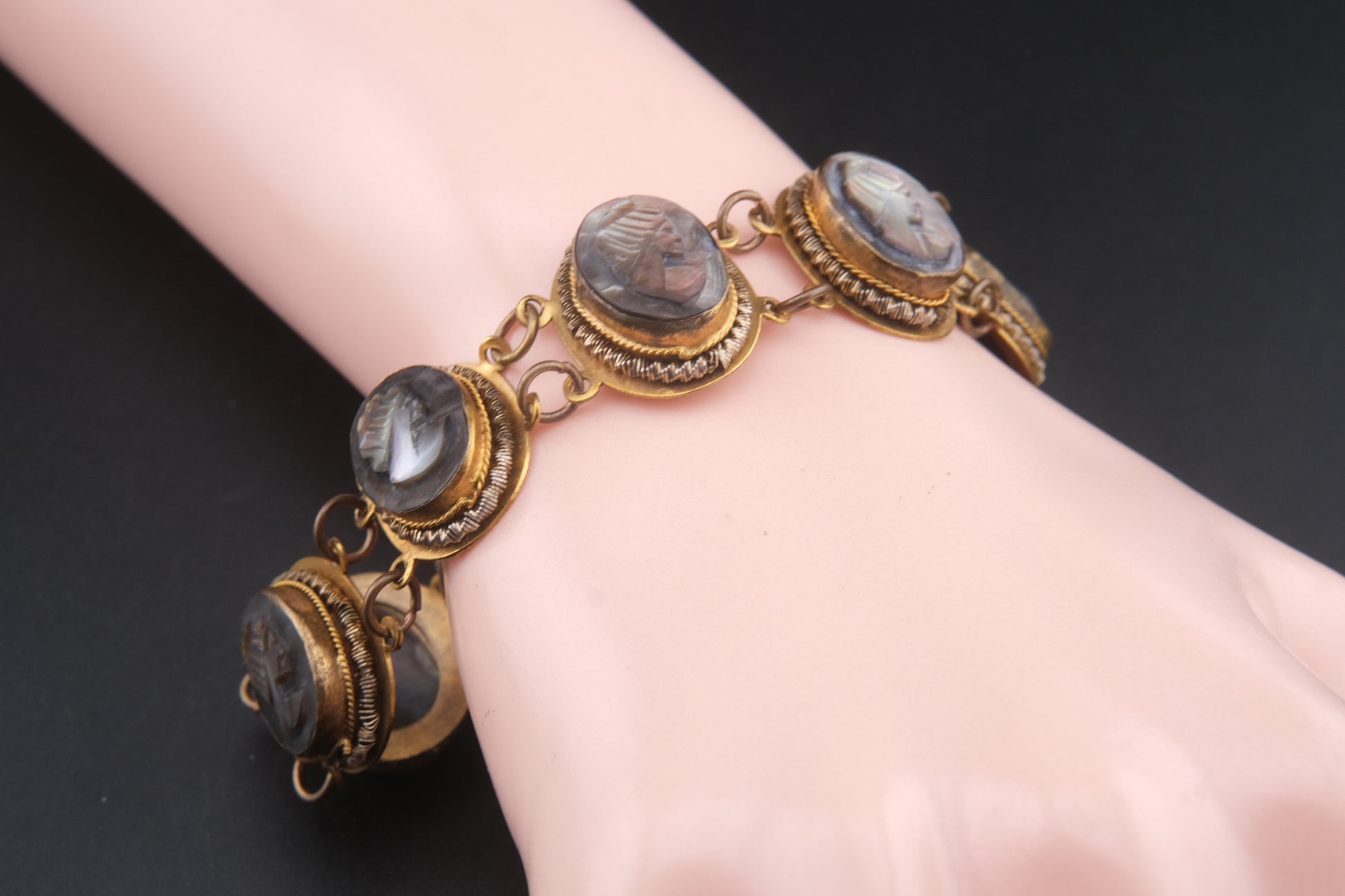Vintage Mother of Pearl Cameo Bracelet – 7" Hand-Carved Profile Medallions