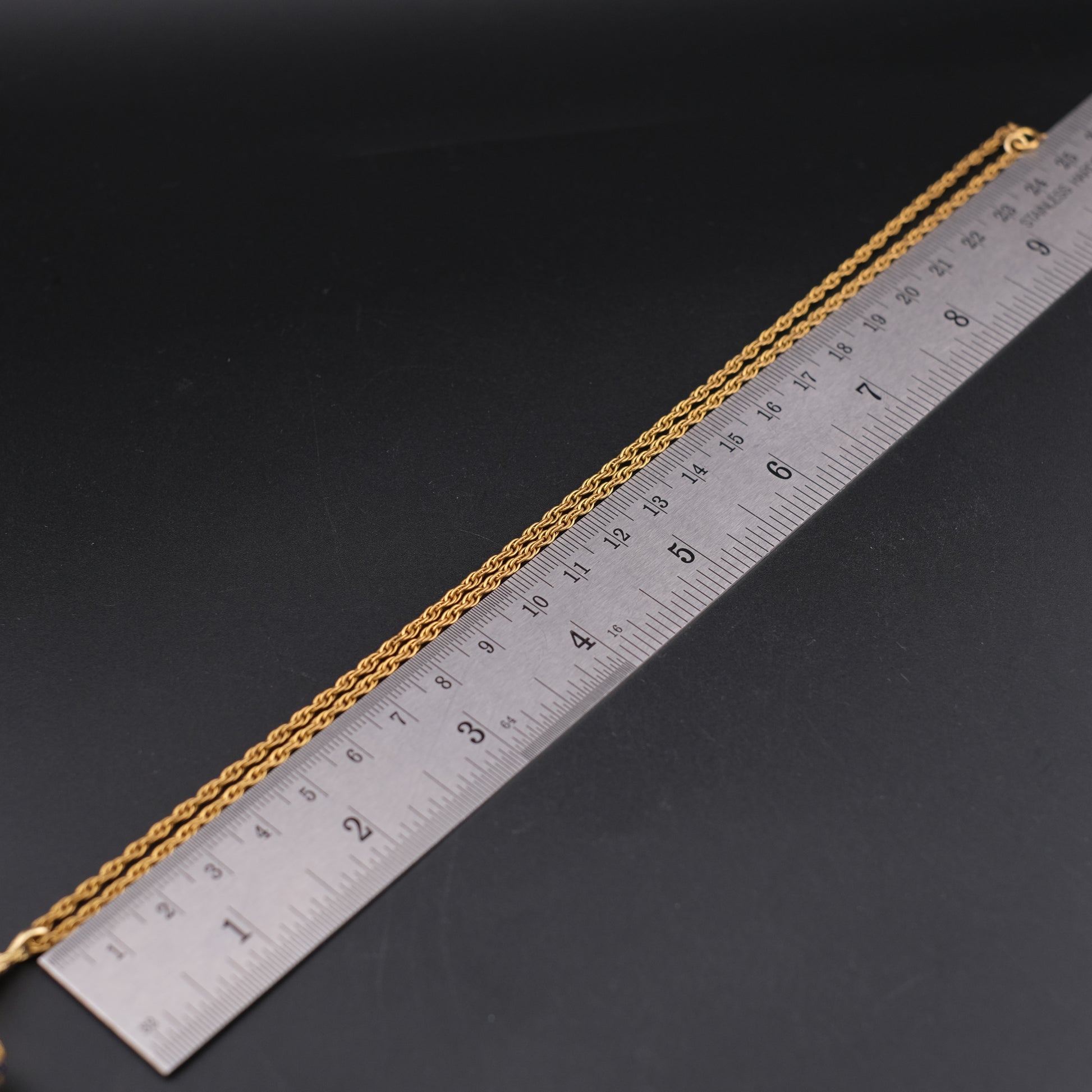 Suspended from a twisted rope chain, this necklace is the perfect vintage piece for collectors of distinctive statement jewelry or anyone looking to add a touch of Parisian drama to their wardrobe.