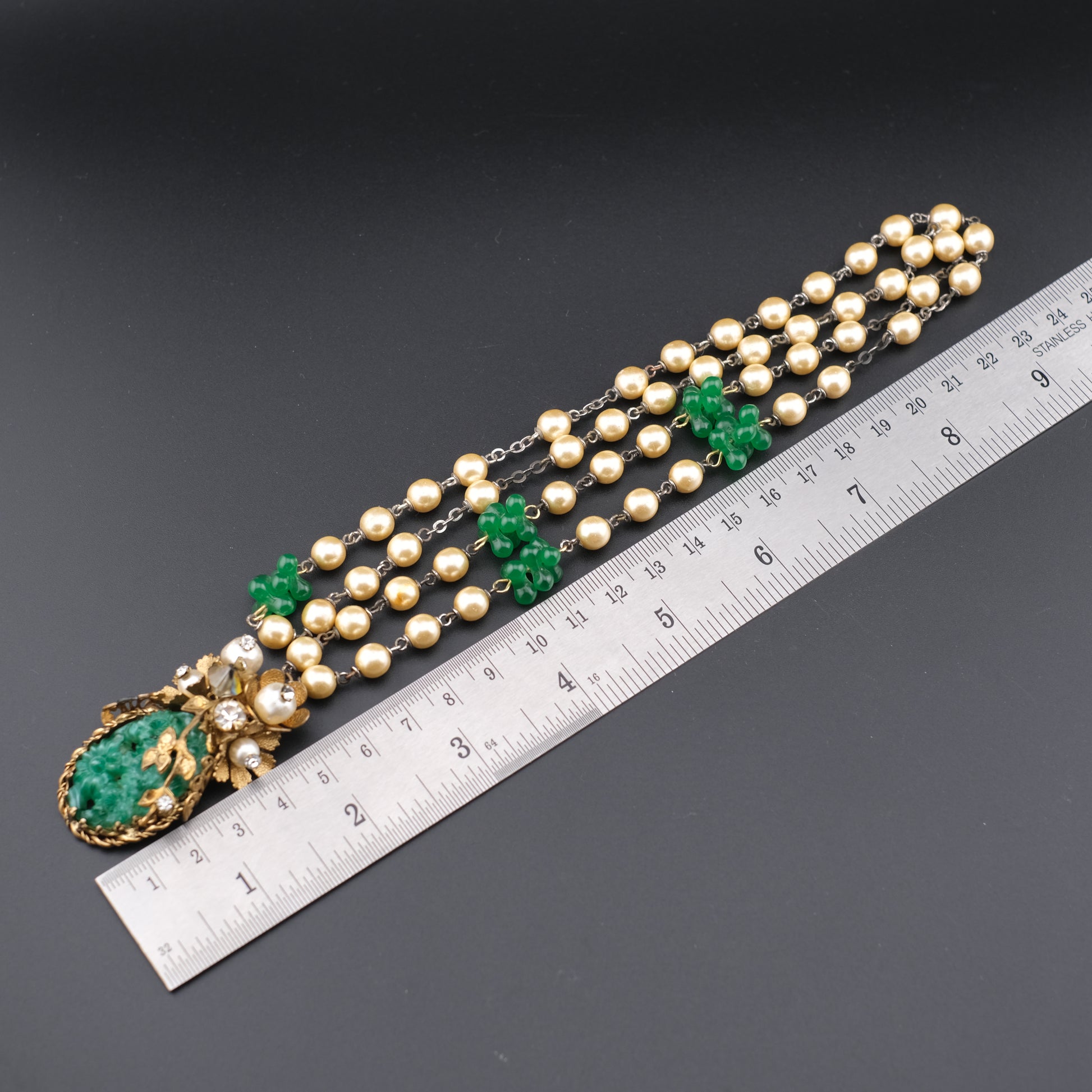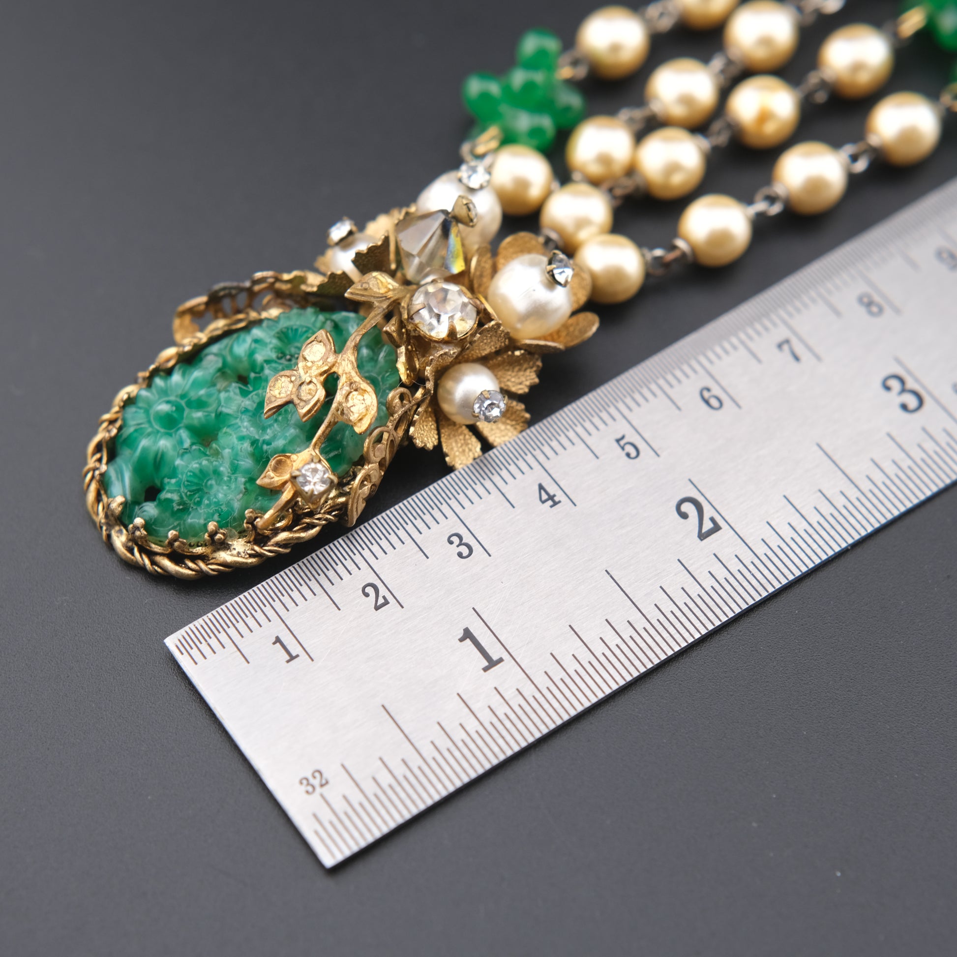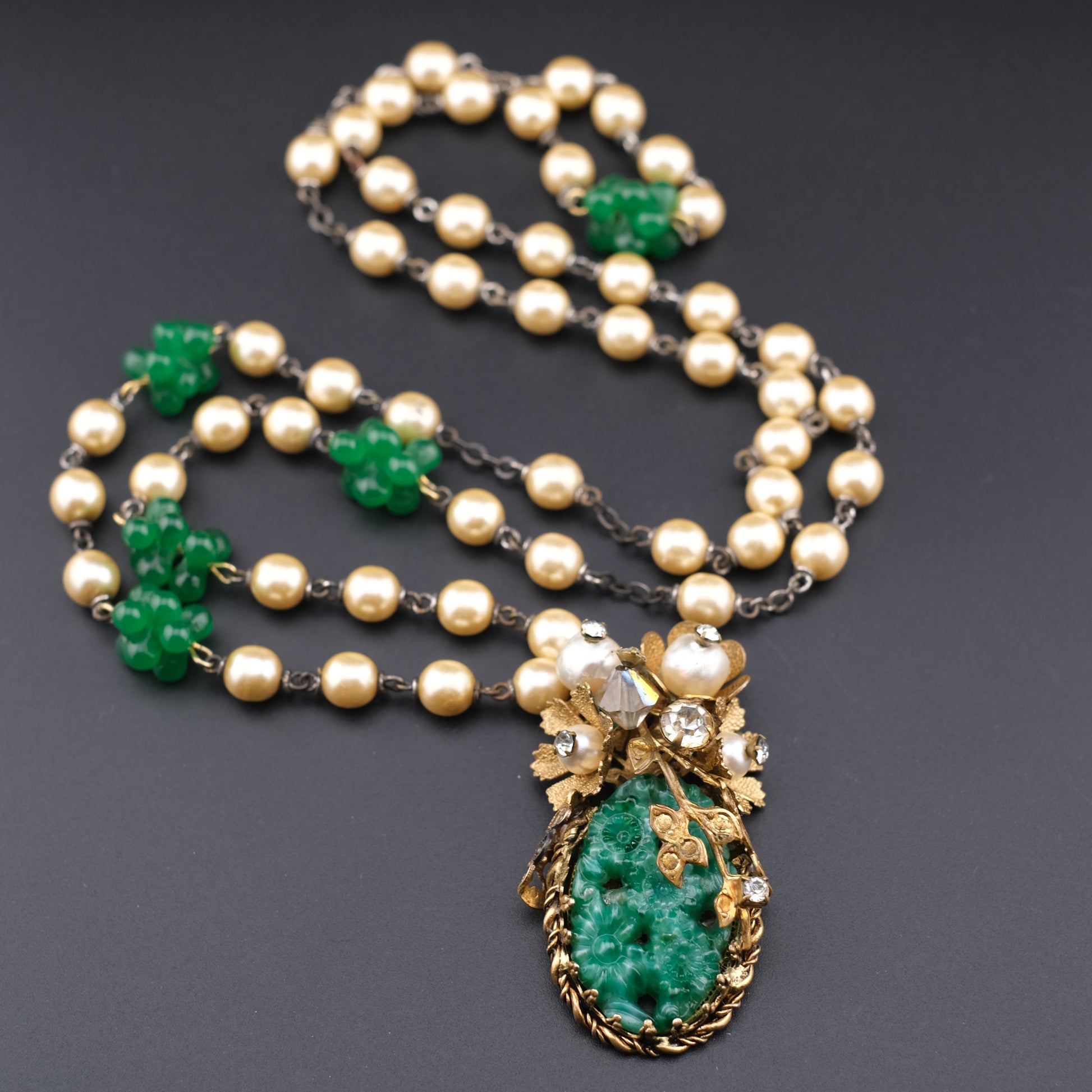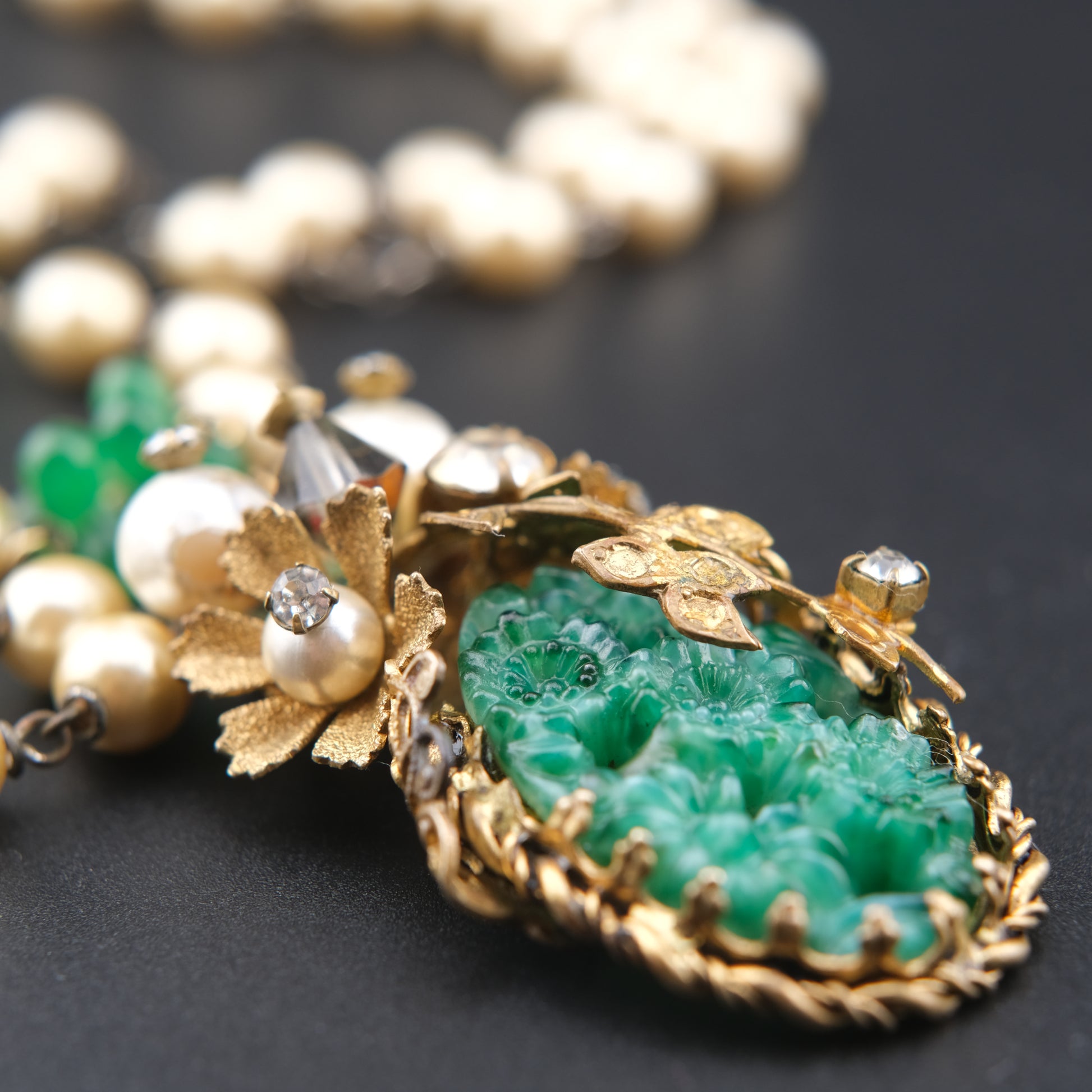 Vintage Possible Miriam Haskell Faux Pearl & Carved Green Glass Pendant Necklace