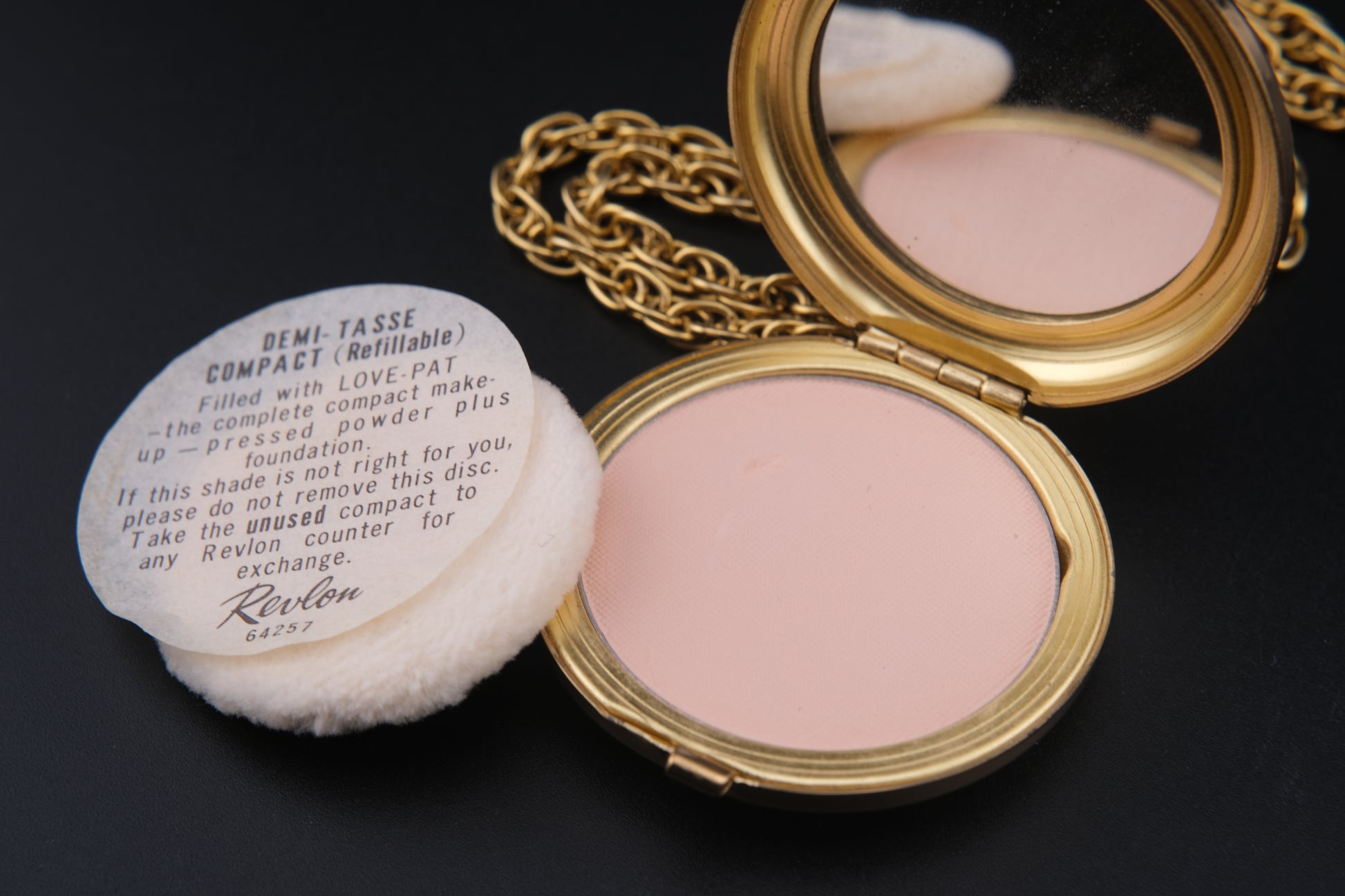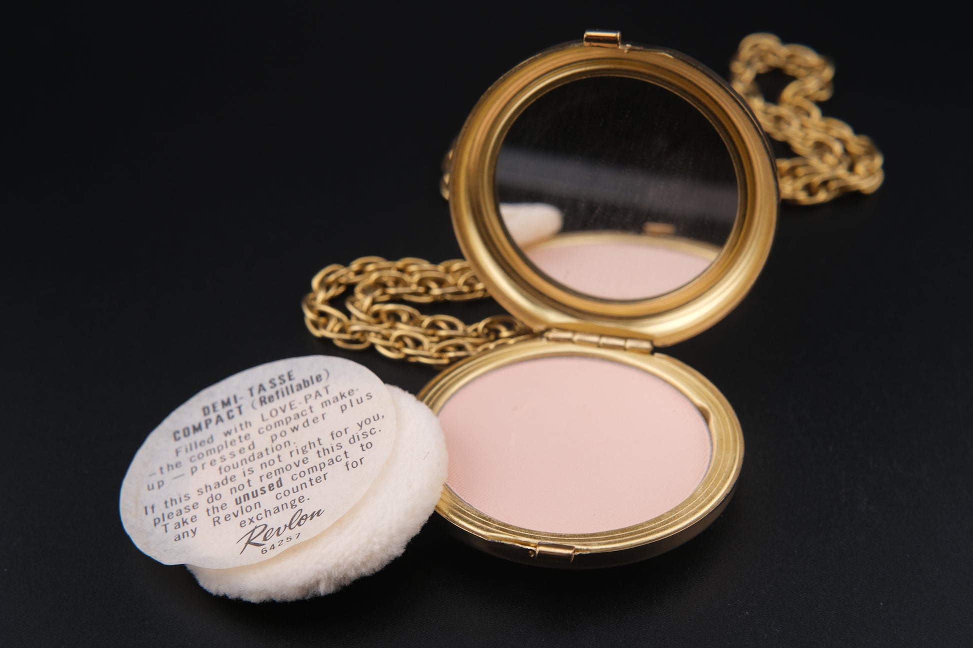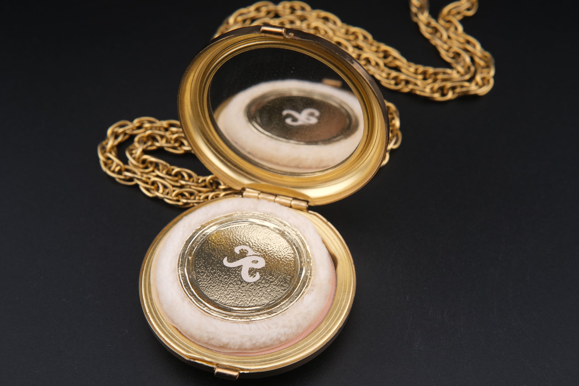 Not only is this a unique collectible for vintage beauty and compact lovers, but it also doubles as a wearable statement necklace. A truly nostalgic piece of mid-century glamour.