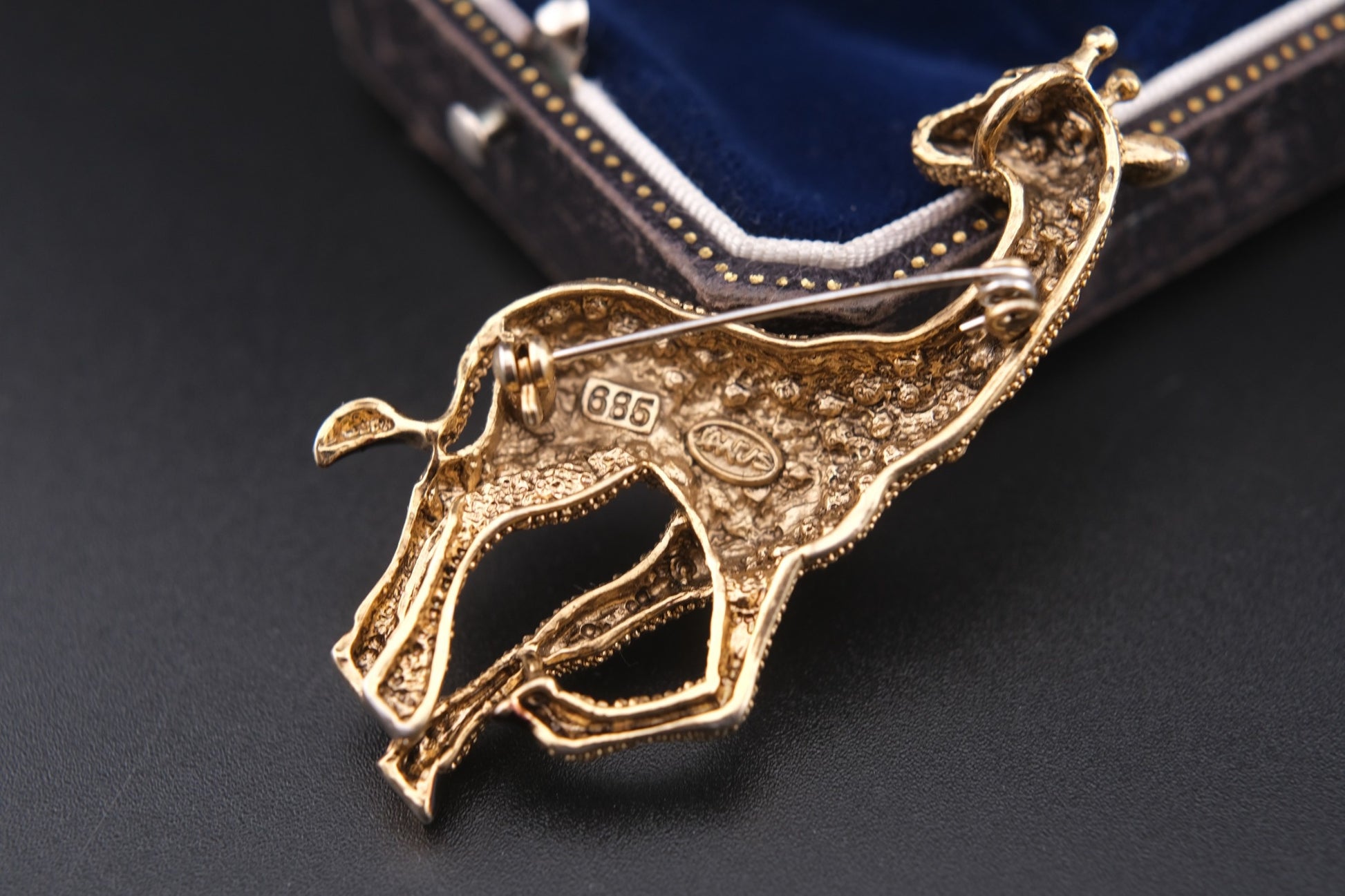 🦒 Vintage Sanus Giraffe Brooch – Enamel & Rhinestone – Gold Tone Animal Pin – Hallmarked 685
