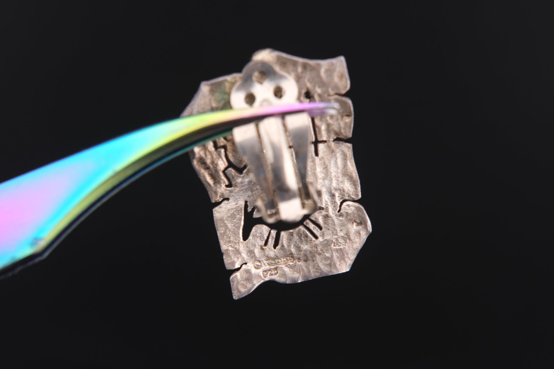 Vintage Sterling Silver Clip-On Earrings by Woods | Tribal Petroglyph Cut-Out Design | Hand-Hammered Texture