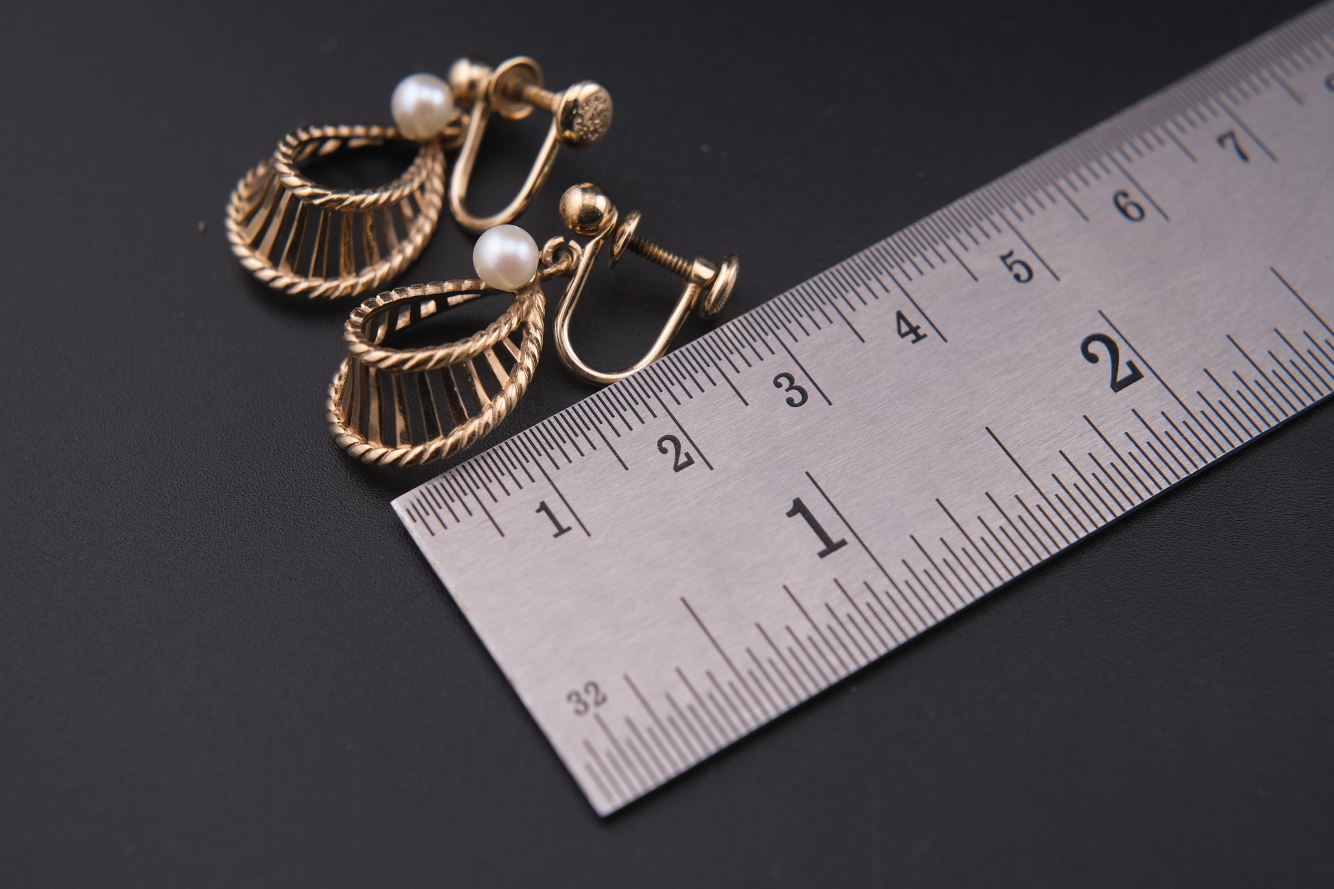 - Design: Teardrop scroll motif with twisted wire openwork and faux pearl accents