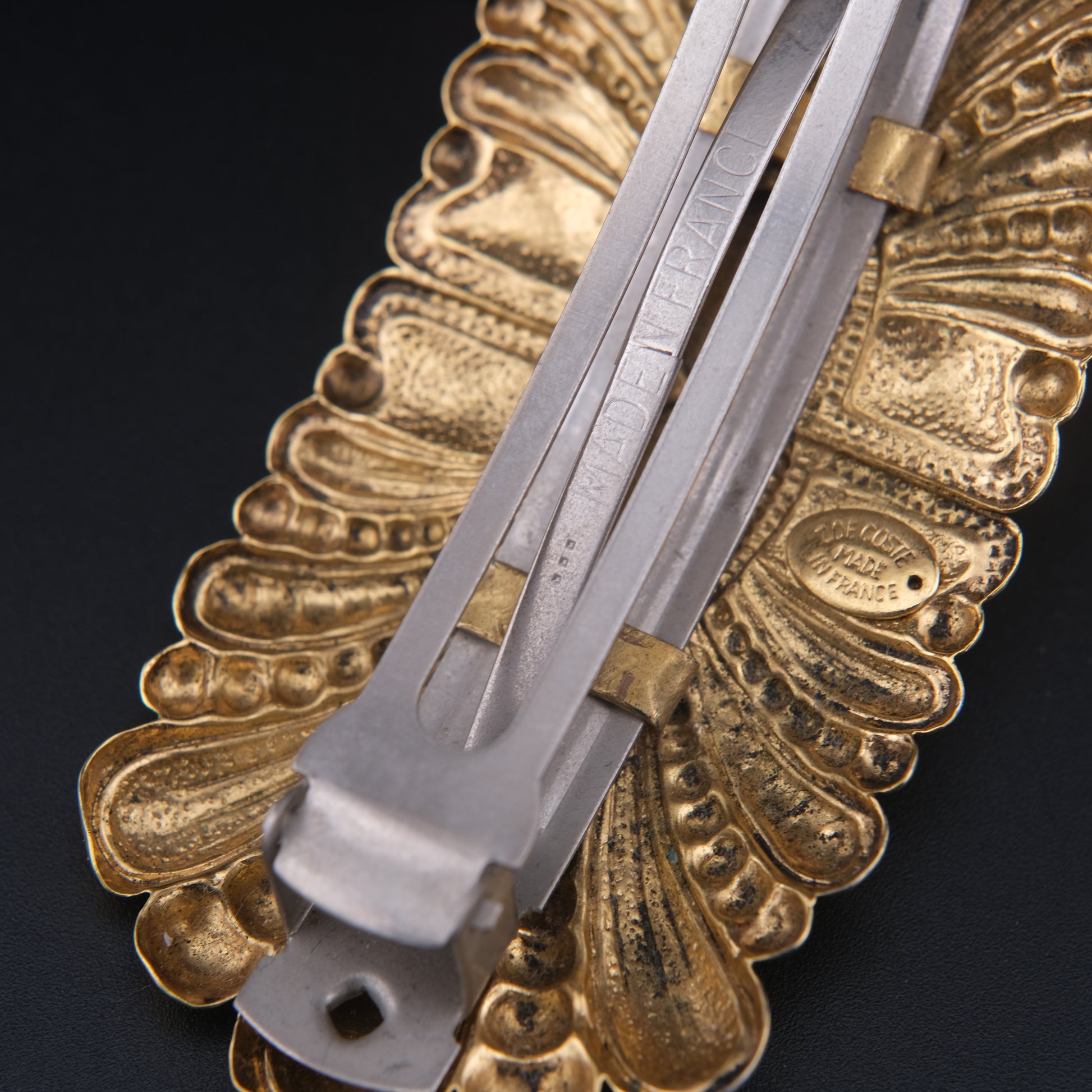 - Closure: French barrette clasp (signed, “Made in France”)